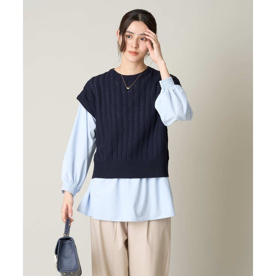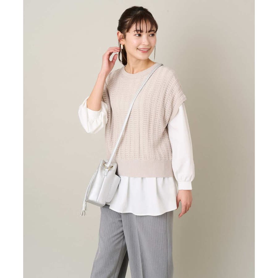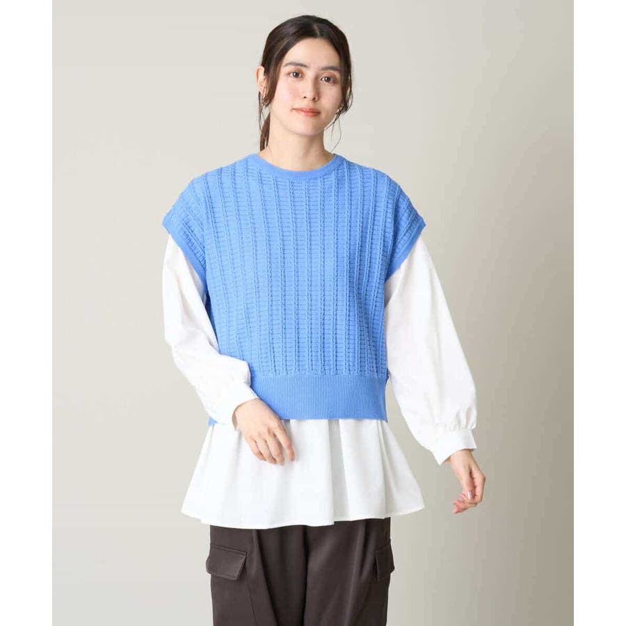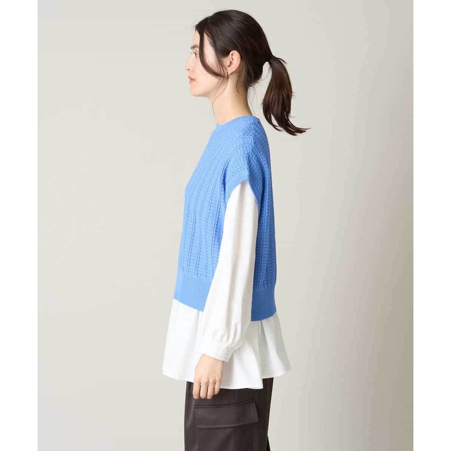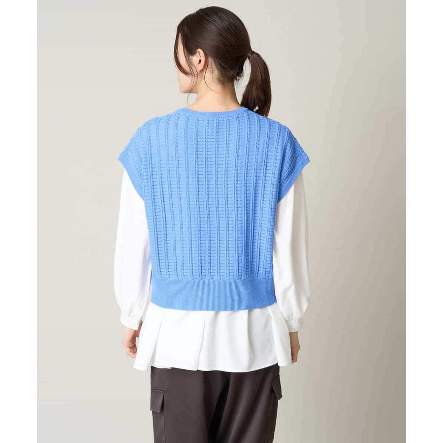 【2SET/洗える】ニットベスト+ペプラムブラウス