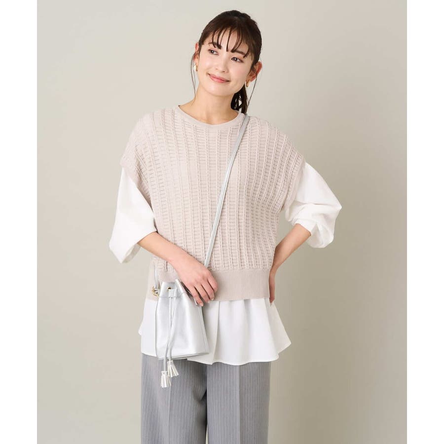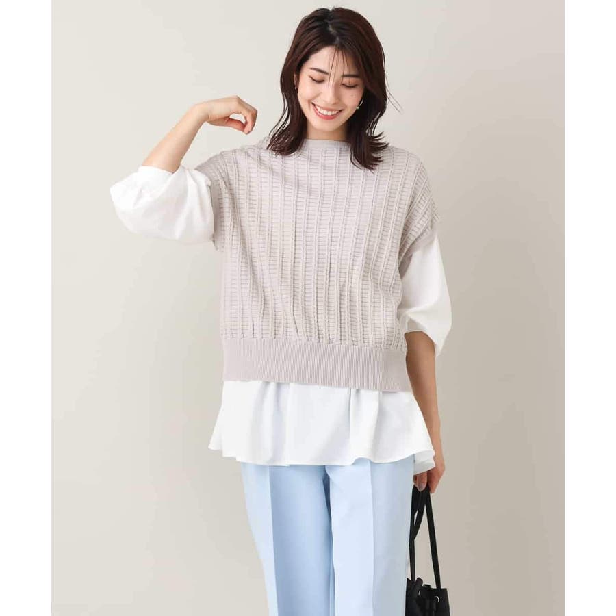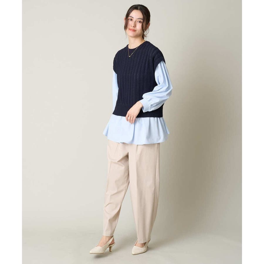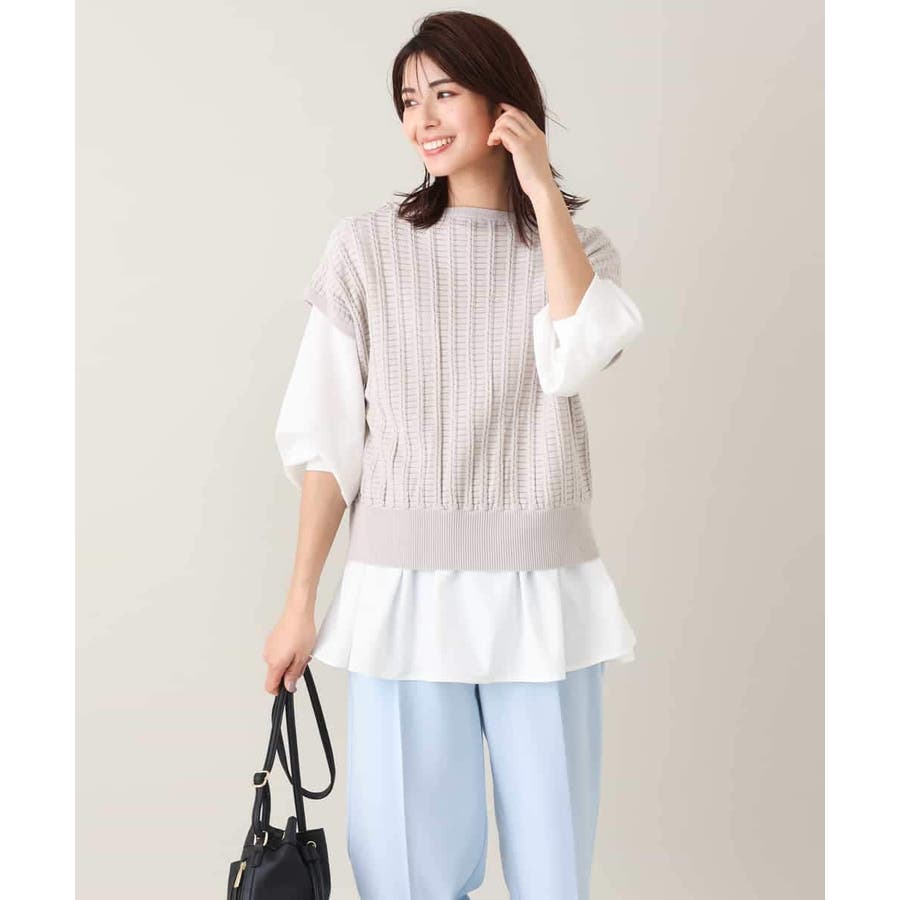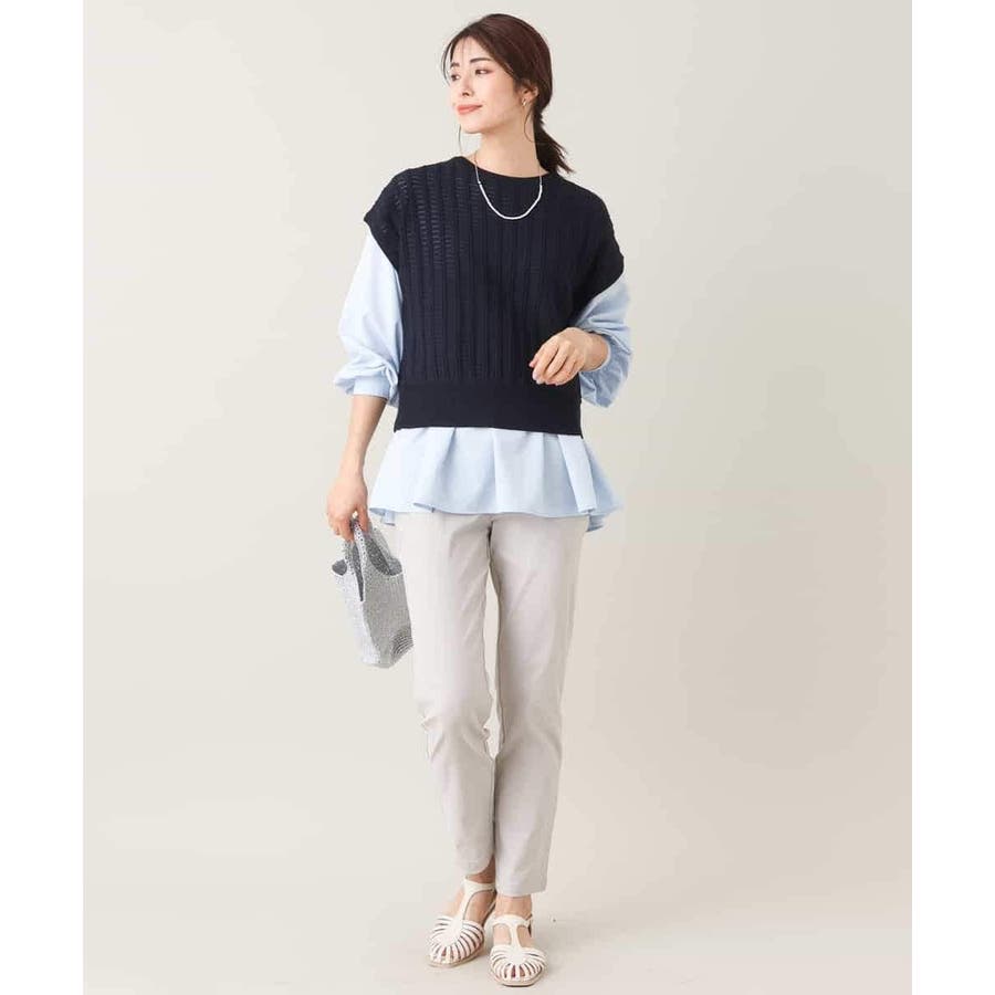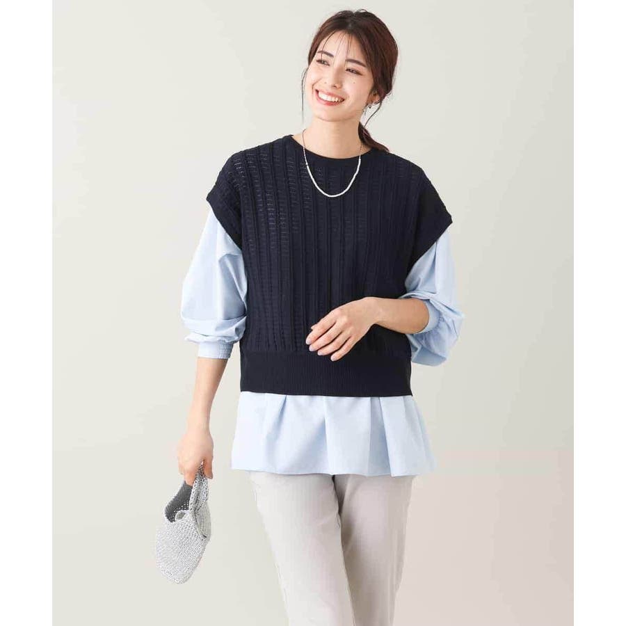 【2SET/洗える】ニットベスト+ペプラムブラウス