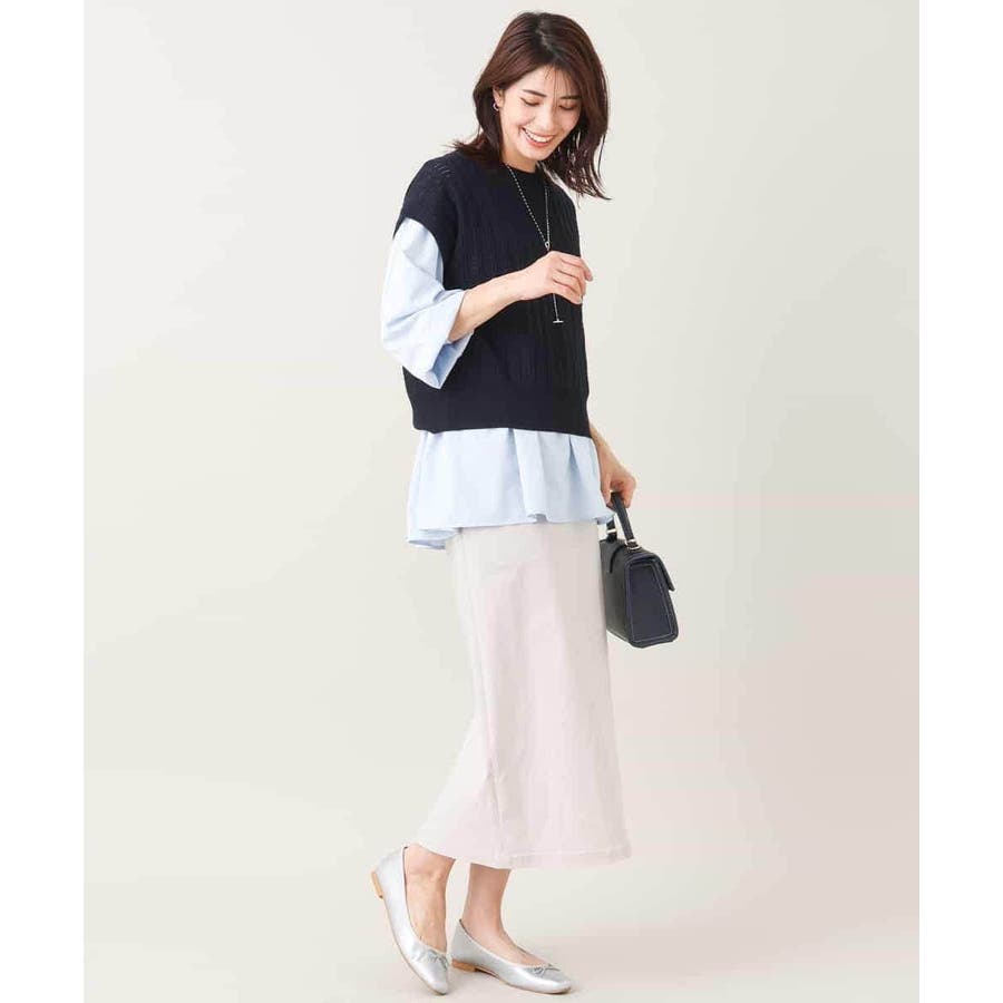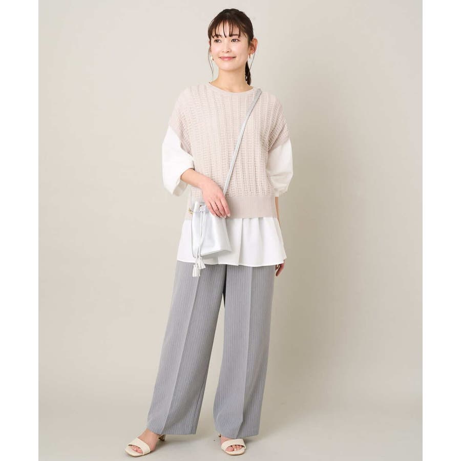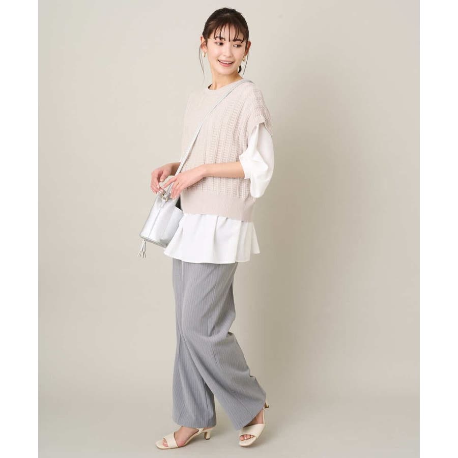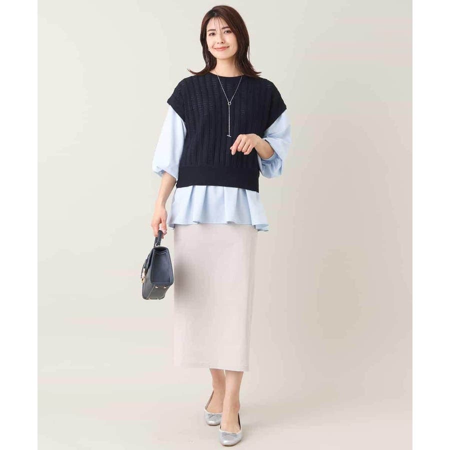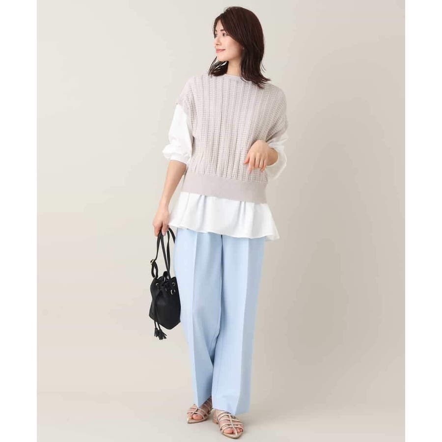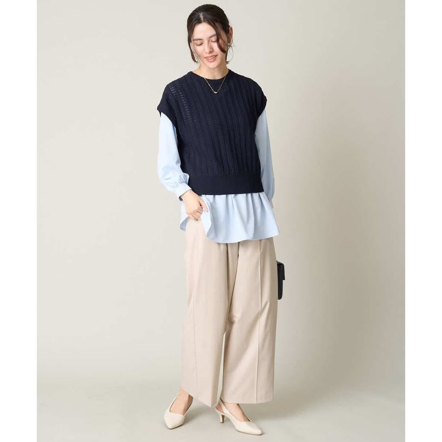 【2SET/洗える】ニットベスト+ペプラムブラウス