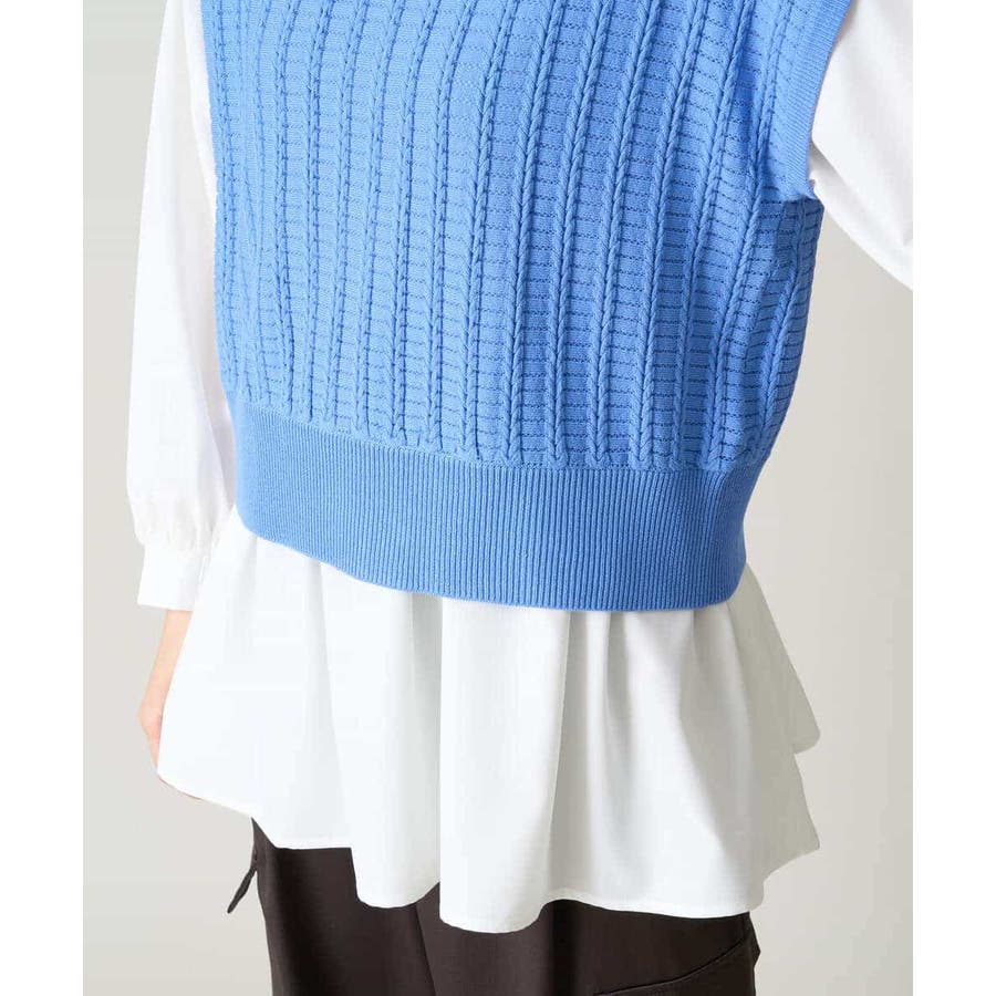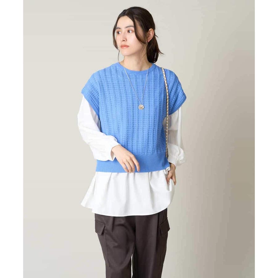 ブルー:ブルーのベスト×ホワイトのブラウス