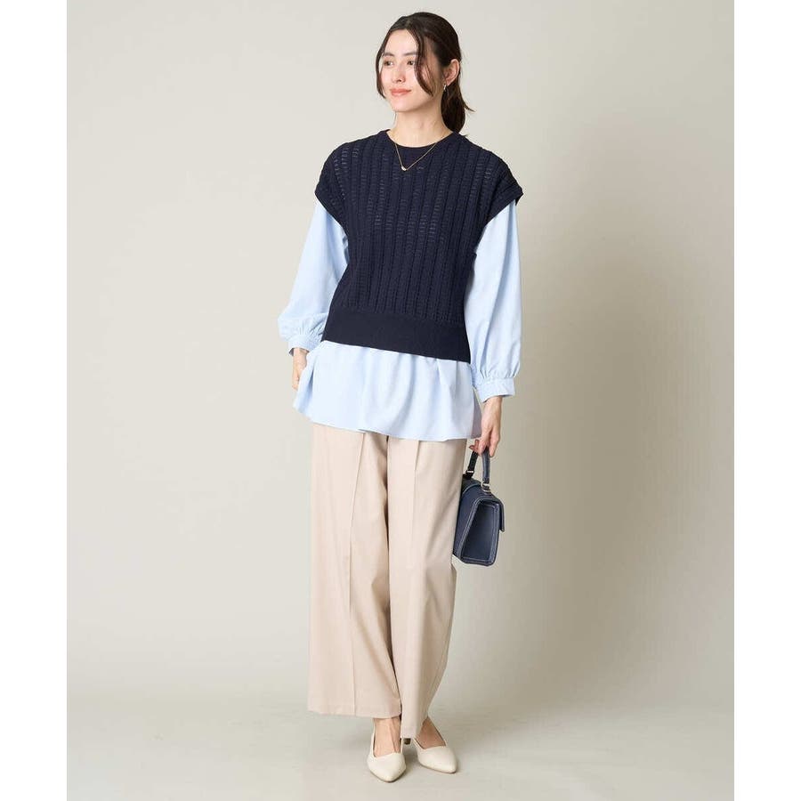 XL:着丈(ベスト)53 身幅(ベスト)56 肩幅(ベスト)60 着丈(ブラウス)70.5 身幅(ブラウス)58 肩幅(ブラウス)55 そで丈(ブラウス)50.5