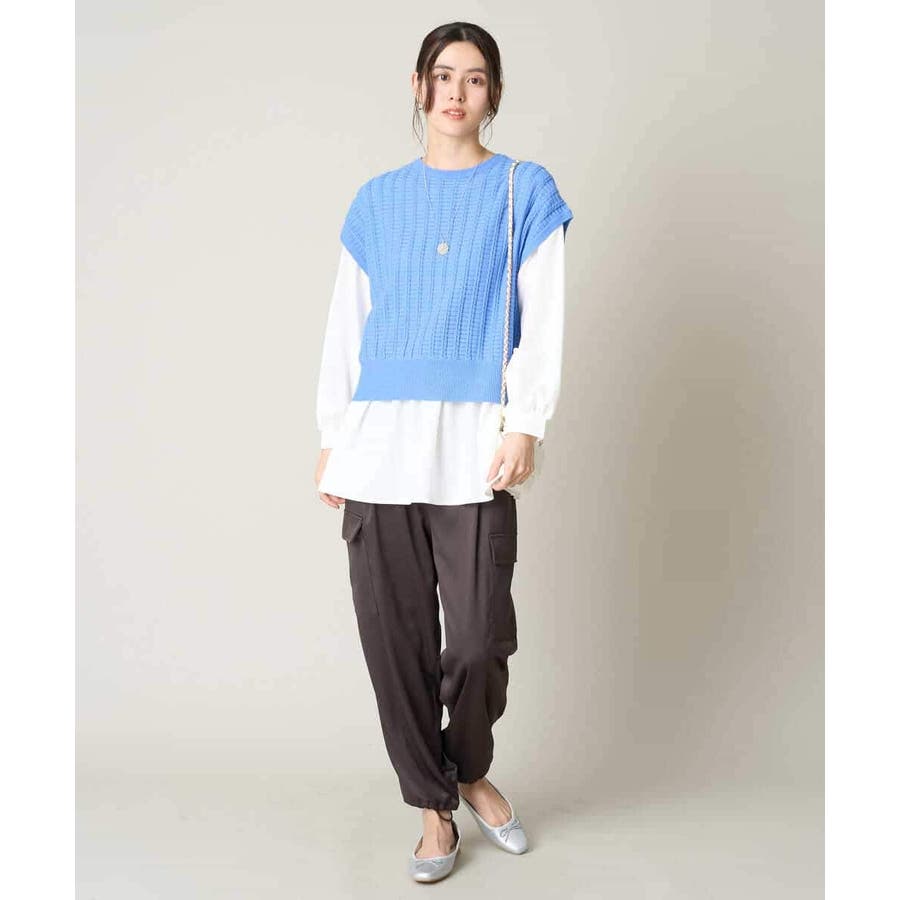 | 素材 | ツインセット ニットベスト レーヨン 82% ナイロン 18% ブラウス ポリエステル 96% ポリウレタン 4% |