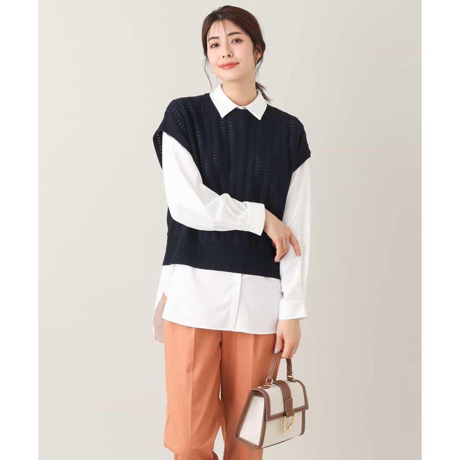 ネイビー:ネイビーのベスト×ブルーのブラウス