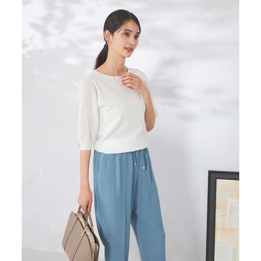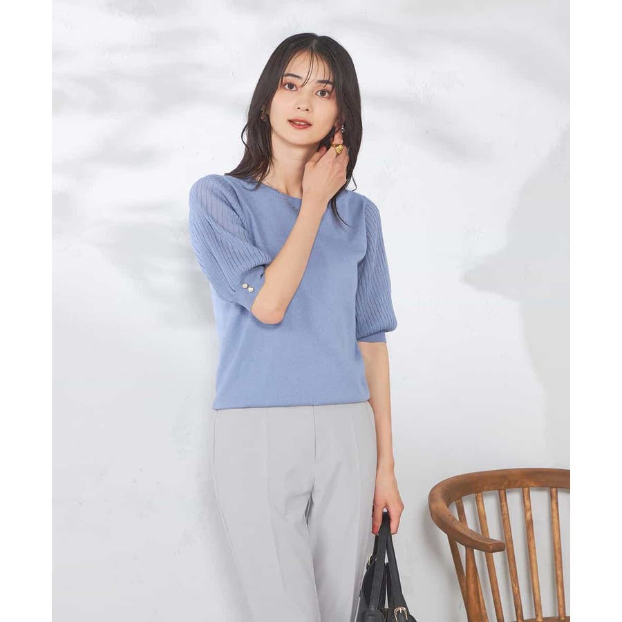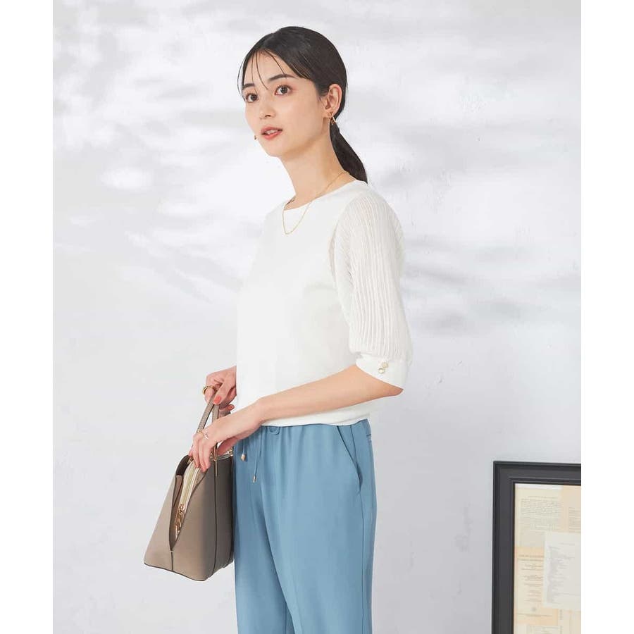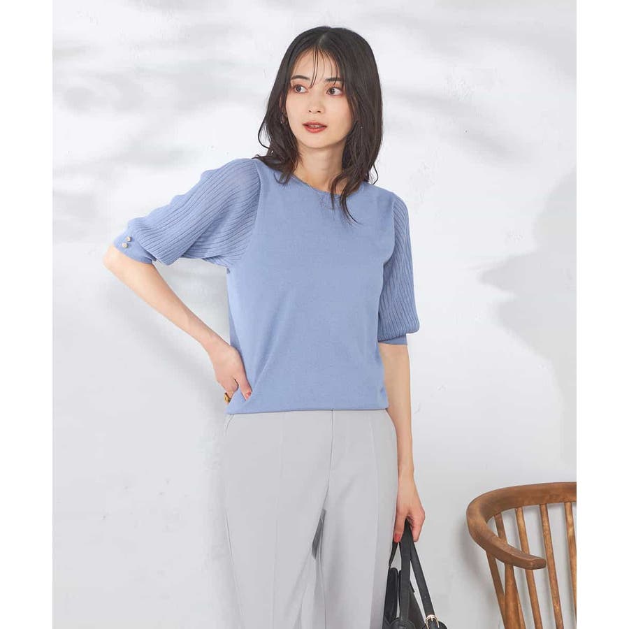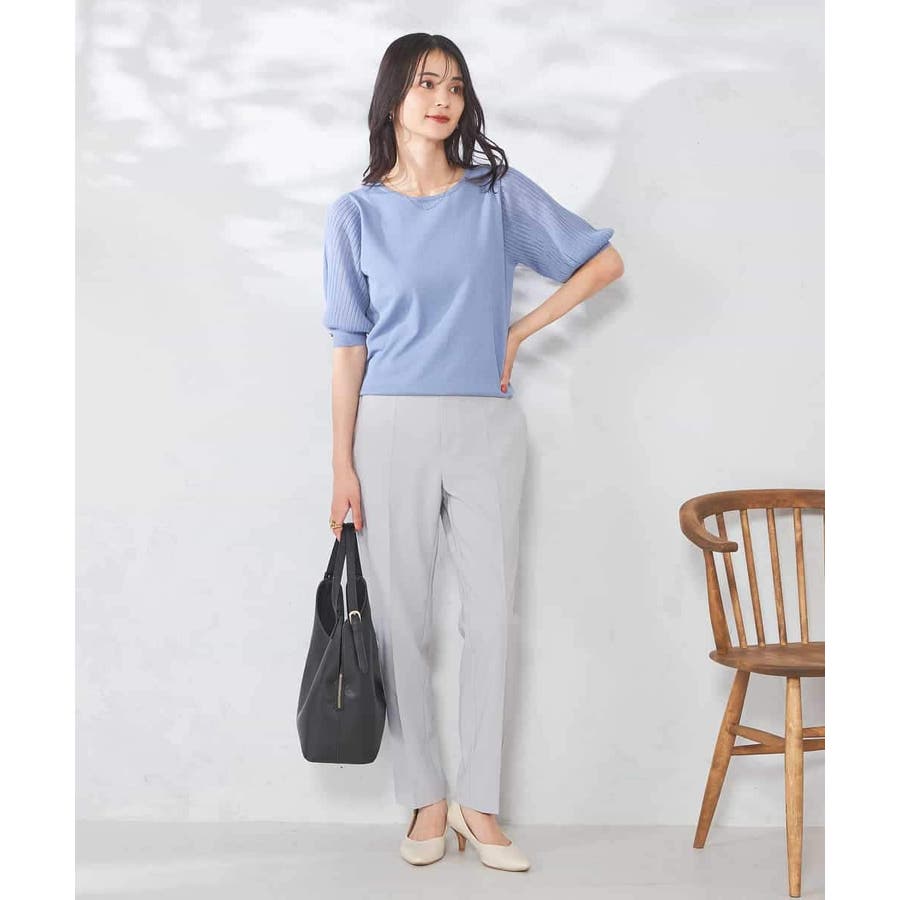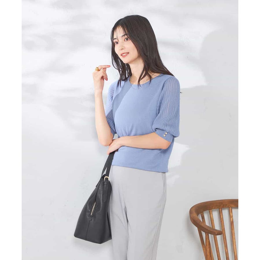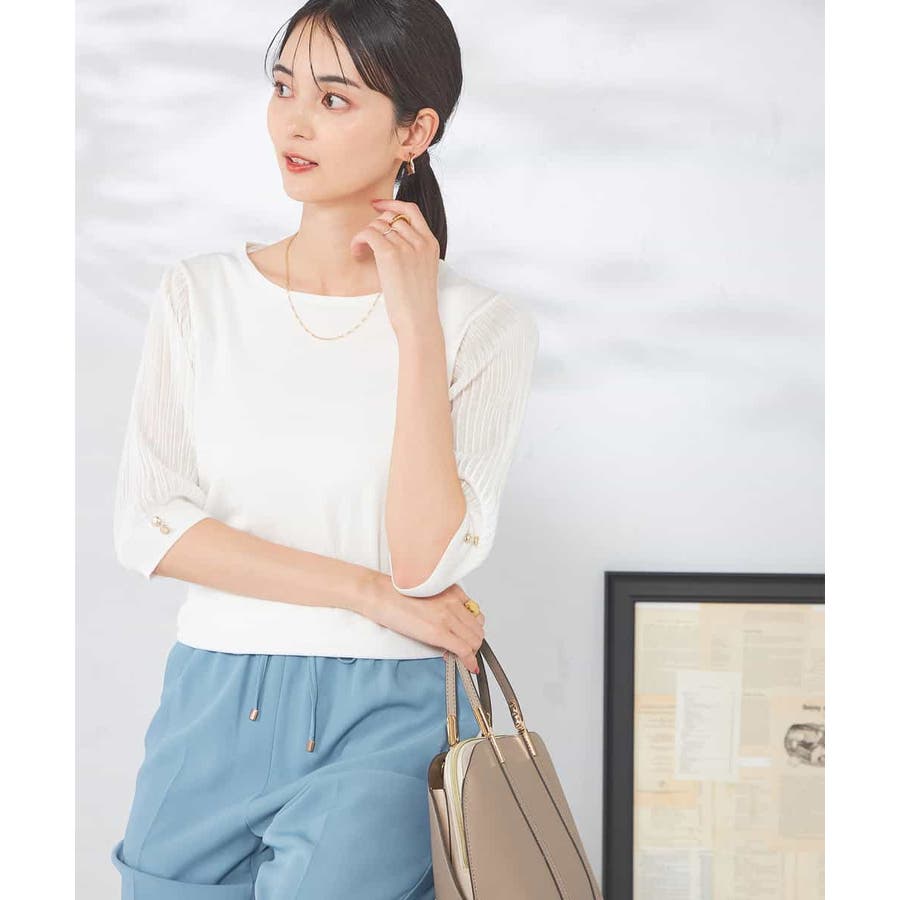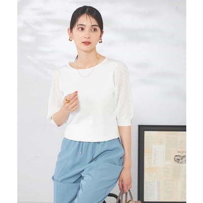 【接触冷感】プリーツスリーブサマーニット