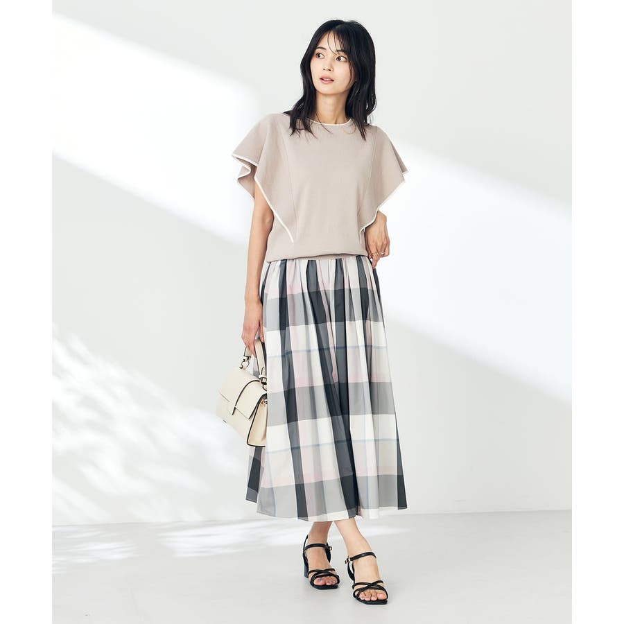 フレアスカート合わせはニットのフェミニンさを引き立てます。