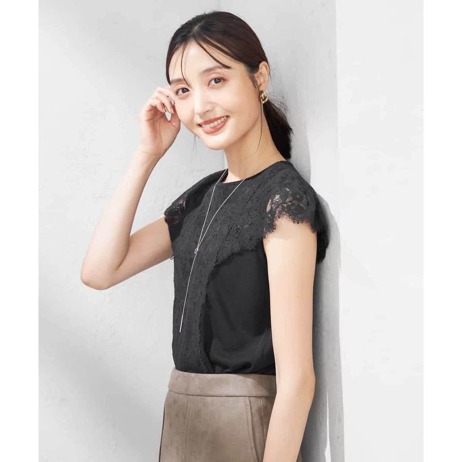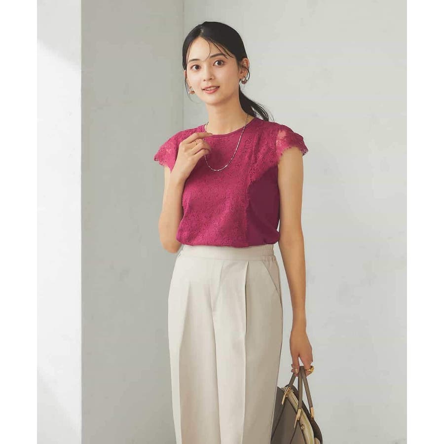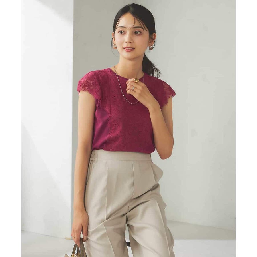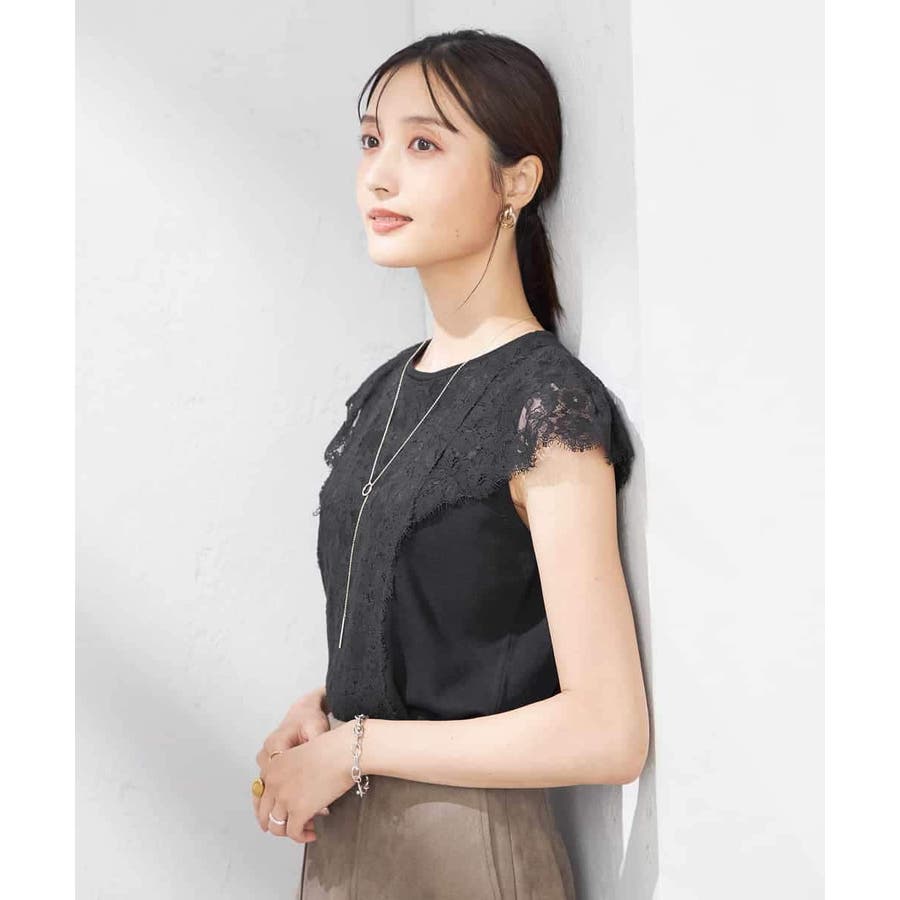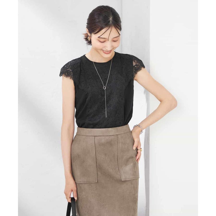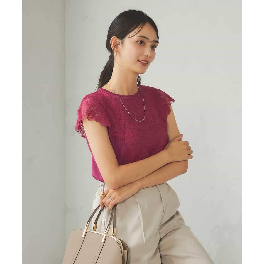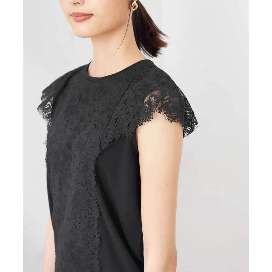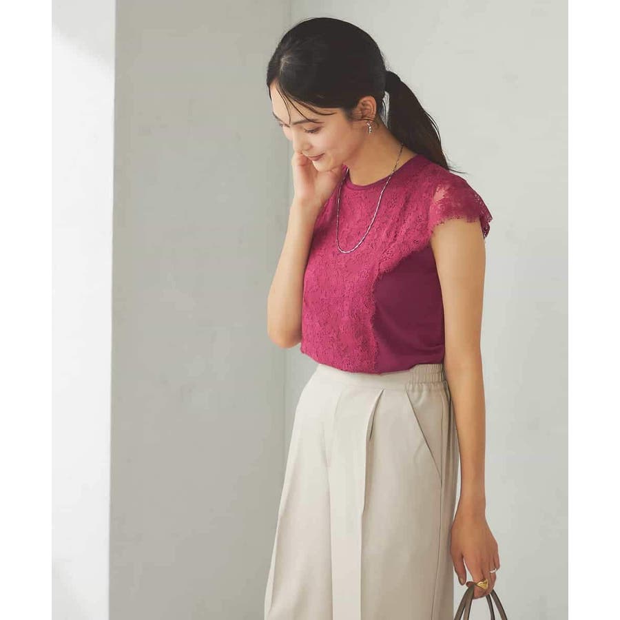 ・肌触りの良いシンプルなノースリーブニットに贅沢に施したレースが華やかなフェミニンニット