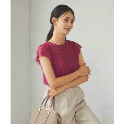 ・肩先にドロップするようにあしらったレースが二の腕をさりげなくカバー