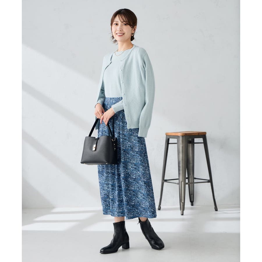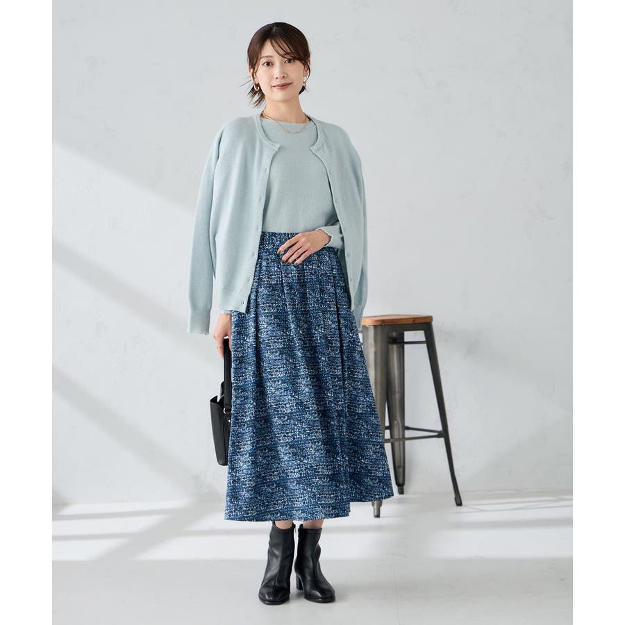 同素材のカーディガンとアンサンブルで着用頂くと、