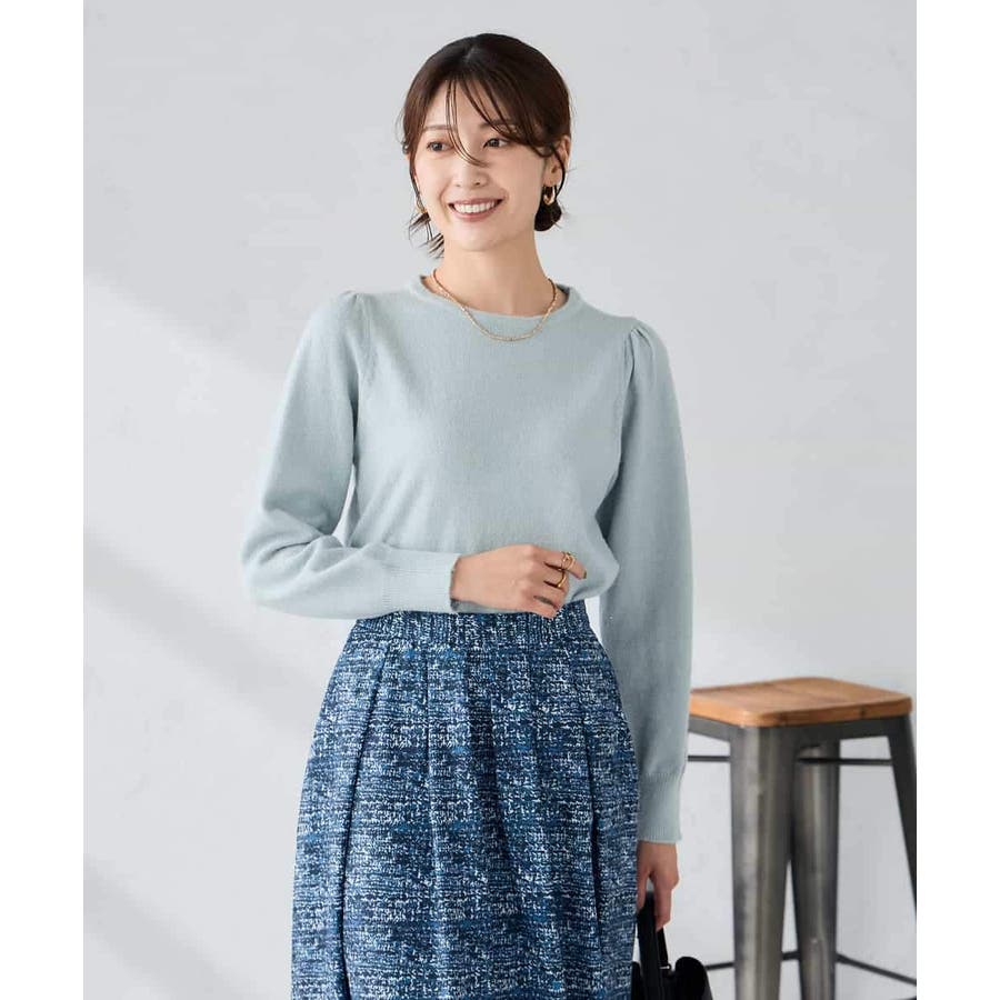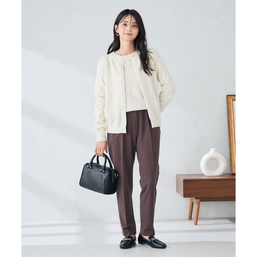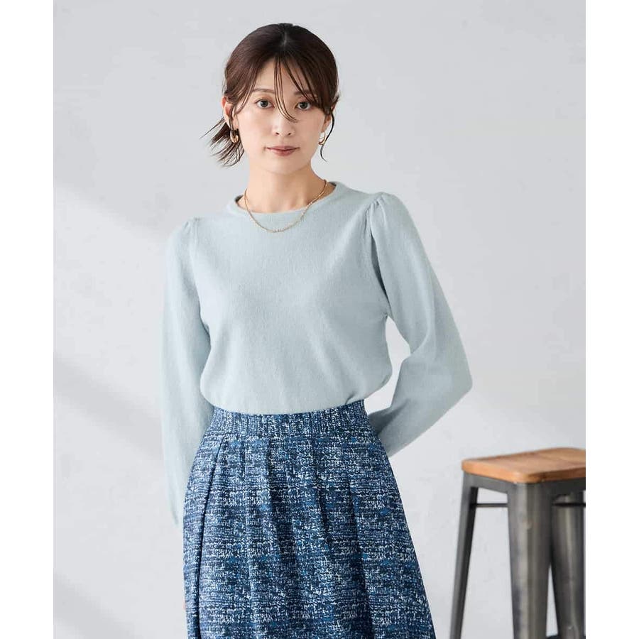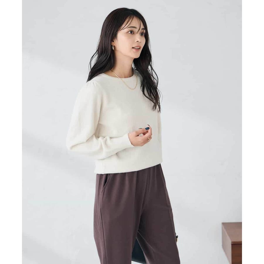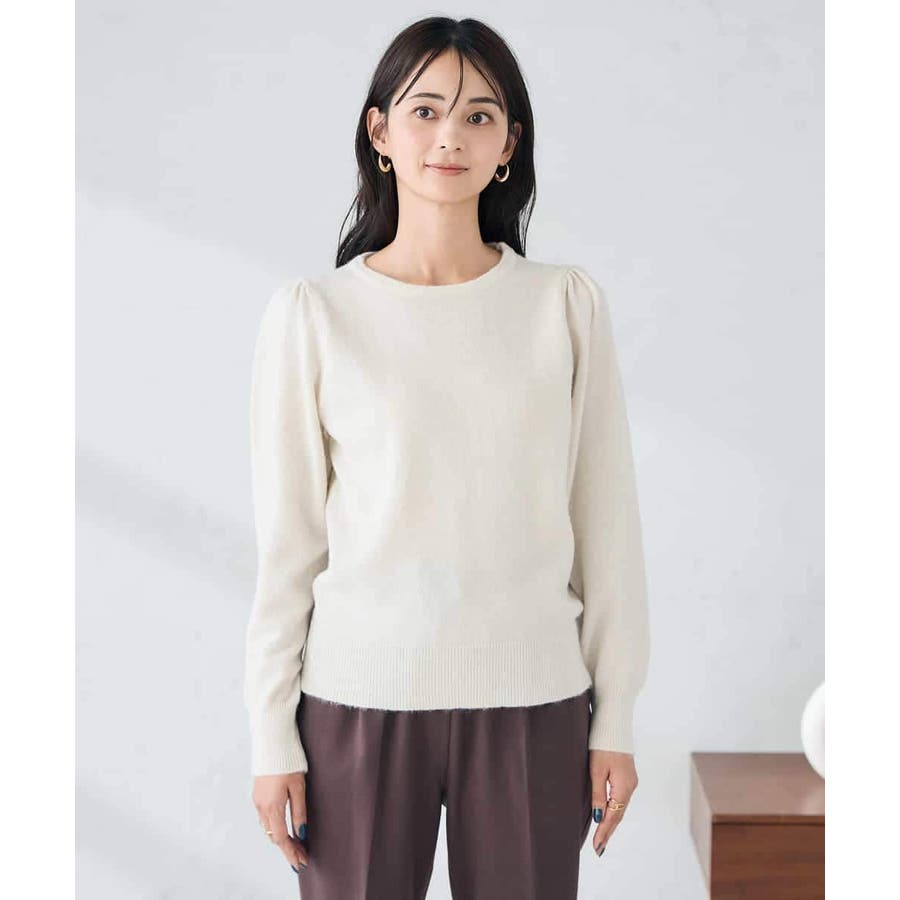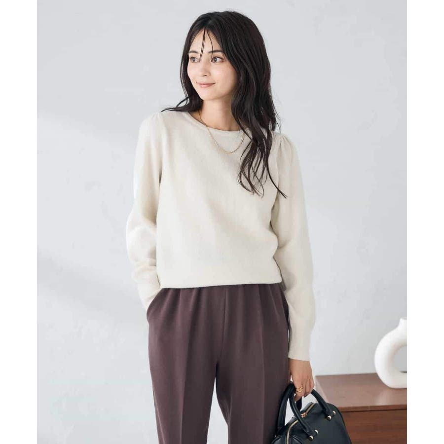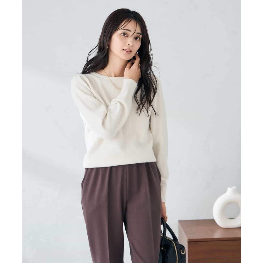 ・胸元が開きすぎないクルーネックで、上品&安心感のある印象