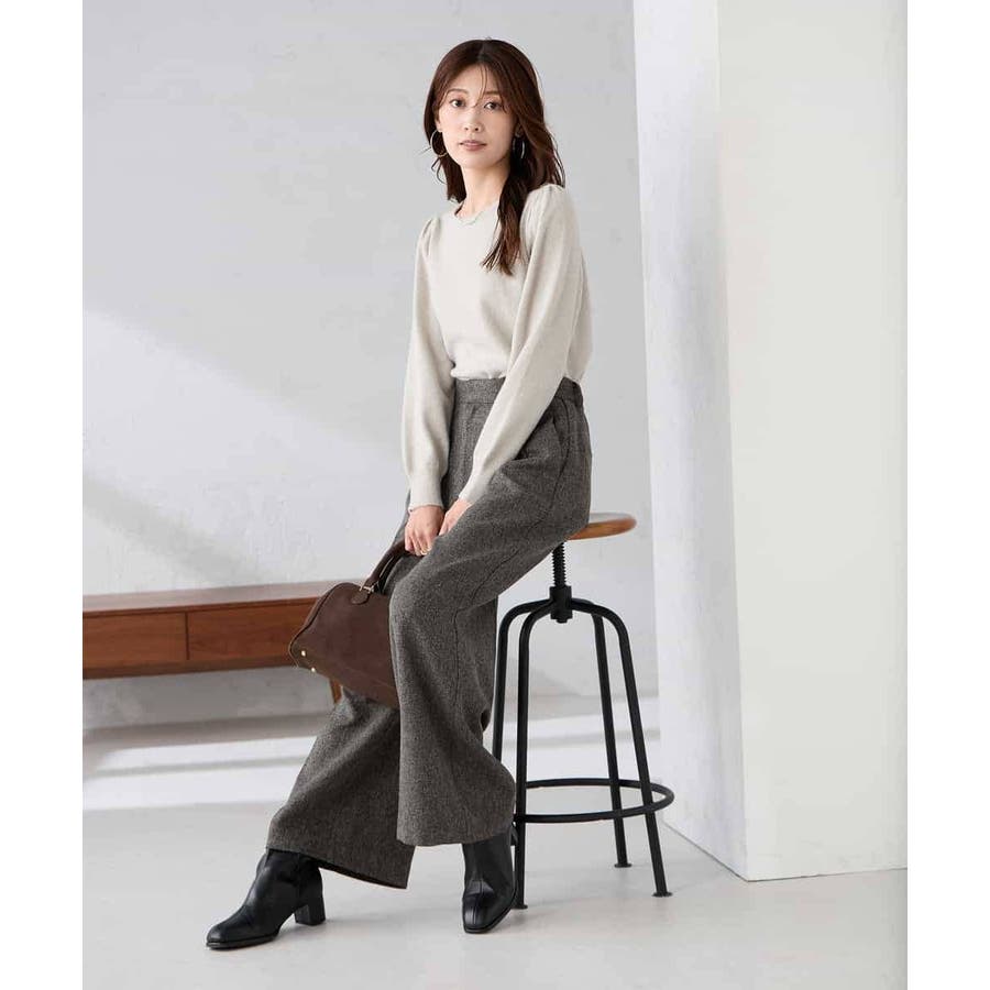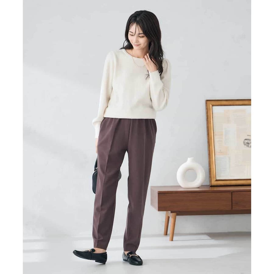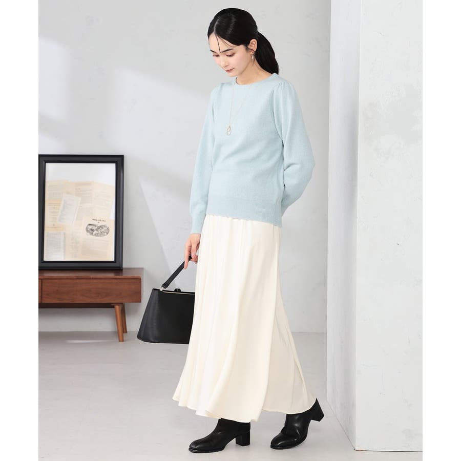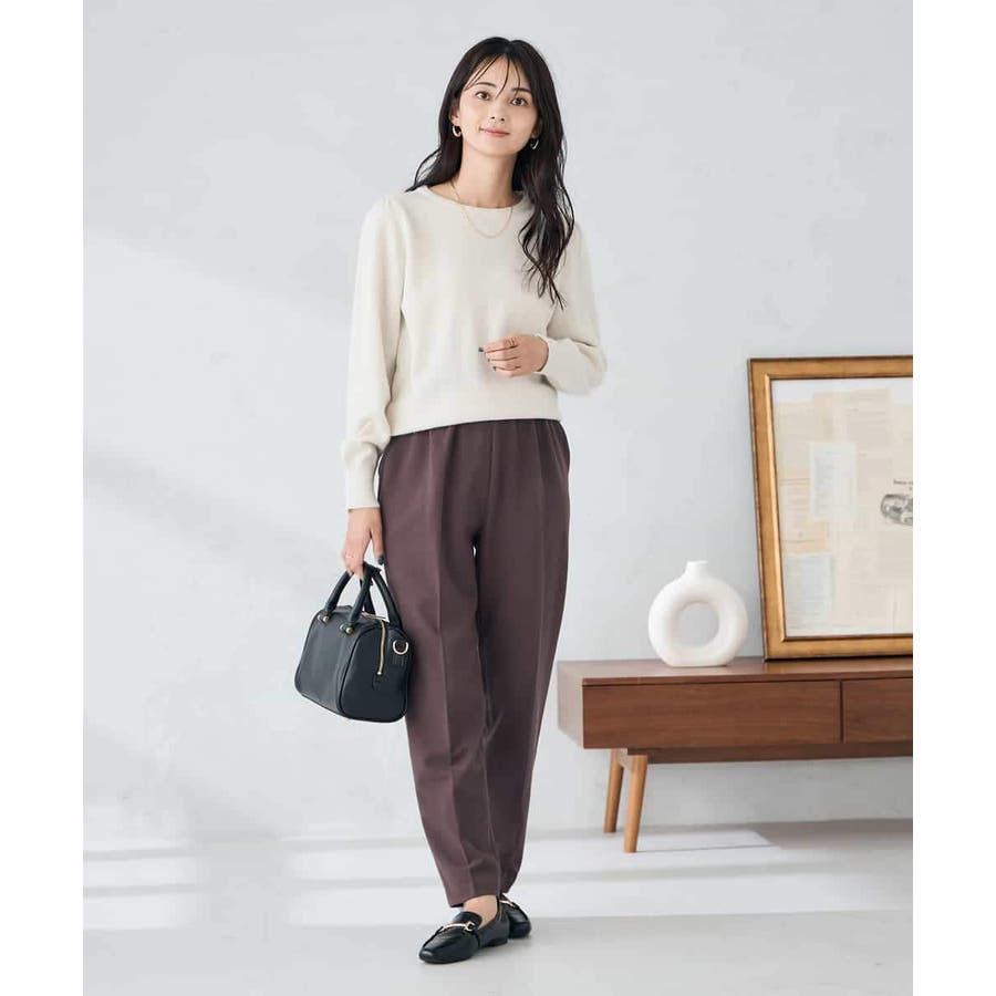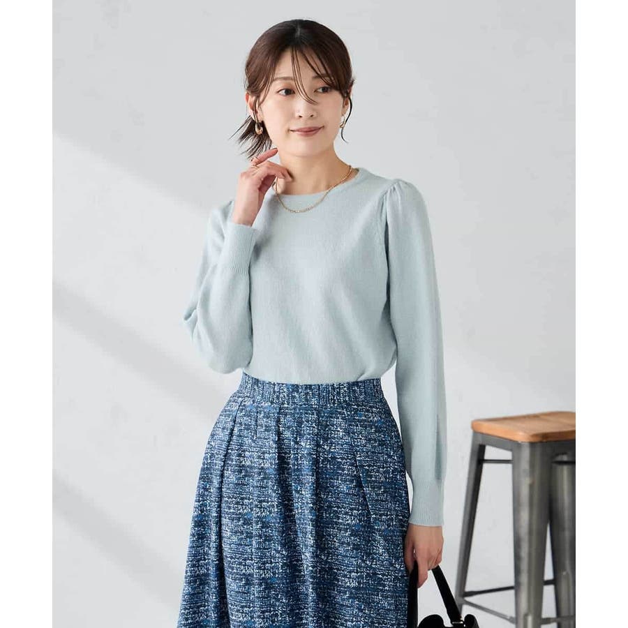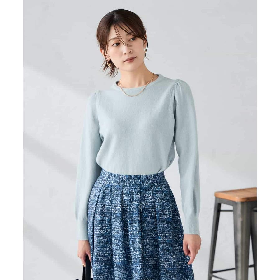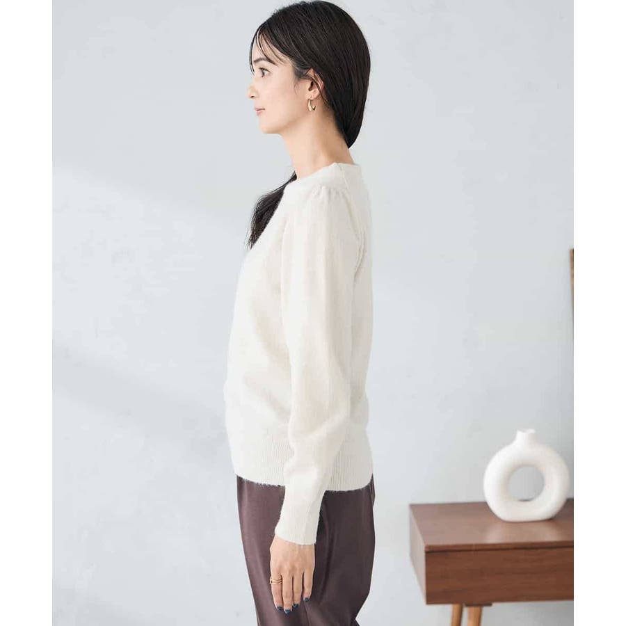 ・胸元が開きすぎないクルーネックで、上品&安心感のある印象