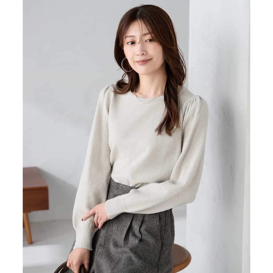 ◆スパンコール混クルーネックニット: