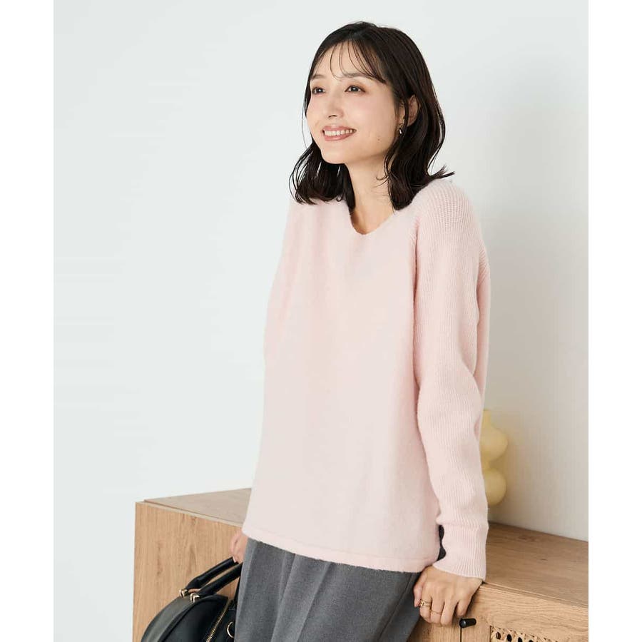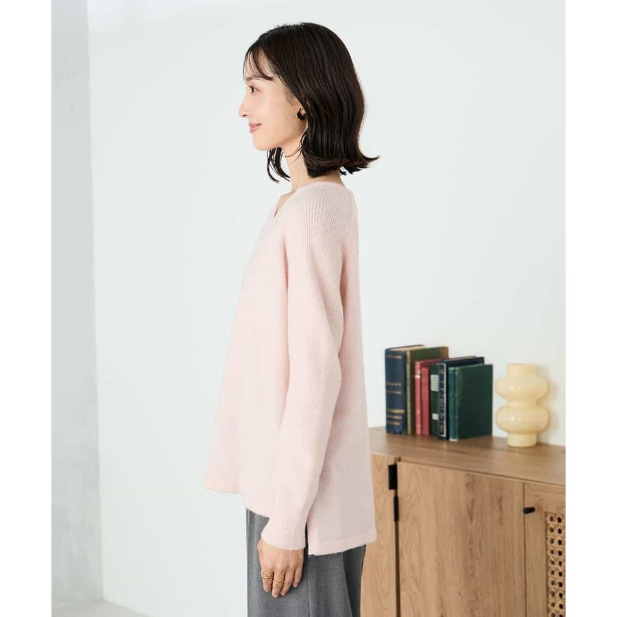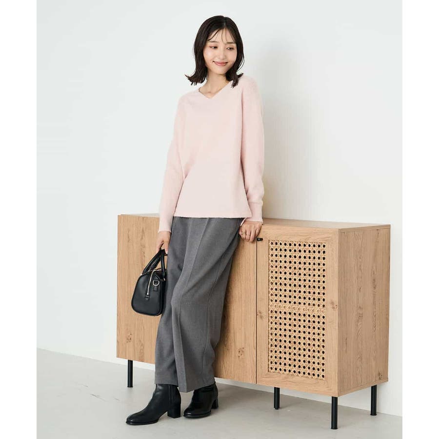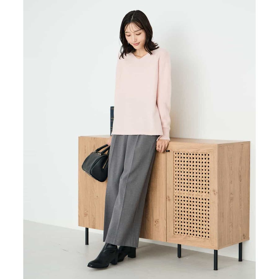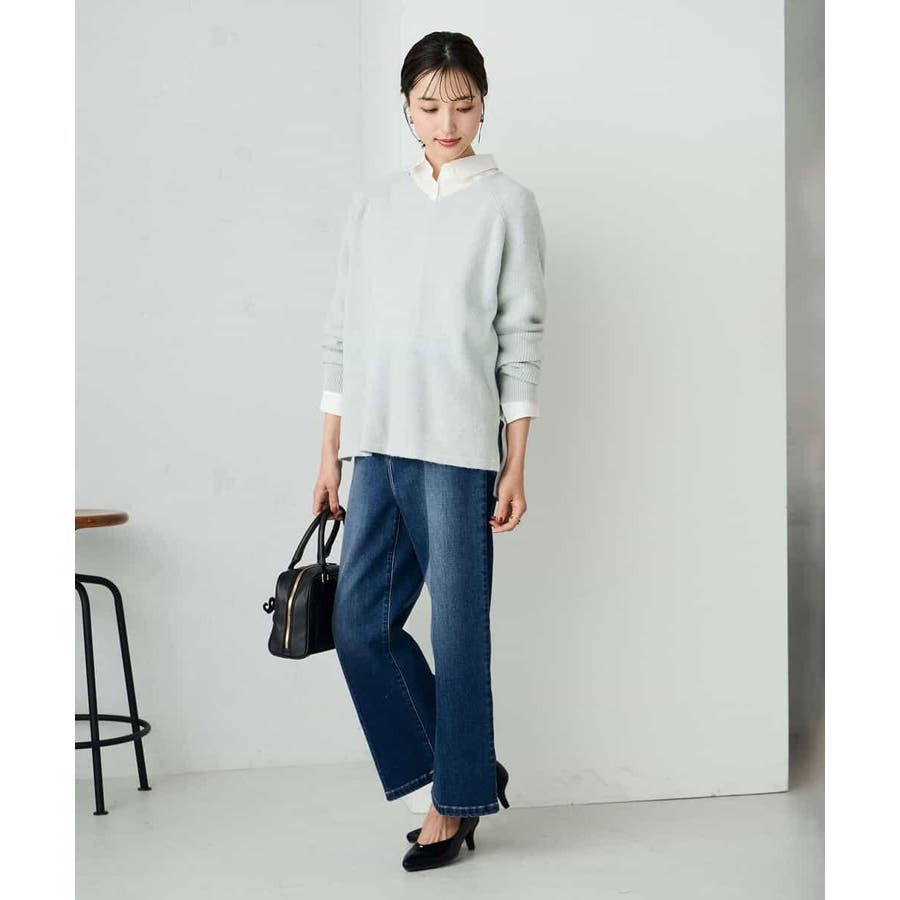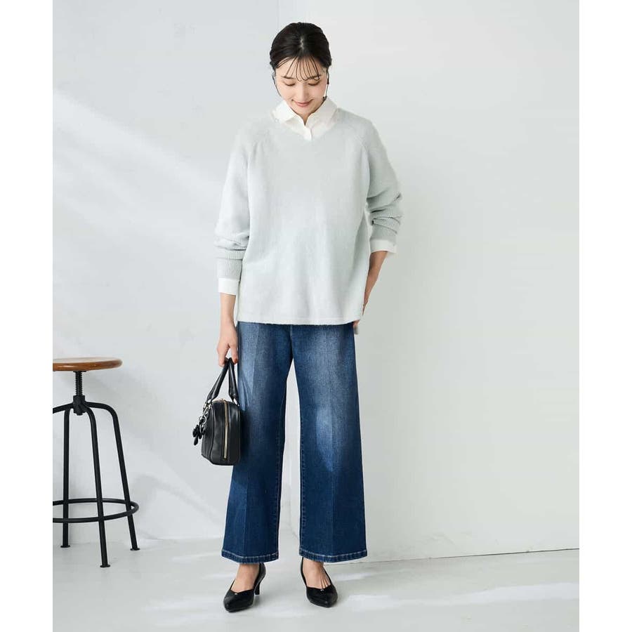 デイリーに使えるきれいめカジュアルニットなので、ワイドパンツやデニム合わせも決まります。