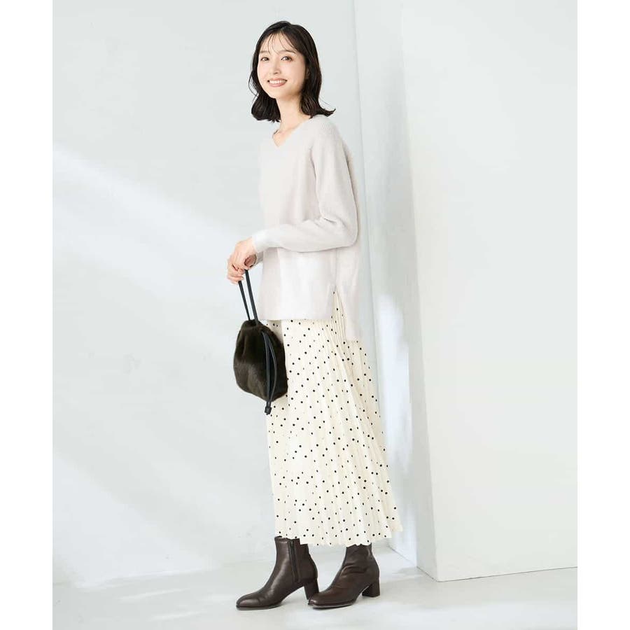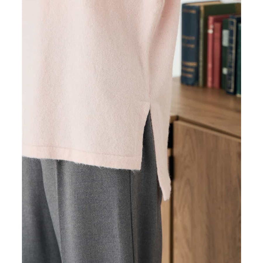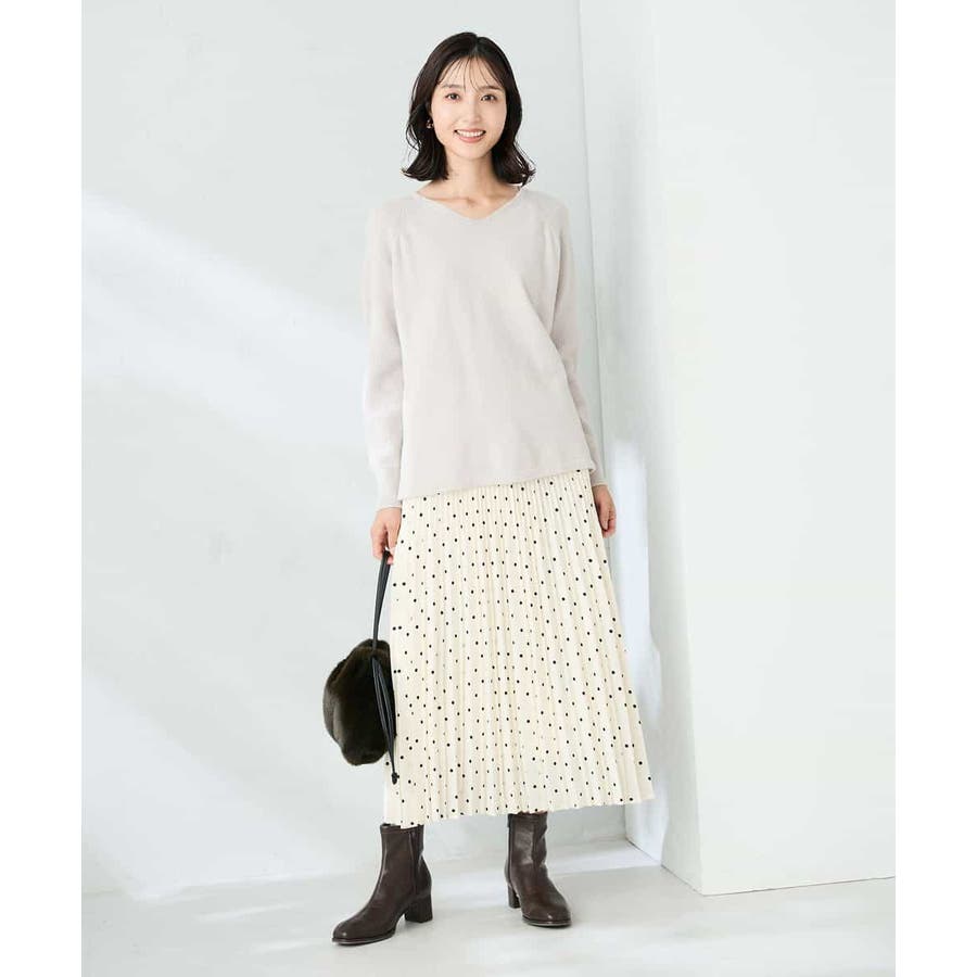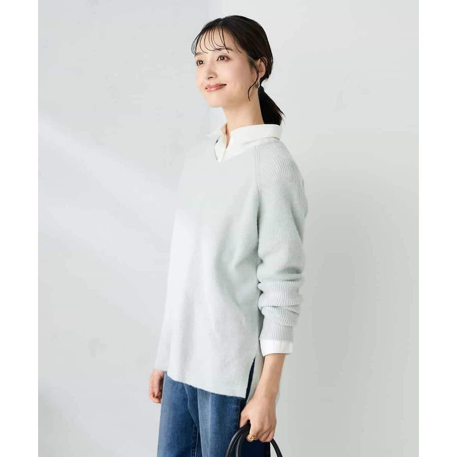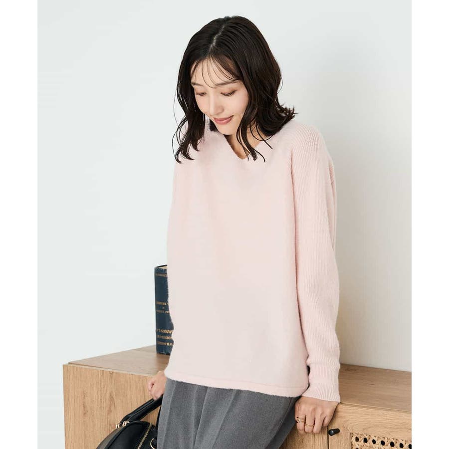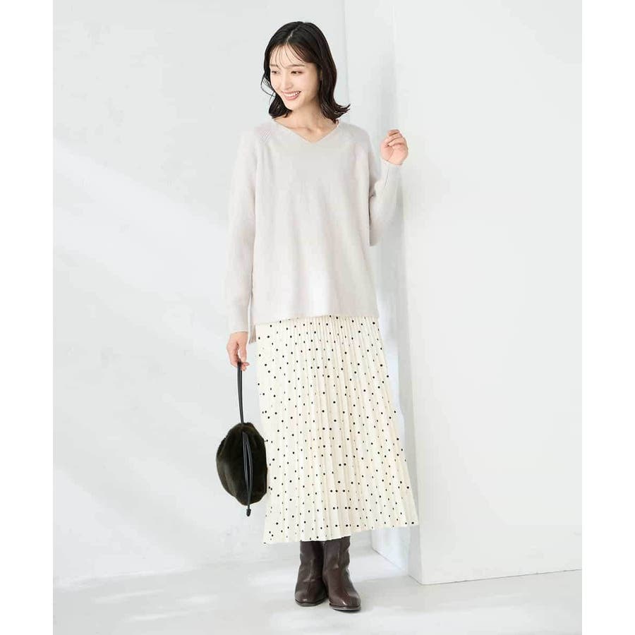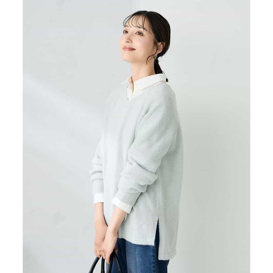 デイリーに使えるきれいめカジュアルニットなので、ワイドパンツやデニム合わせも決まります。