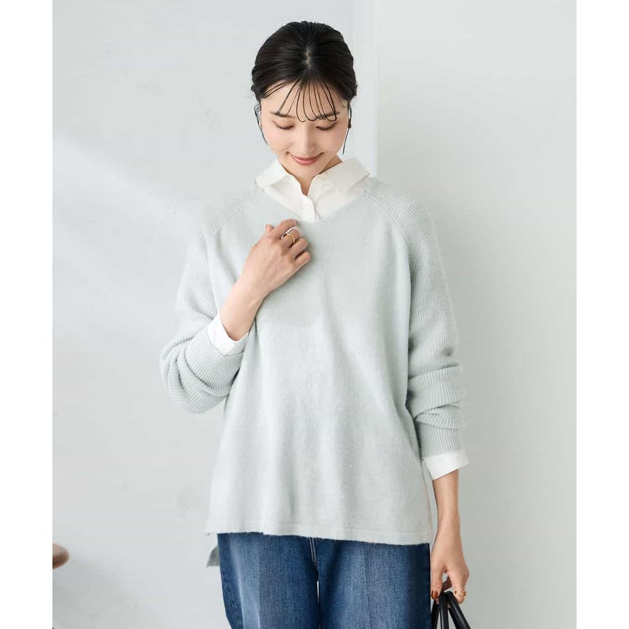 ・開きすぎない浅めVネックで首元がすっきり見えます