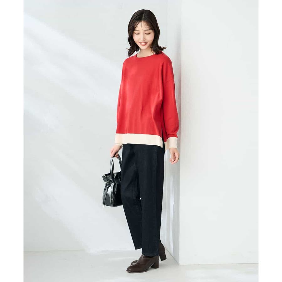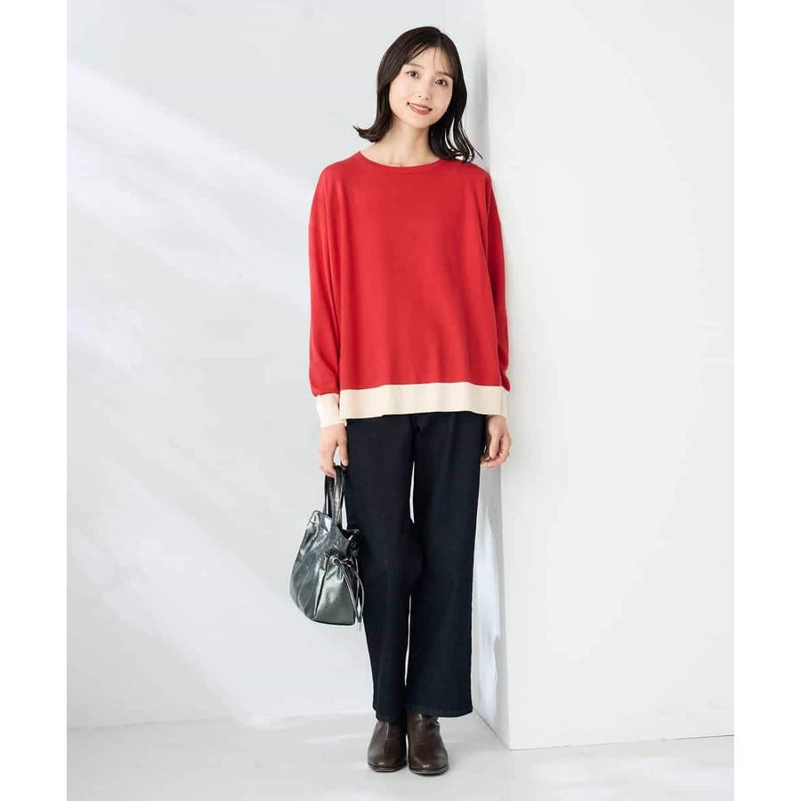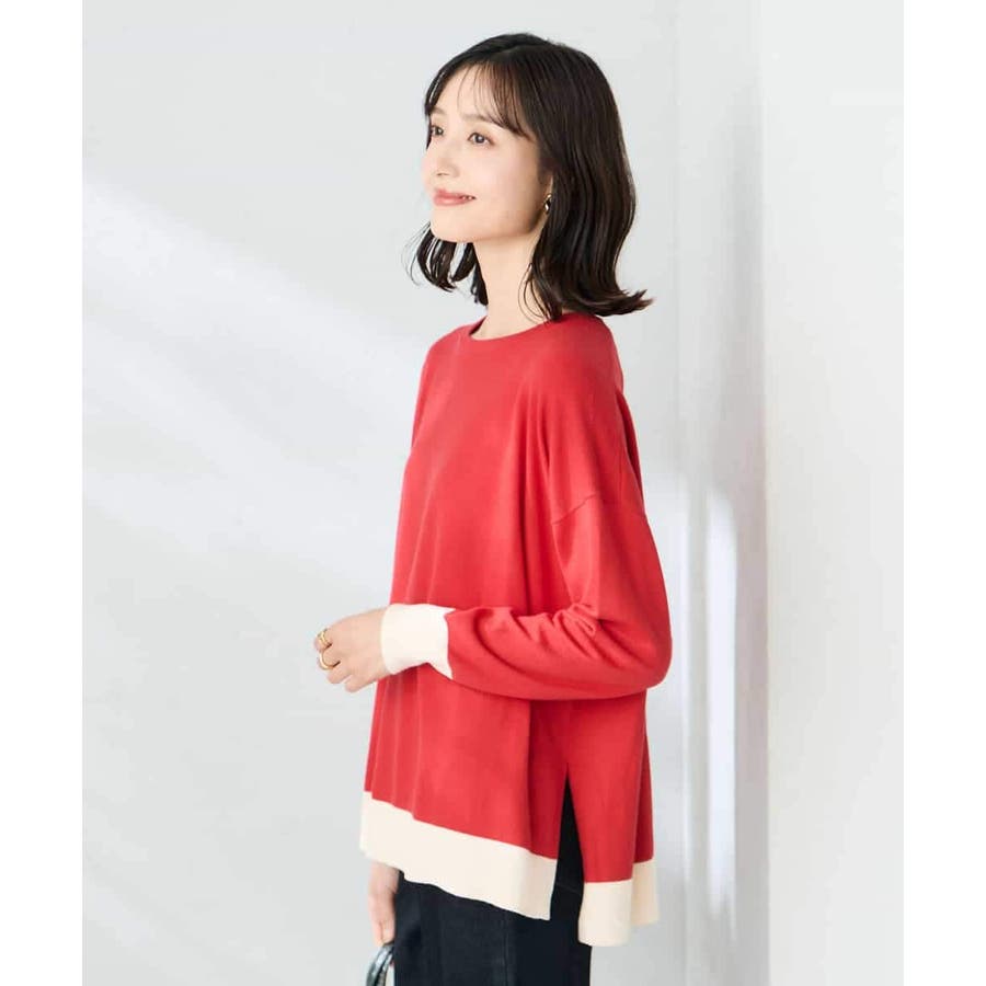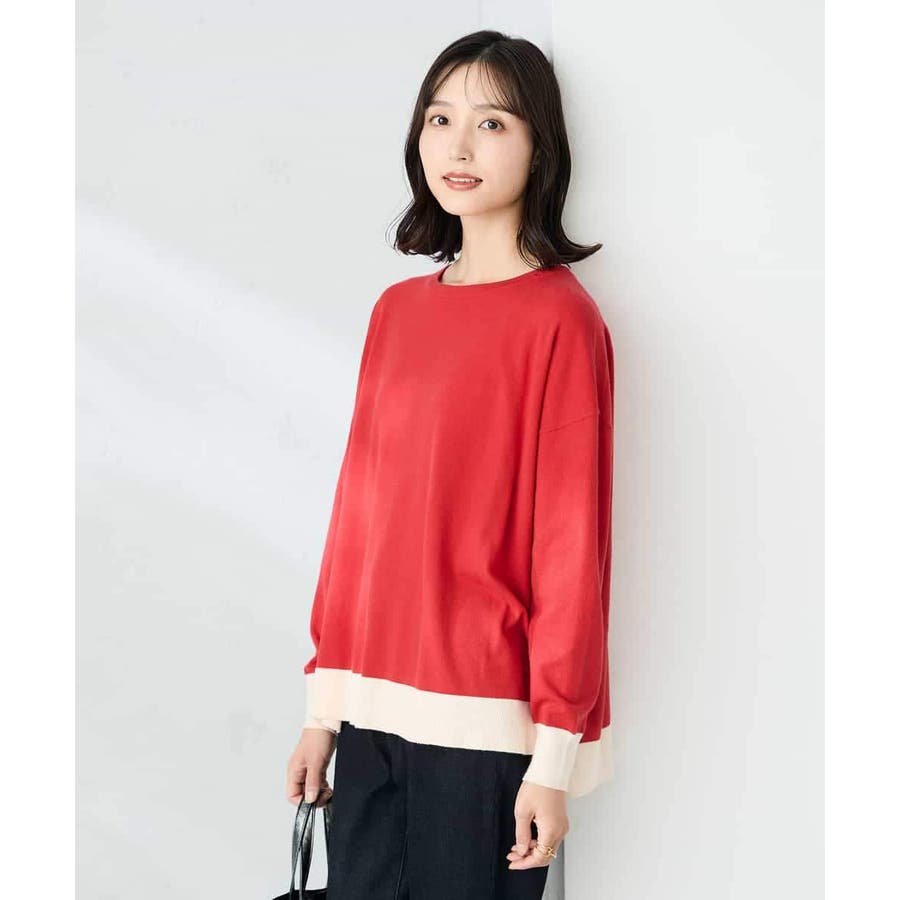 【レッド】バイカラーニット
