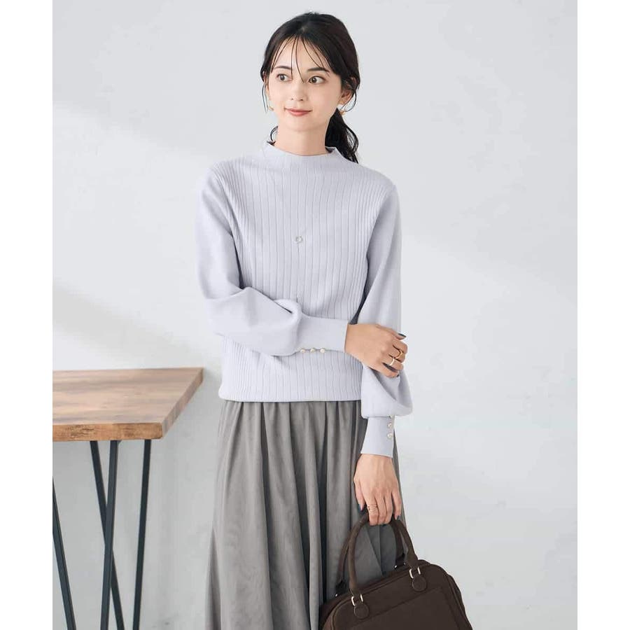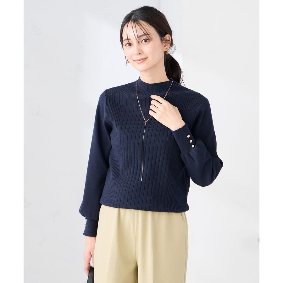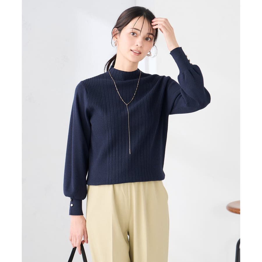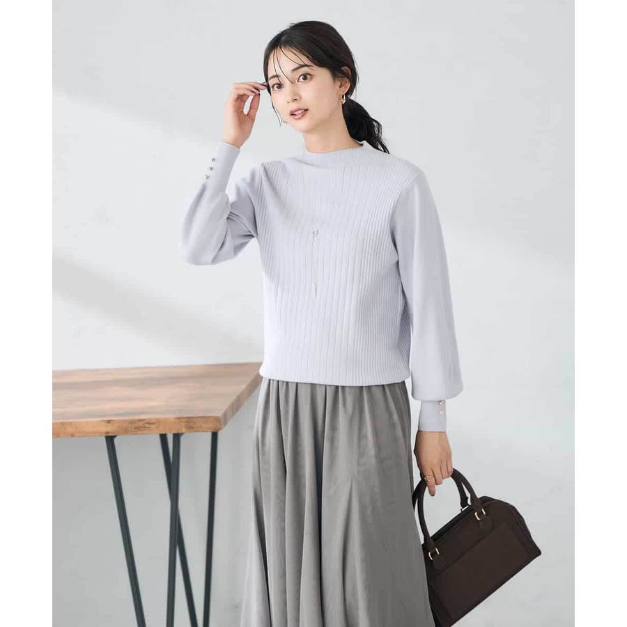 ・高すぎない編続きのビルドネックとパフ袖/袖口ボタンがポイント