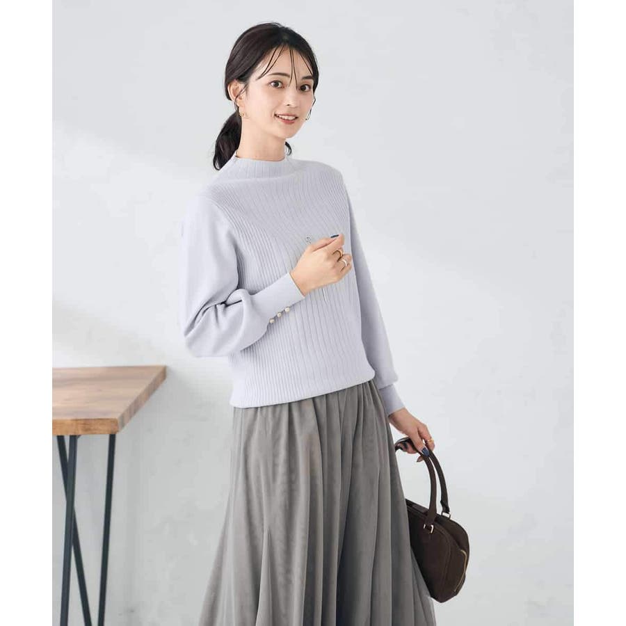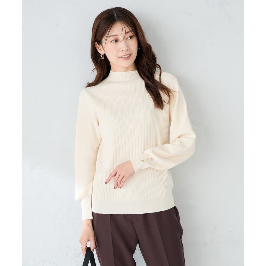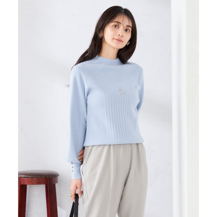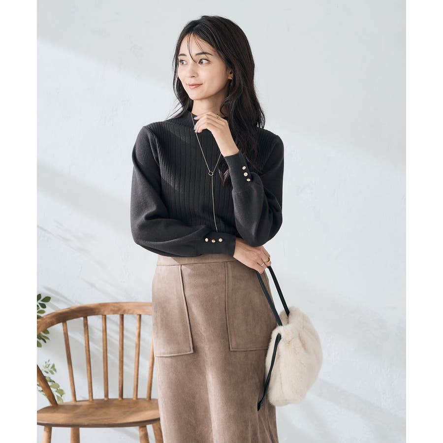 ・高すぎない編続きのビルドネックとパフ袖/袖口ボタンがポイント