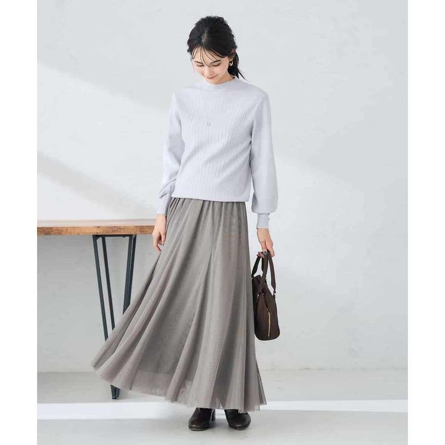 ジャンパースカートやジレとの重ね着も、凹凸感がアクセントに。
