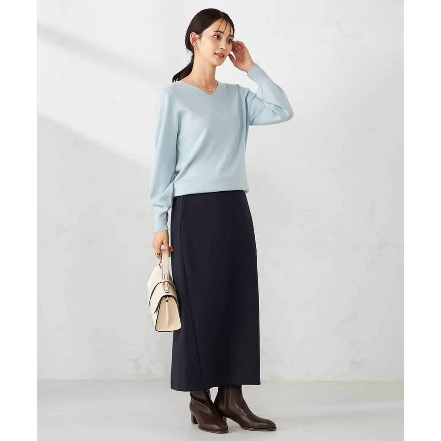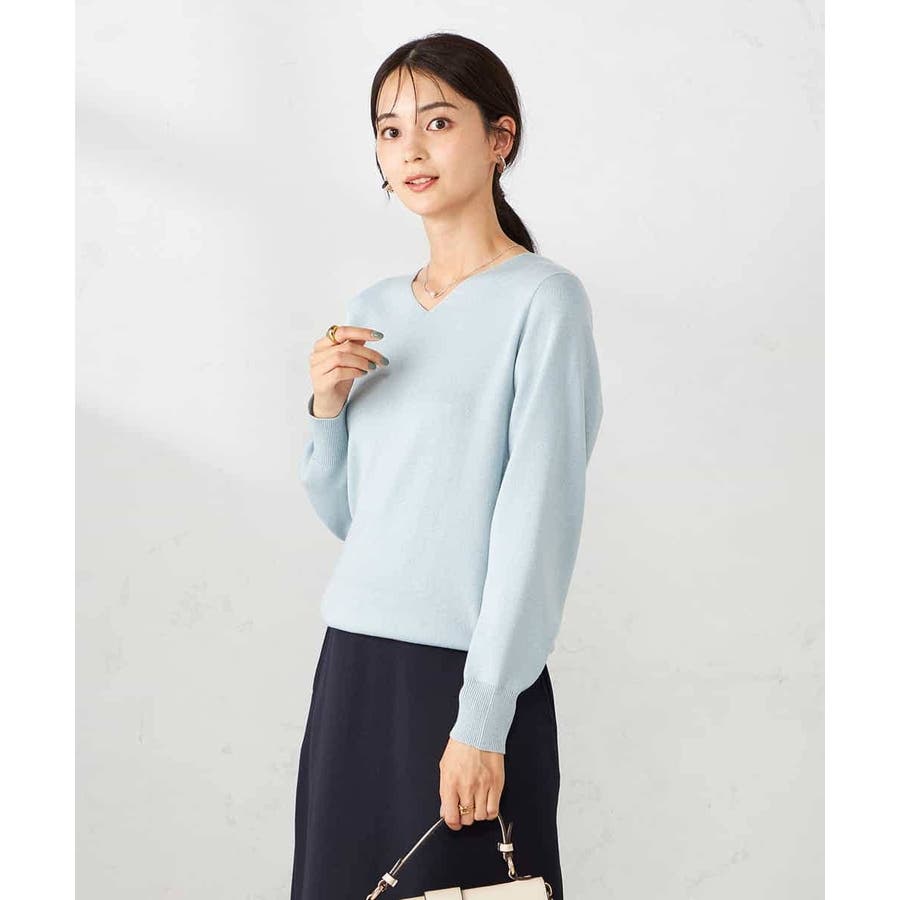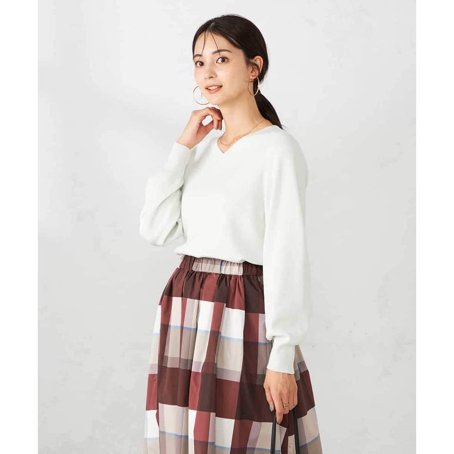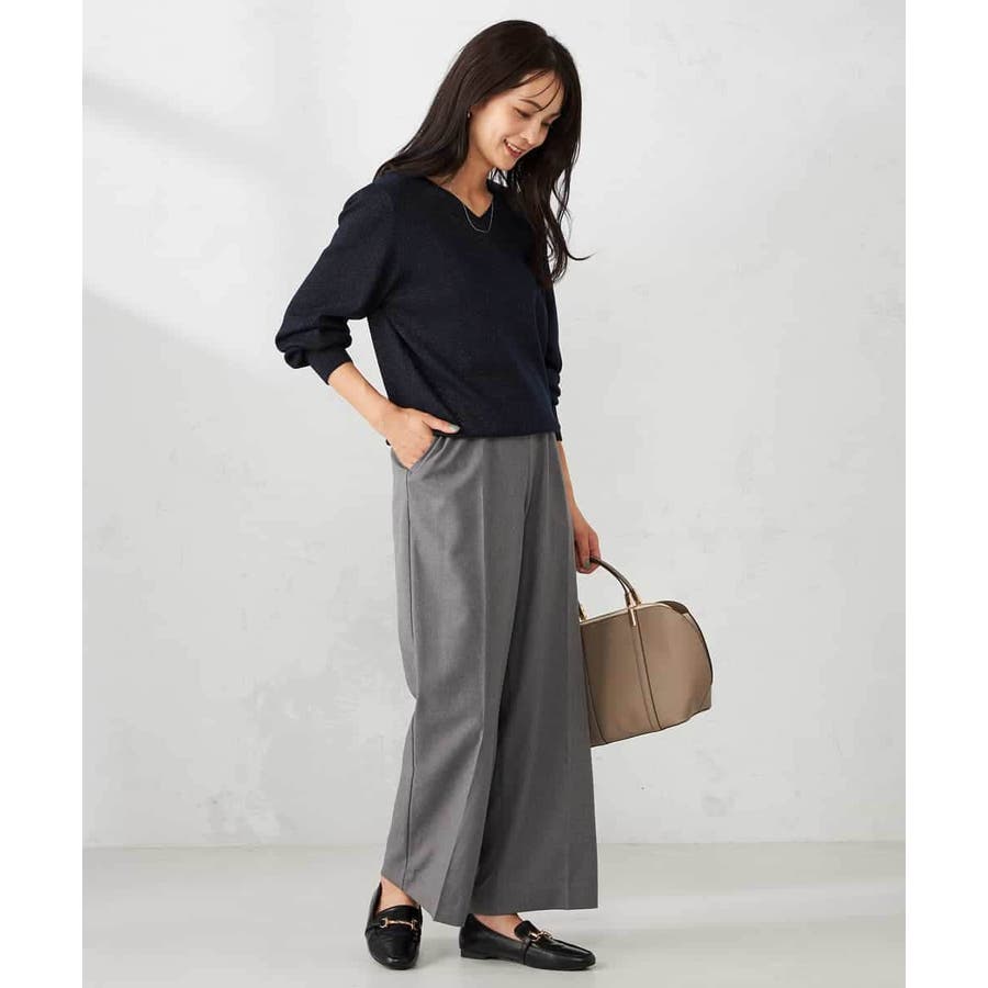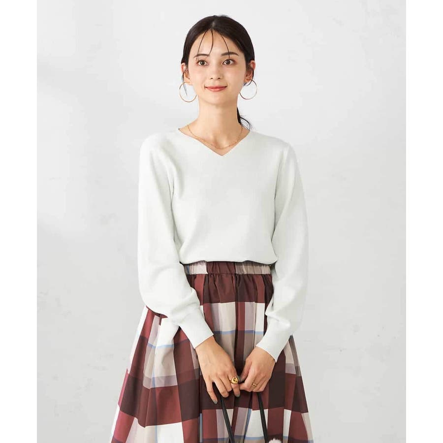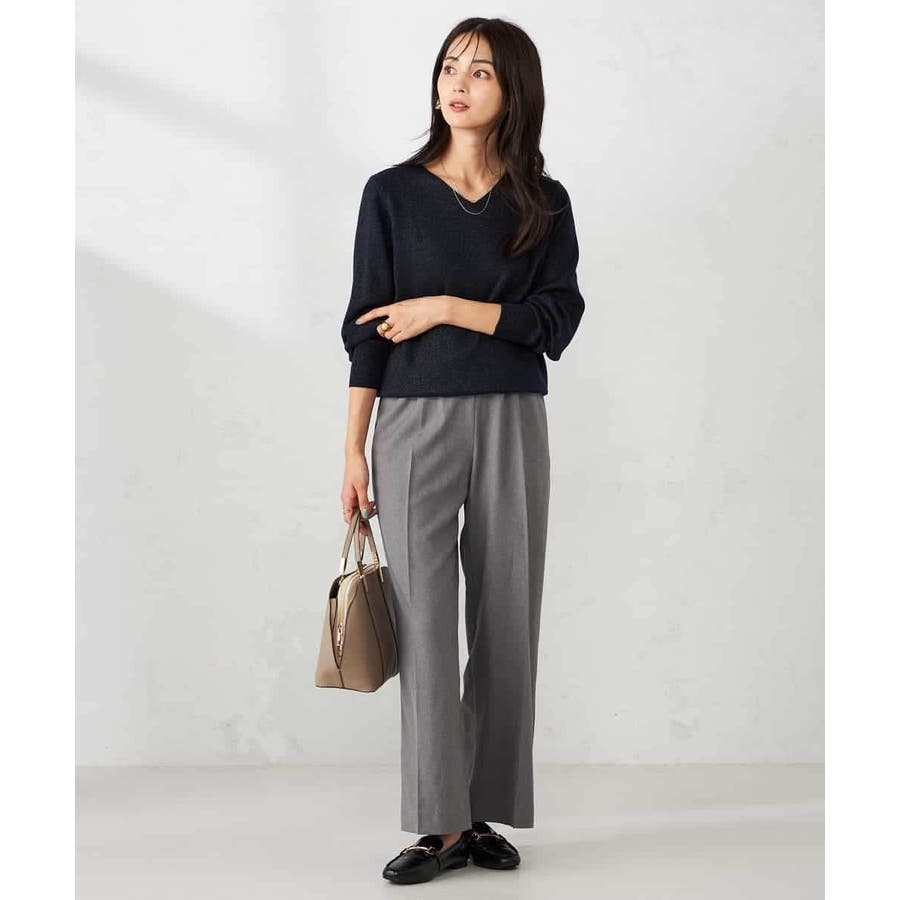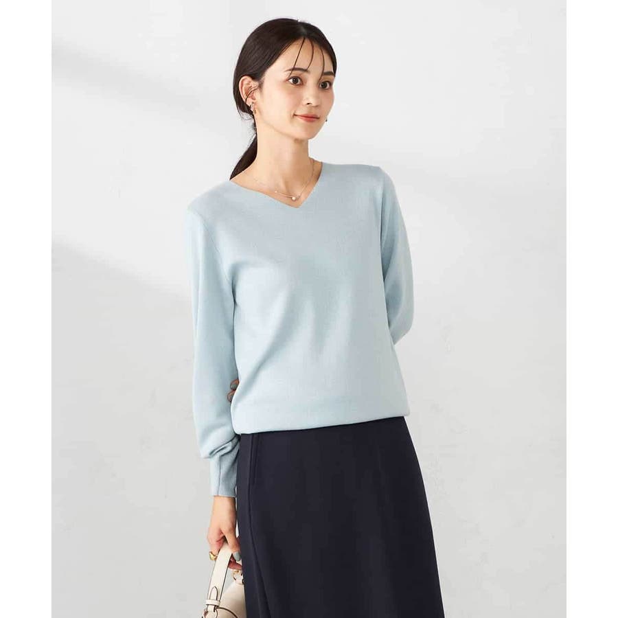 【洗える】ラメVネック美ラクるパフスリーブニット