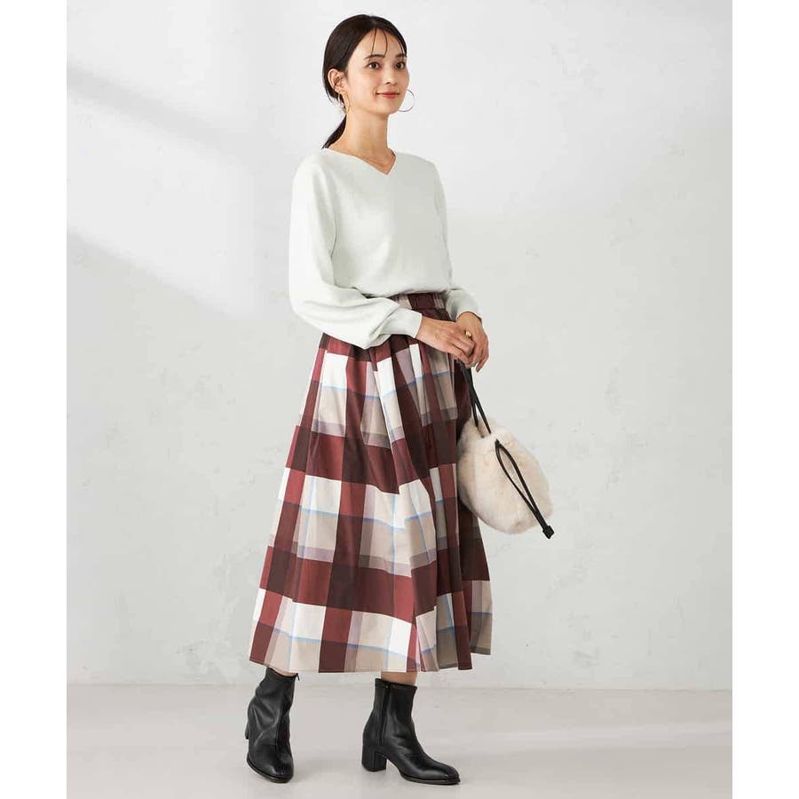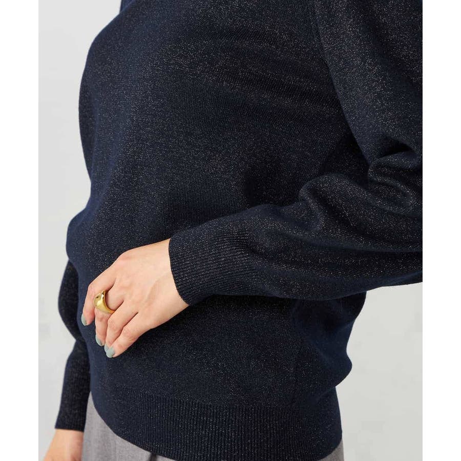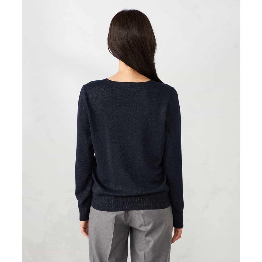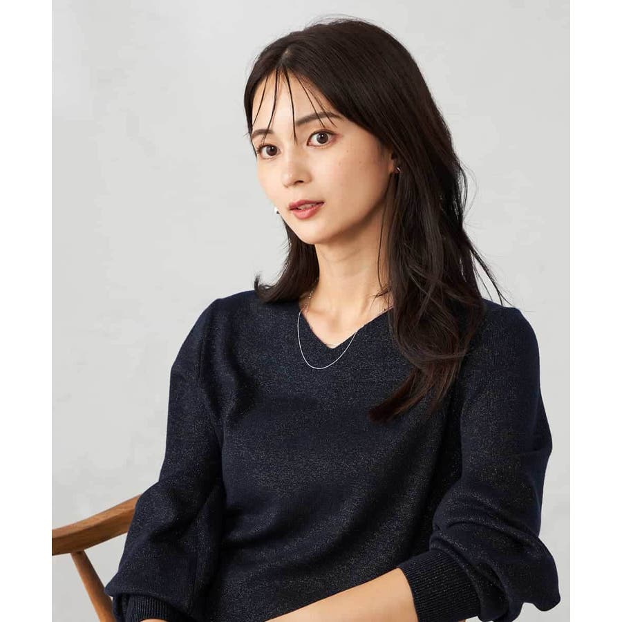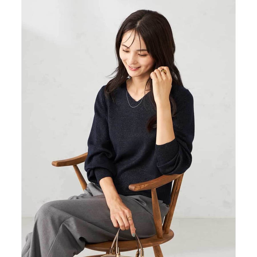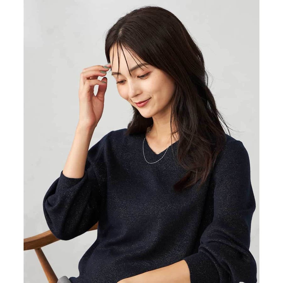 さりげないラメが華やかでジャケットのインナーにも着やすく、通勤時も着回せるのがうれしいポイント。