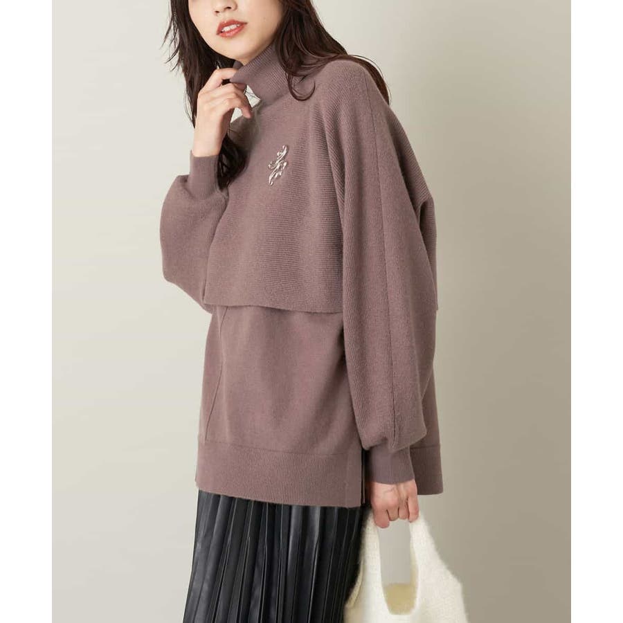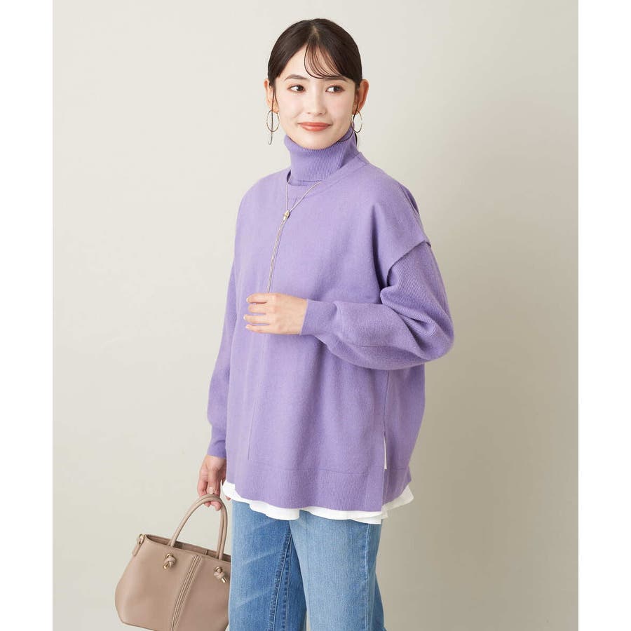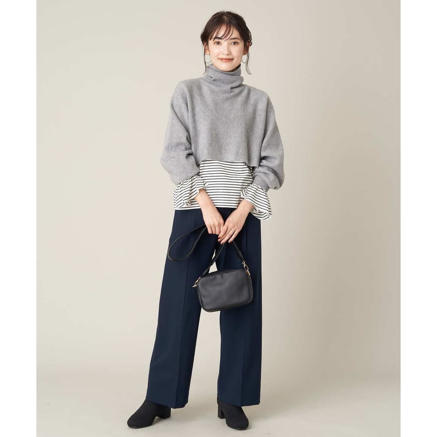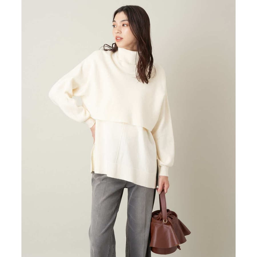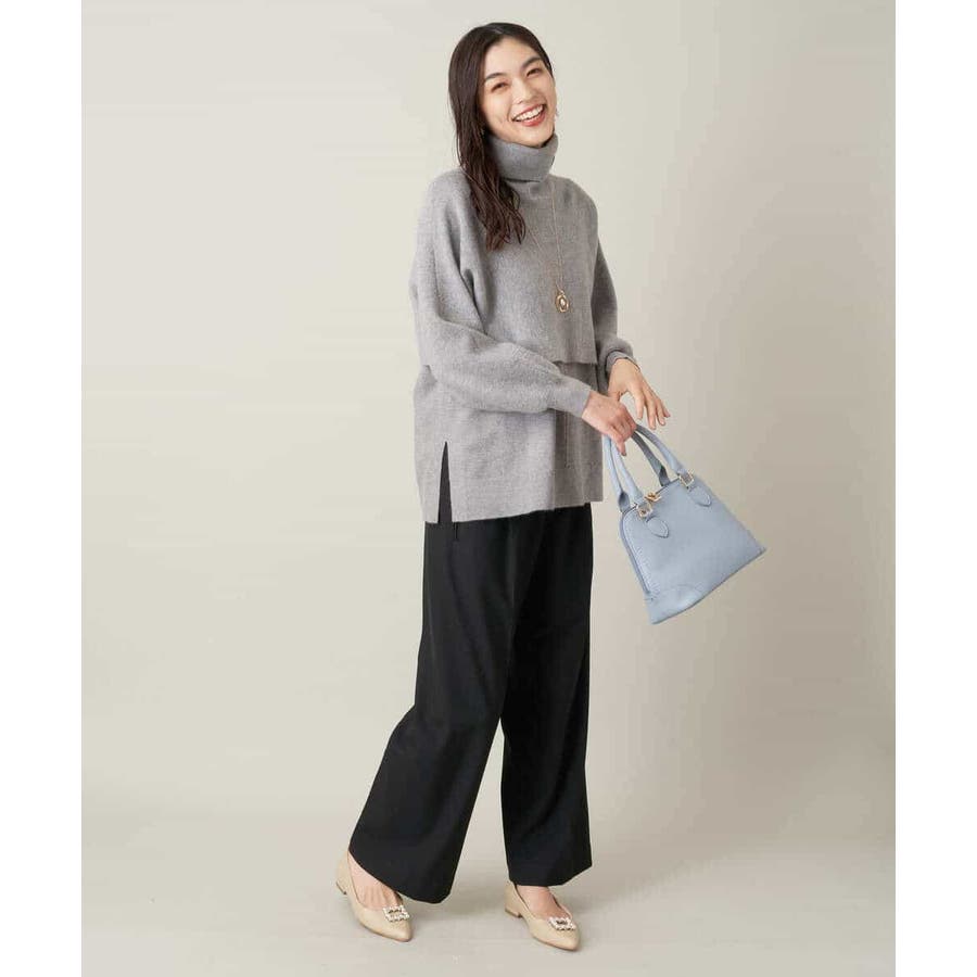 ・短丈ニットはタートルネックにたっぷり袖でトレンド感◎
