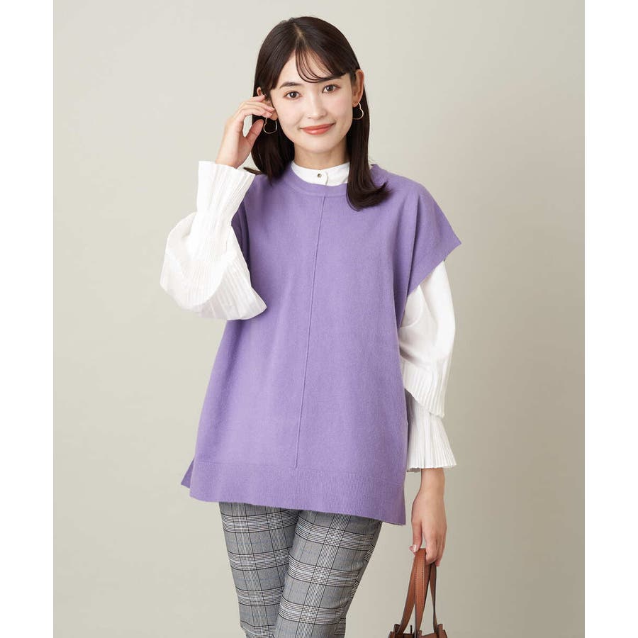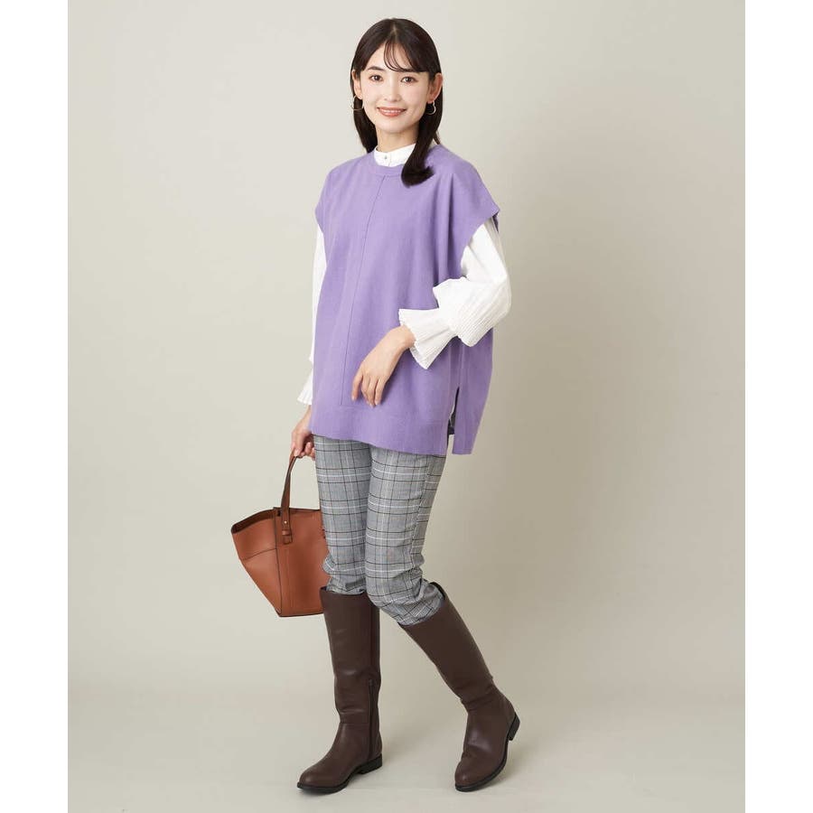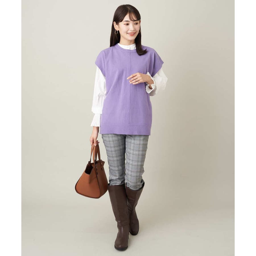 ・セット着用時はベスト、短丈ニットどちらを上に着ても決まります