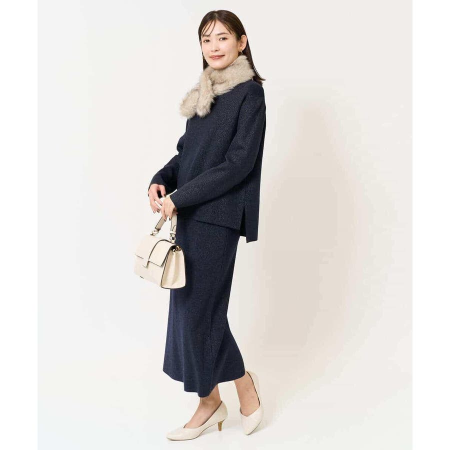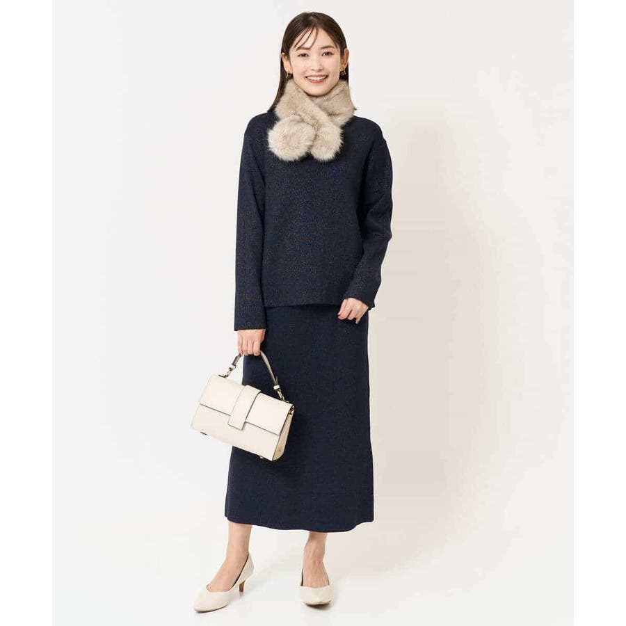 ・トレンド感溢れるラメニットスカートがスタイリングを華やかにしてくれます