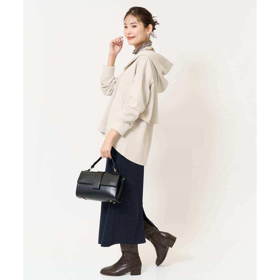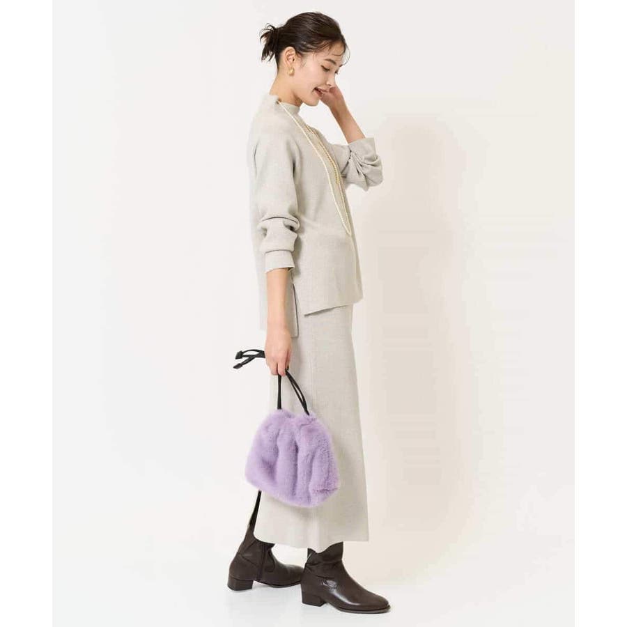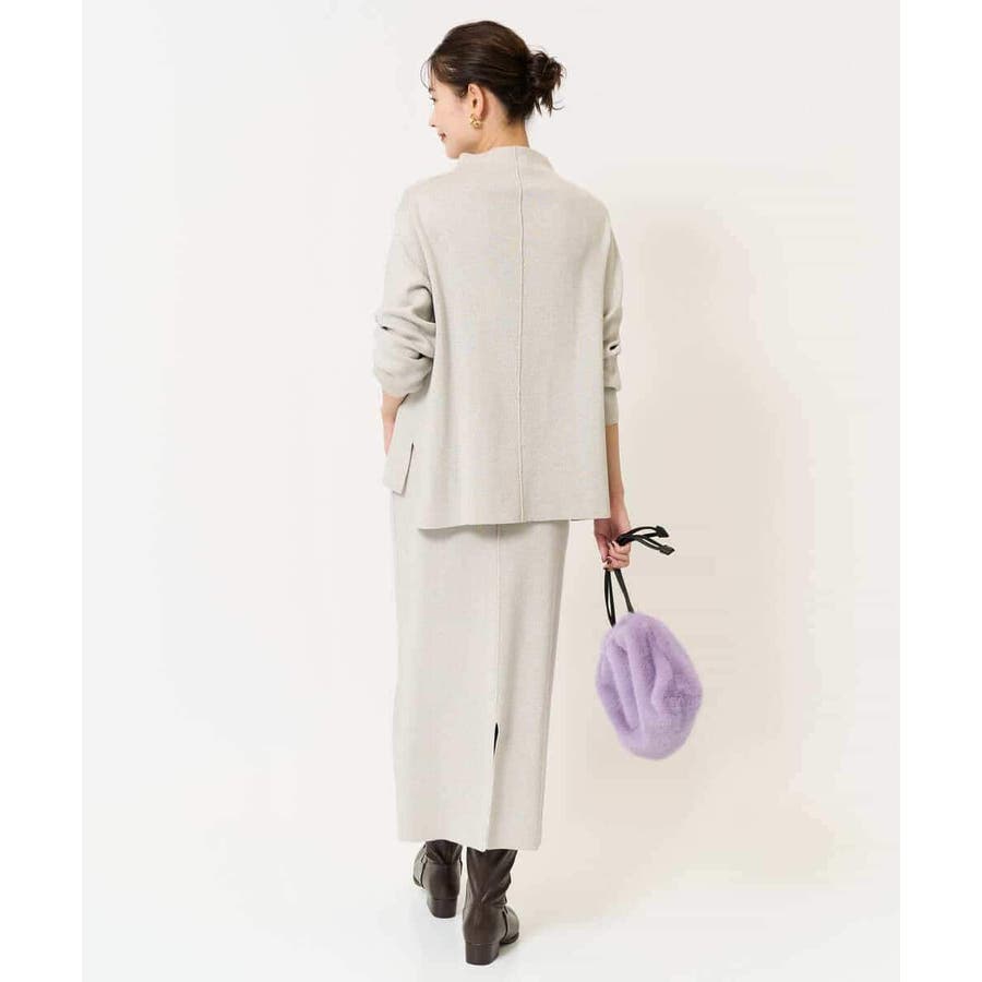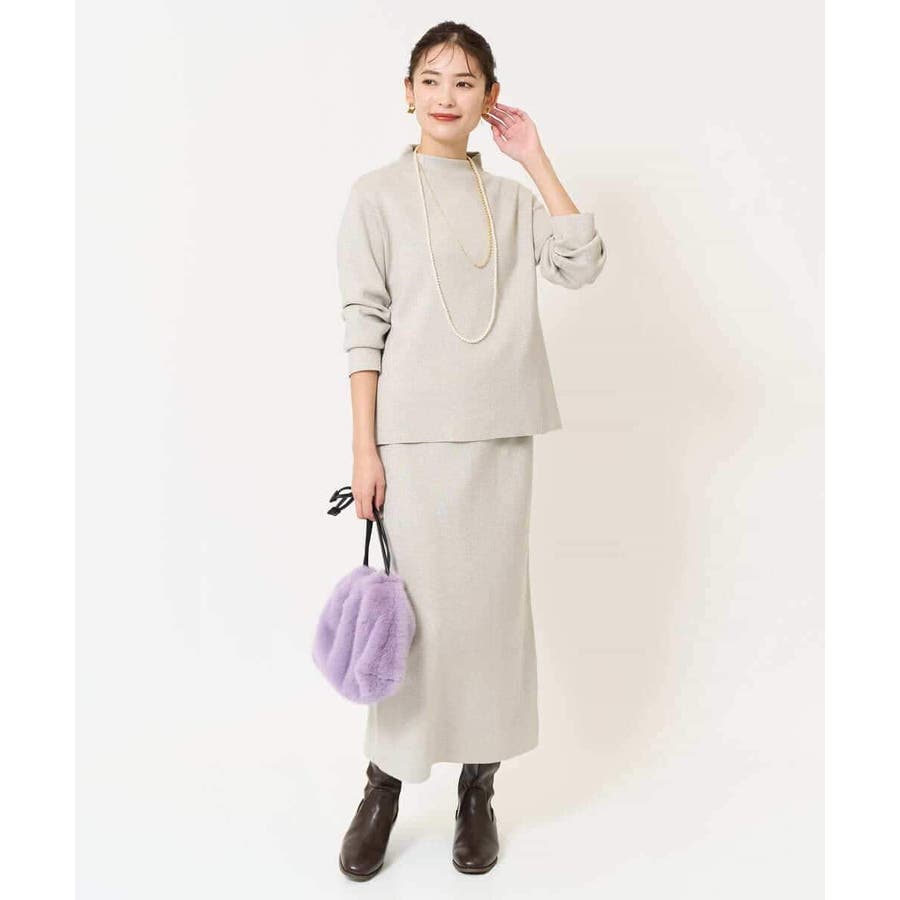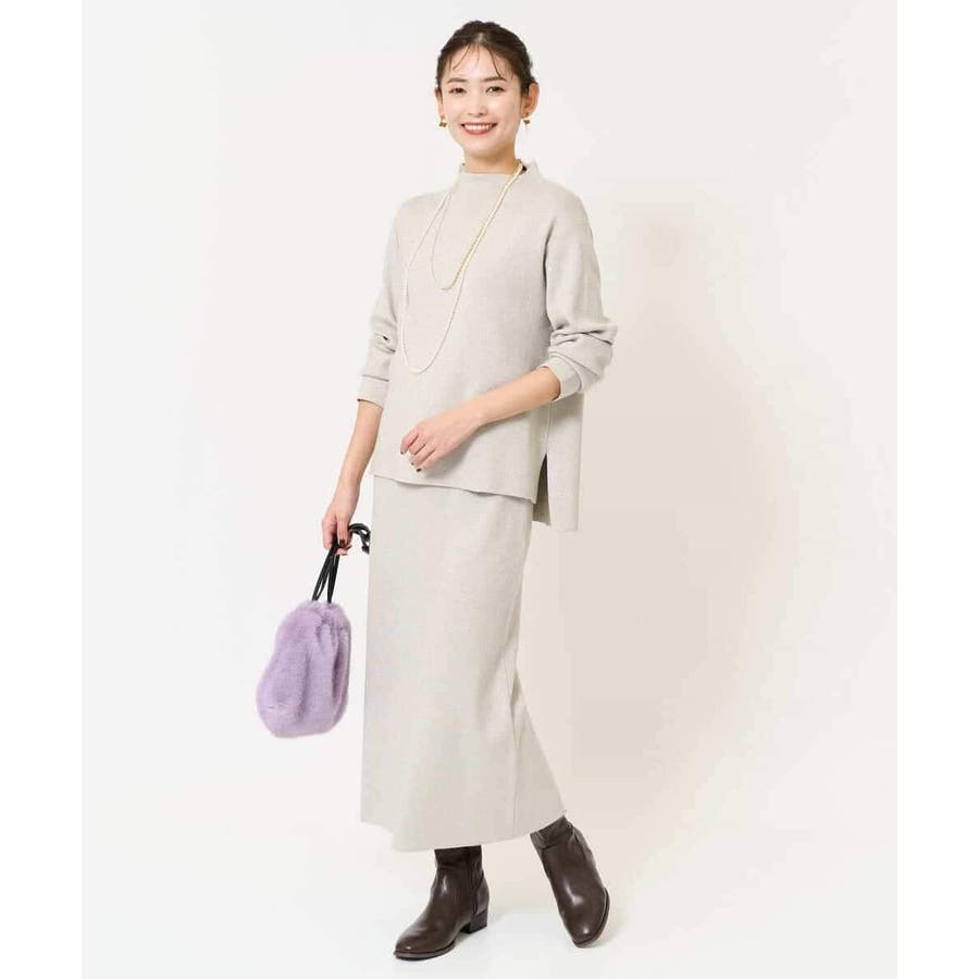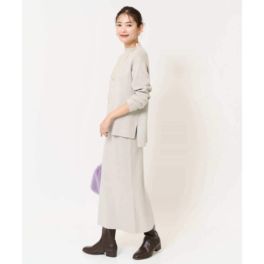 同素材ののニットトップスとのセットアップ着用がおすすめ
