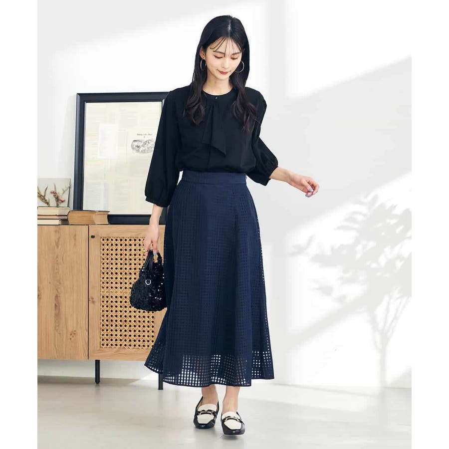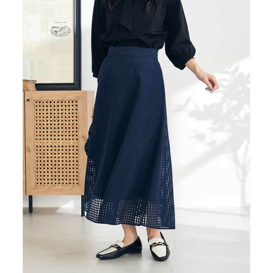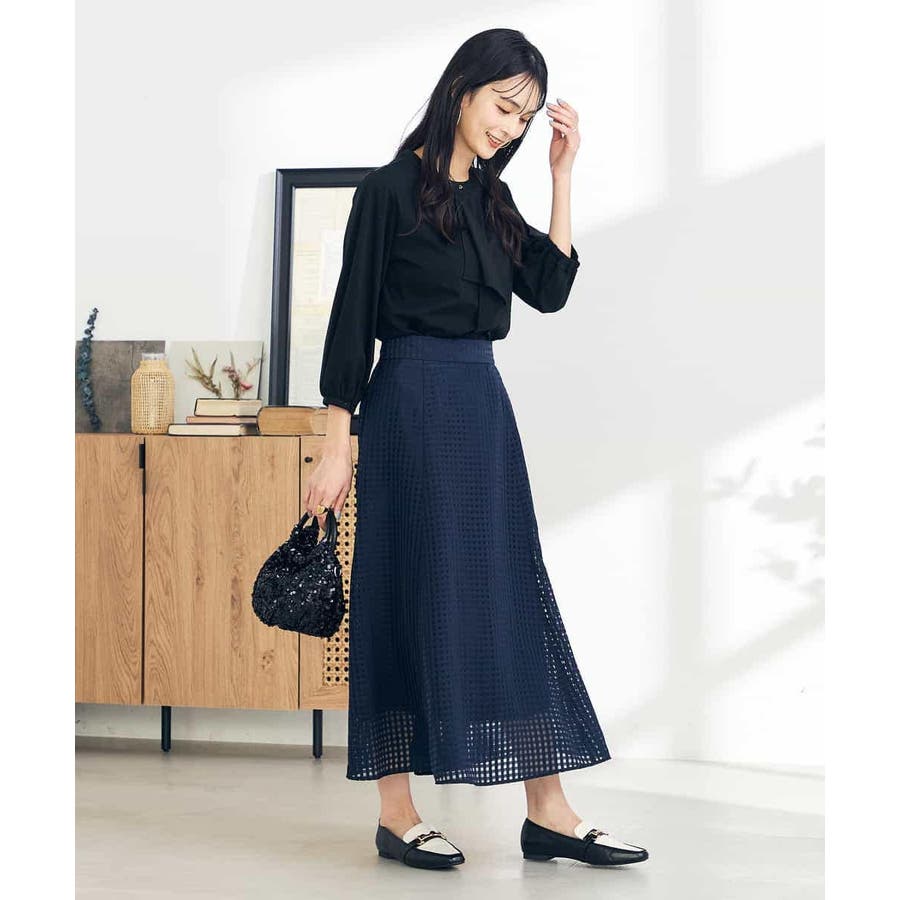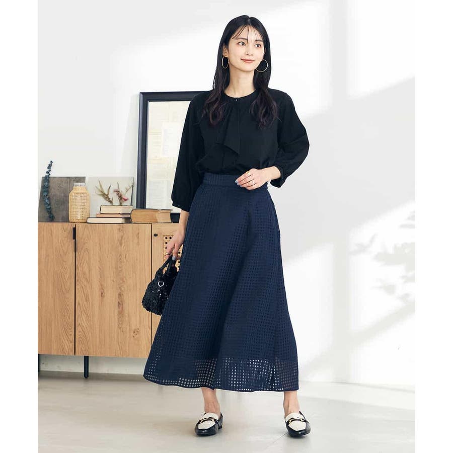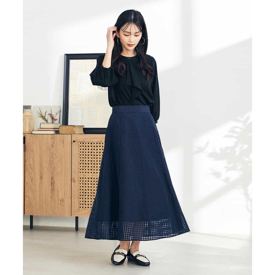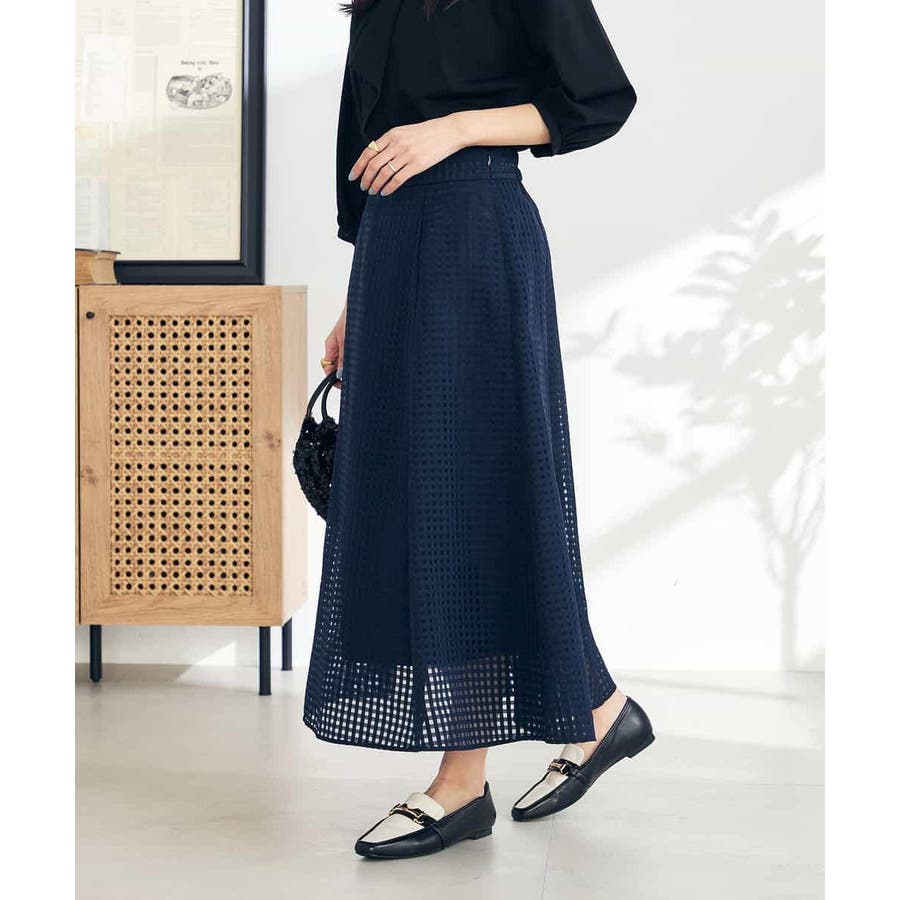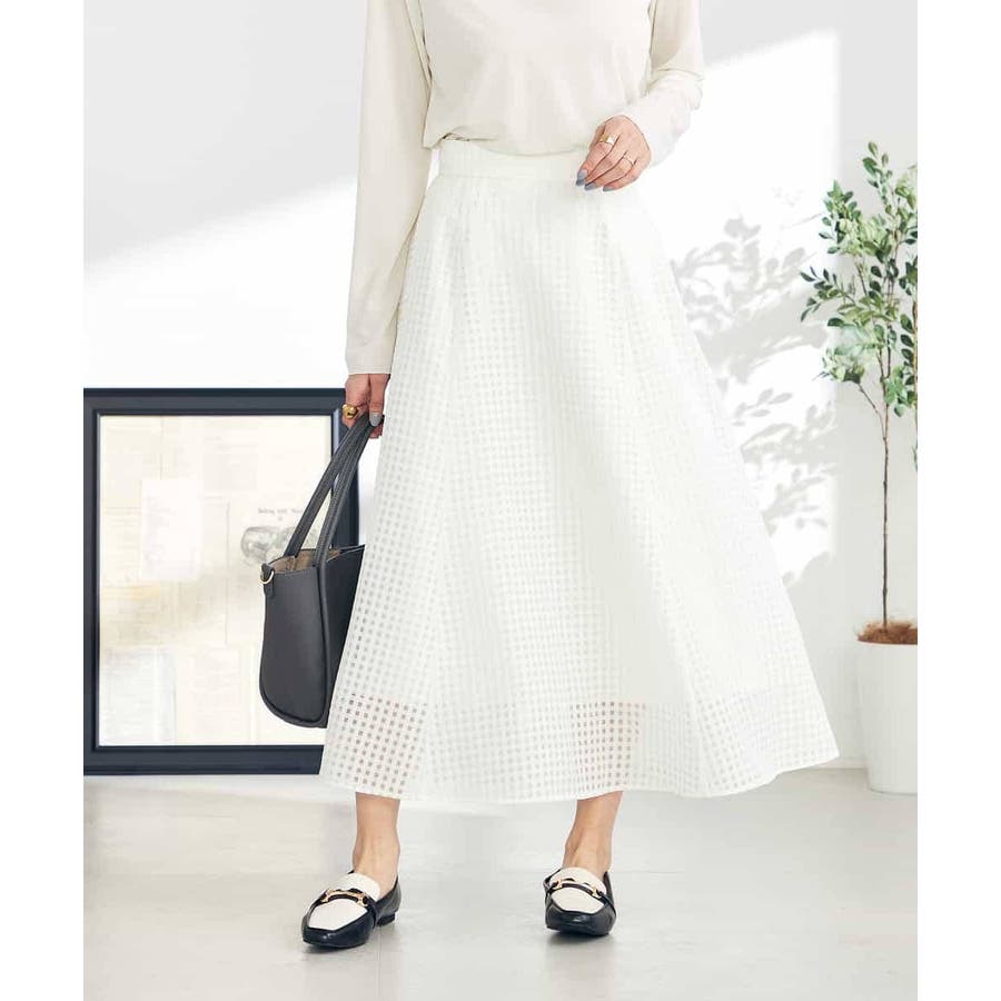 ・軽やかなフレアラインに、シアーチェックがトレンド感抜群