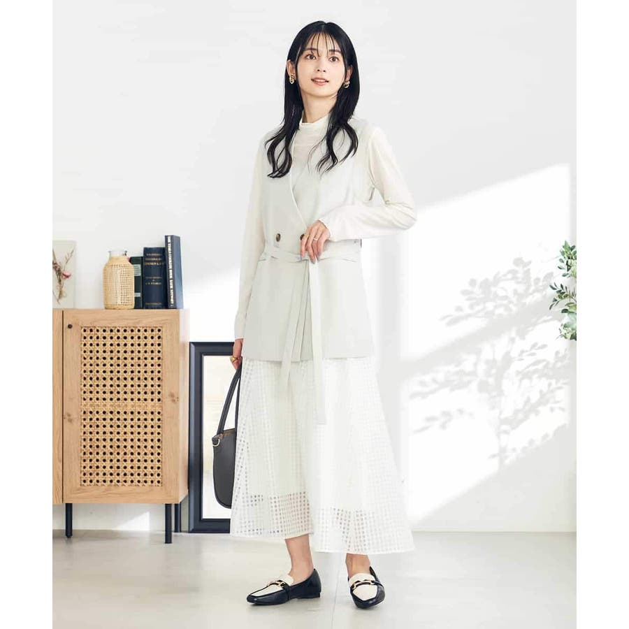 リブニットやブラウスと合わせたフェミニンスタイルまで