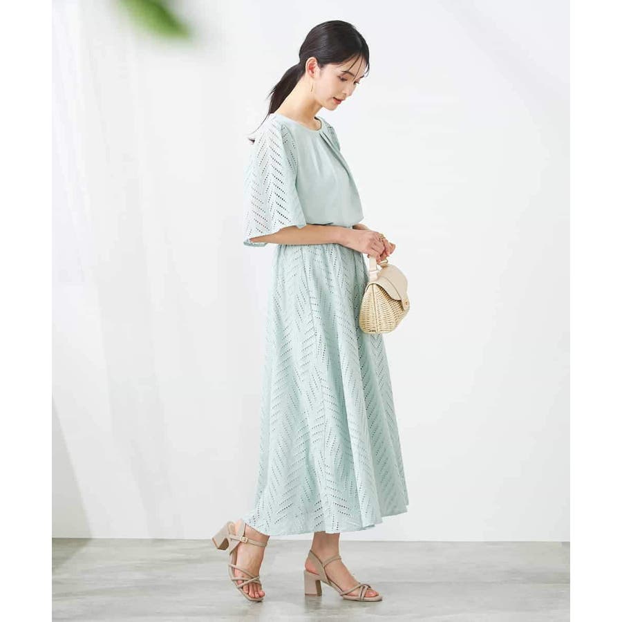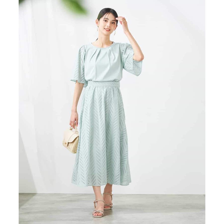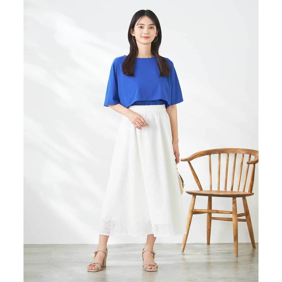 リーフレースが着映えるので、シンプルなTシャツ合わせも爽やかに決まります。