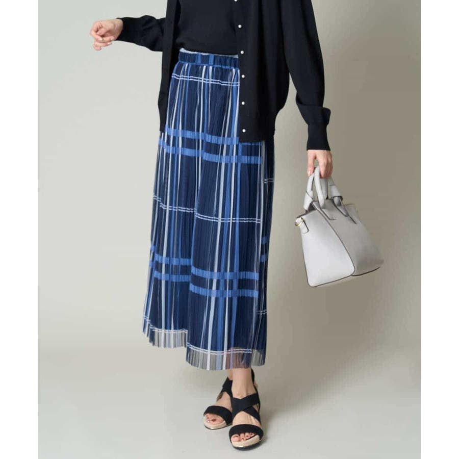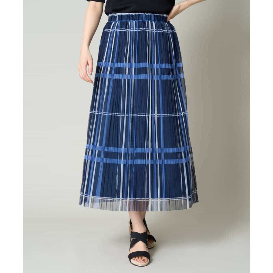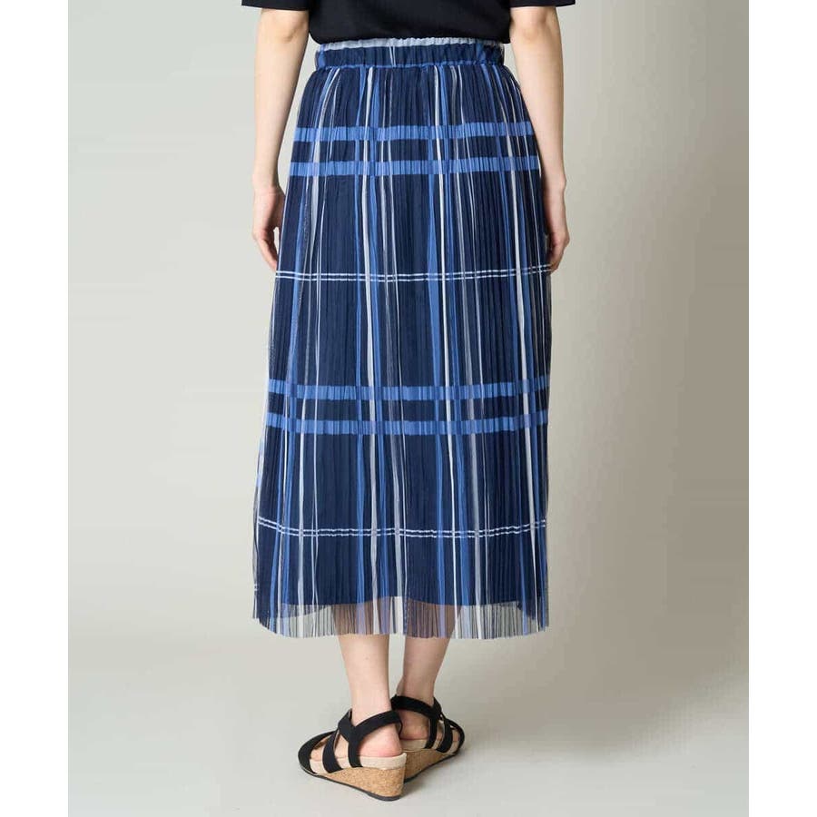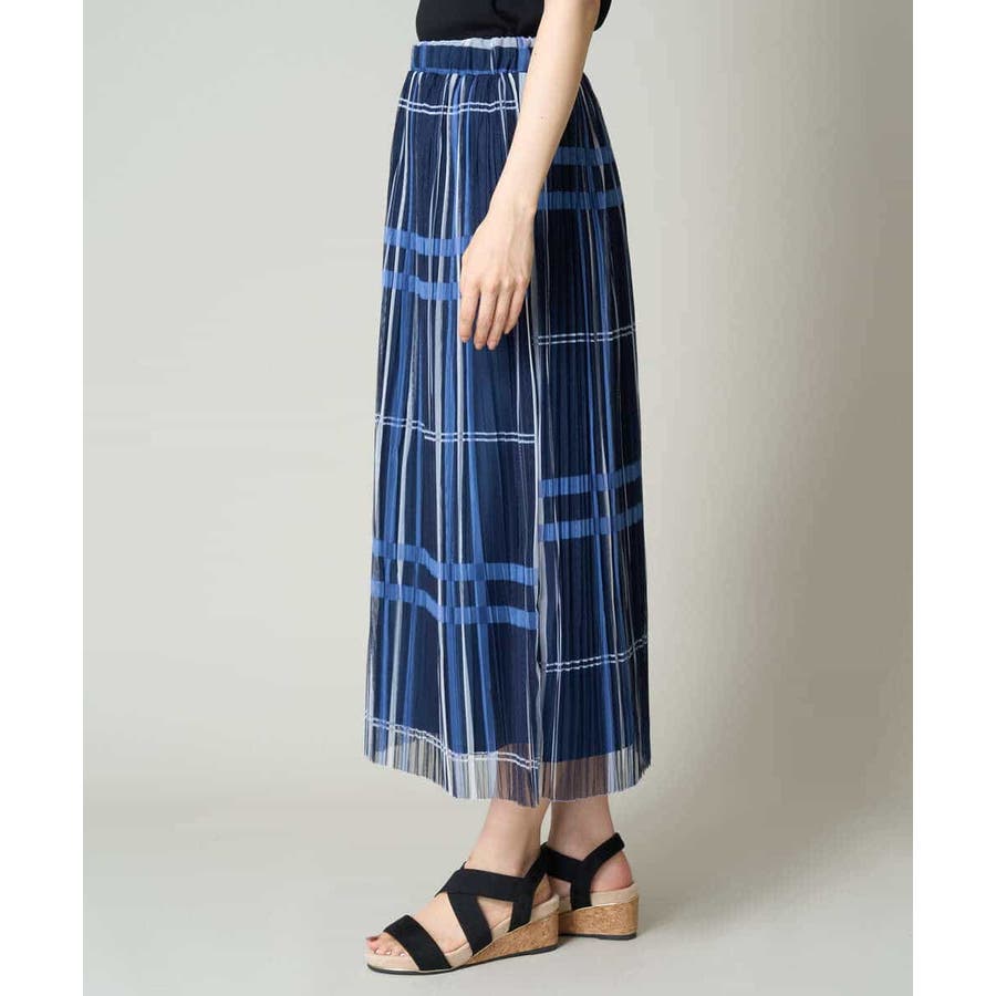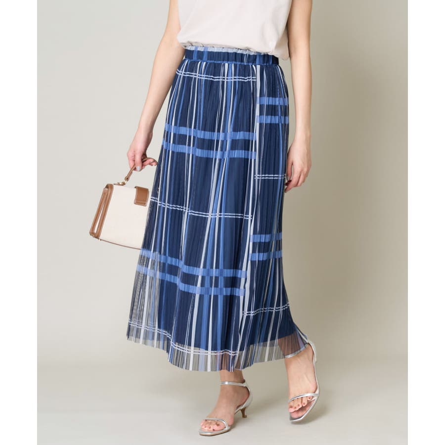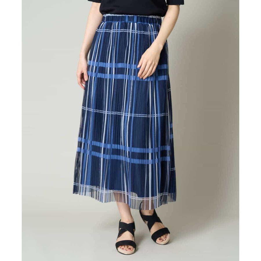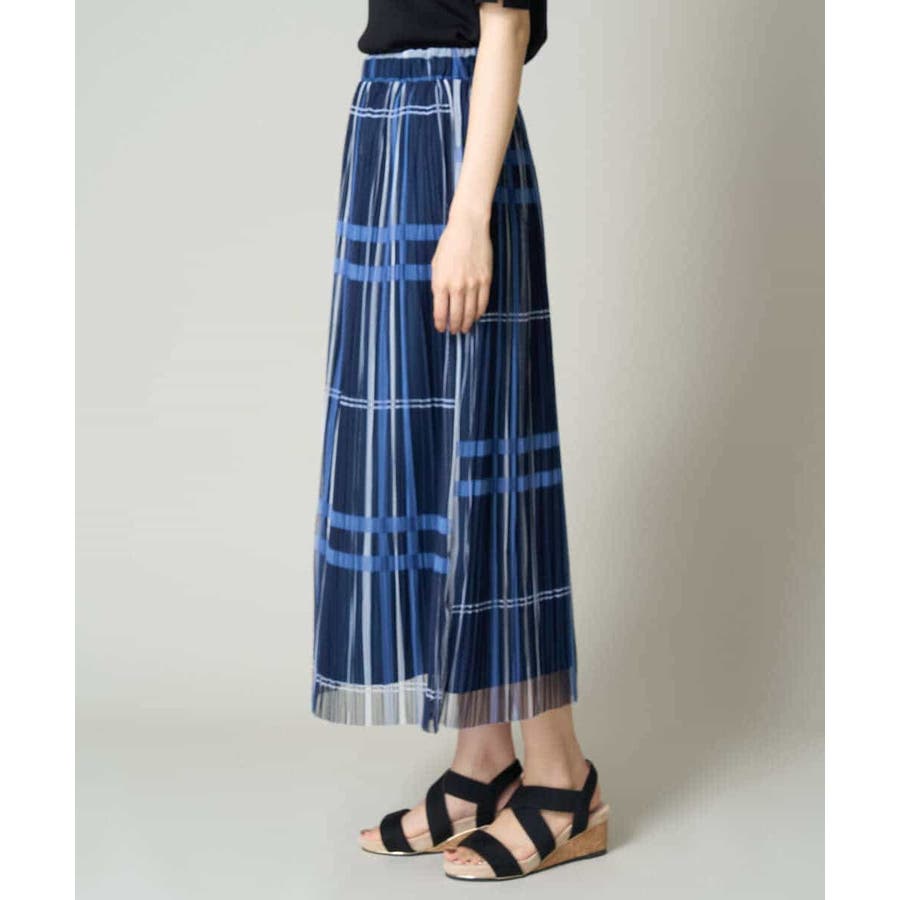 ・チュール地にチェック柄をプリントしたプリーツスカート