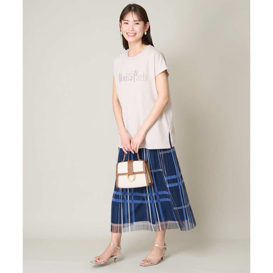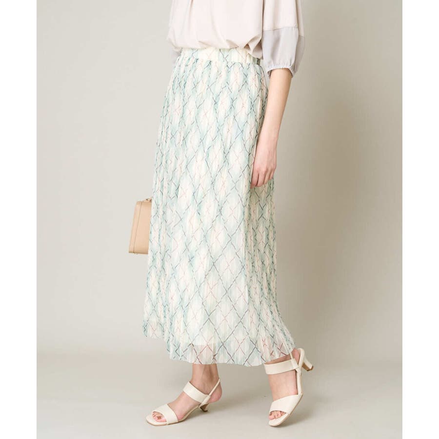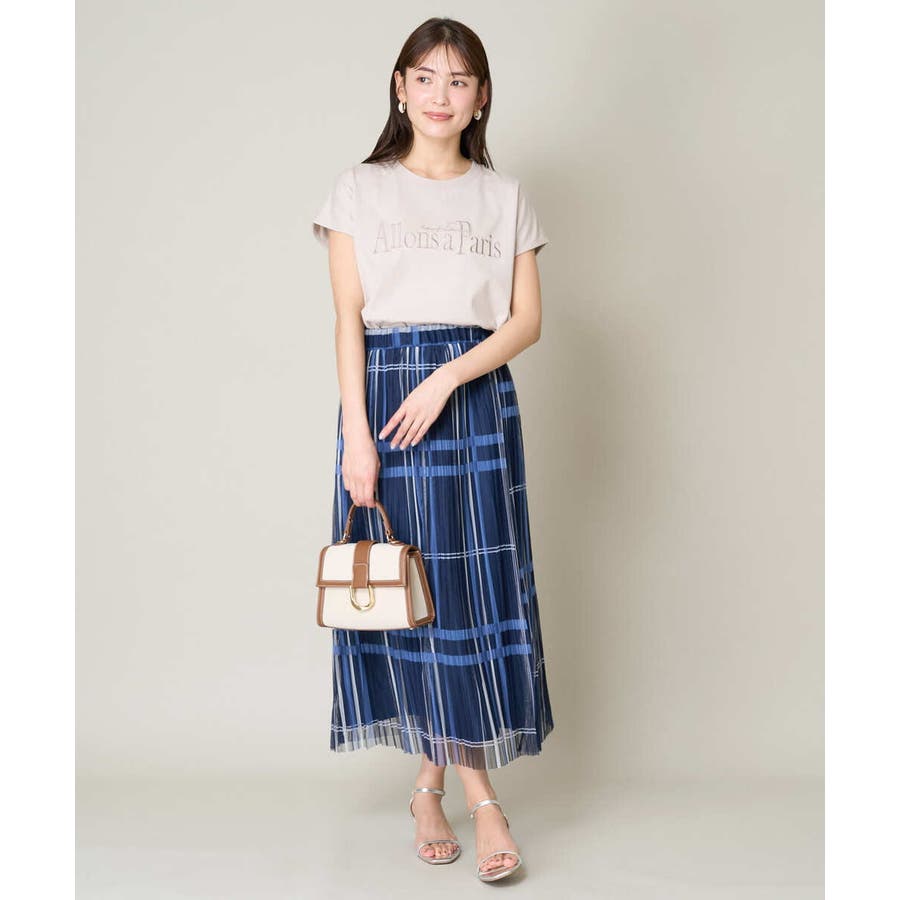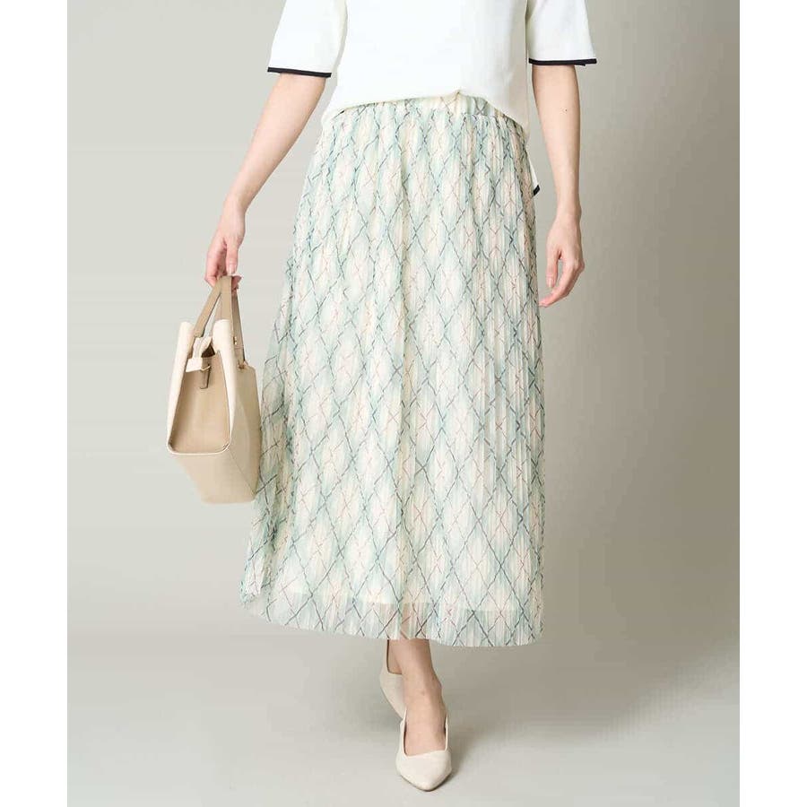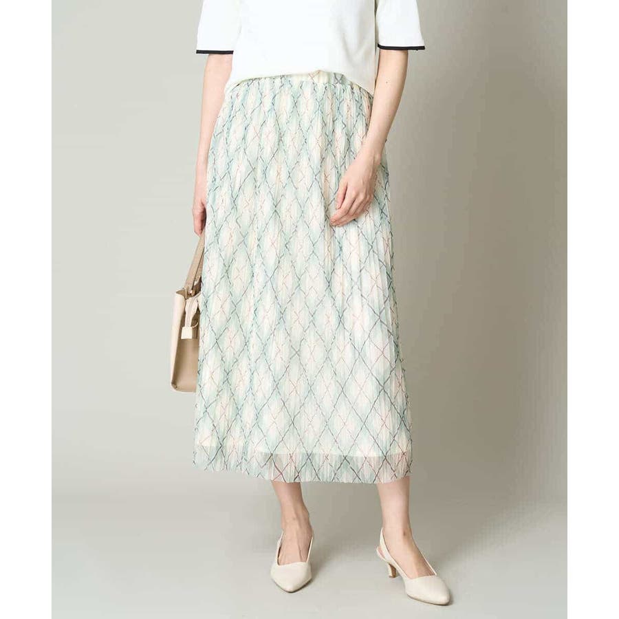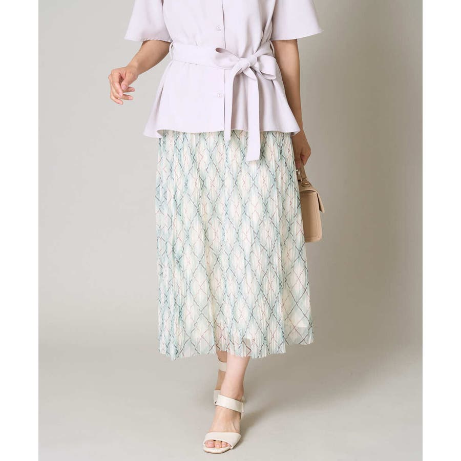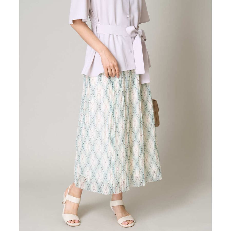 ・チュール地にチェック柄をプリントしたプリーツスカート