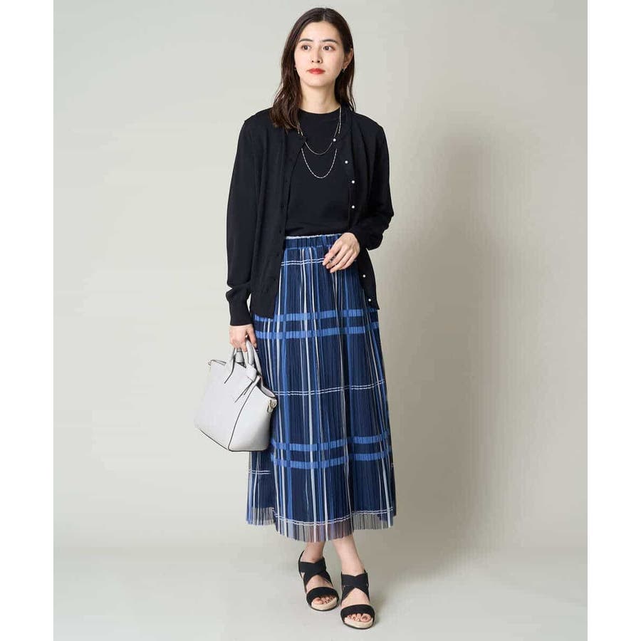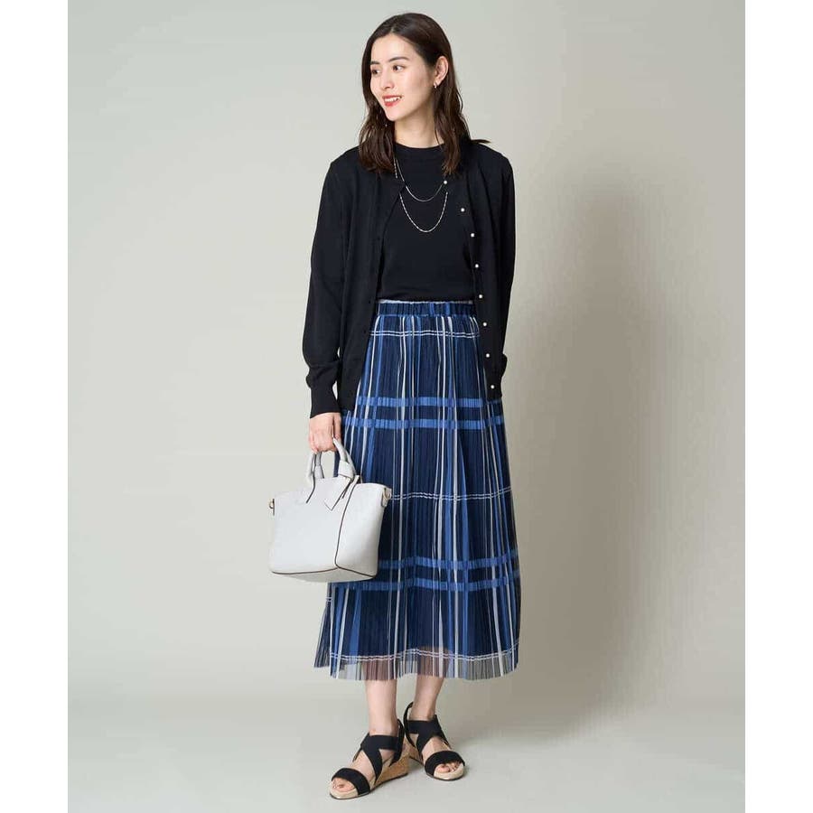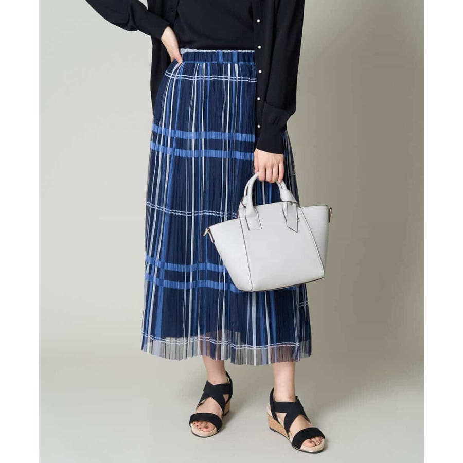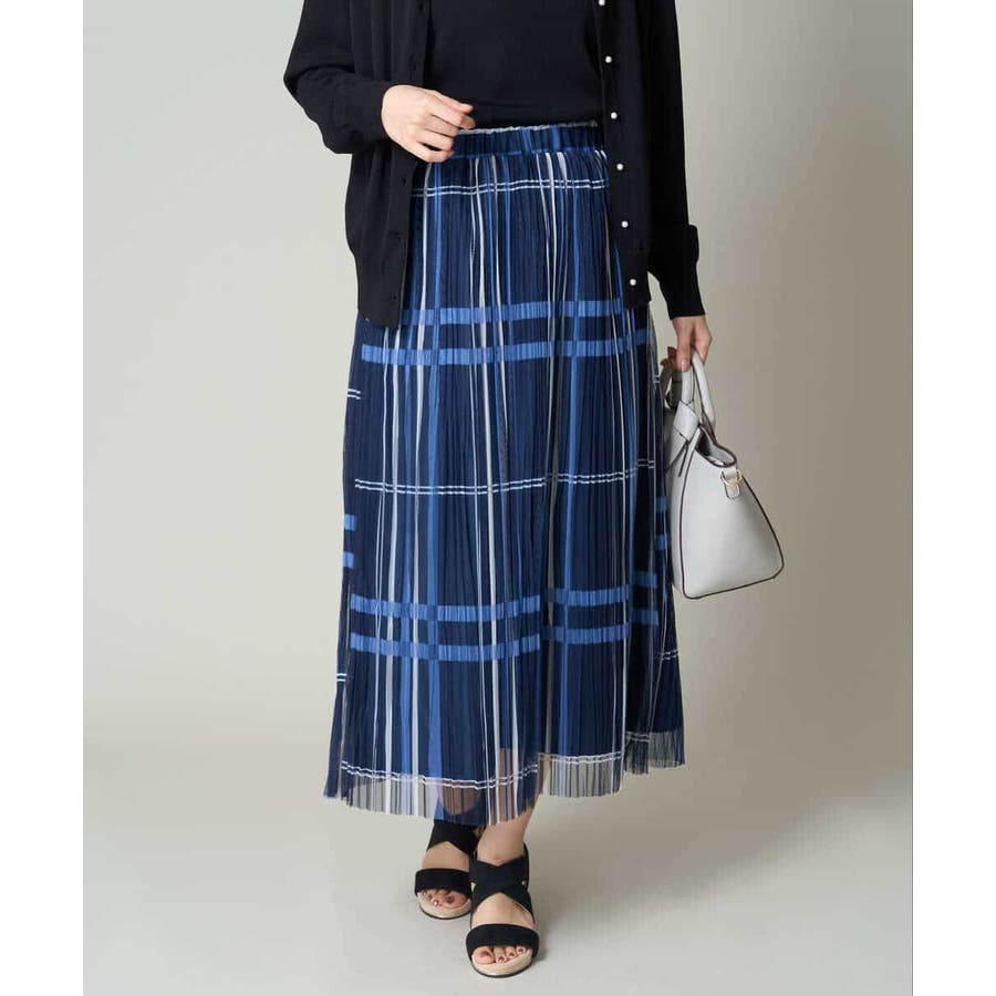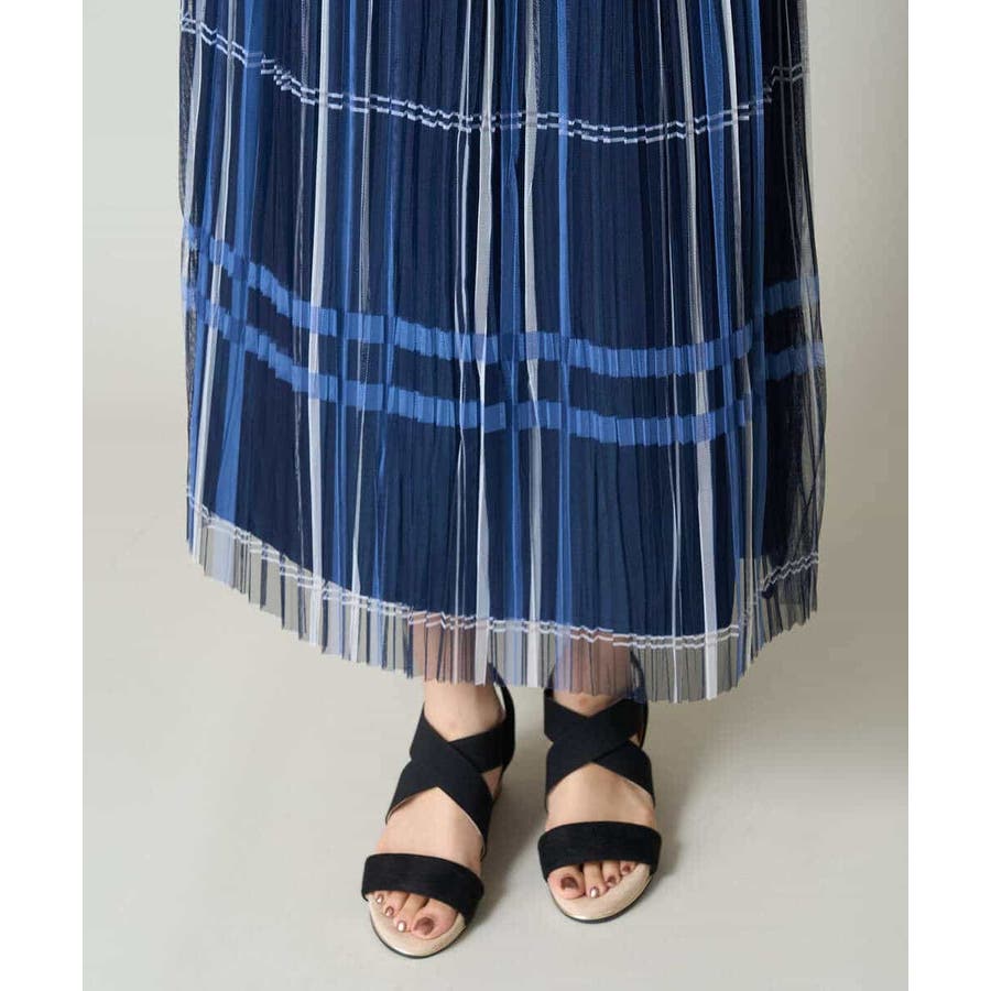 着るだけで華やかな印象のチェック柄チュールスカートは