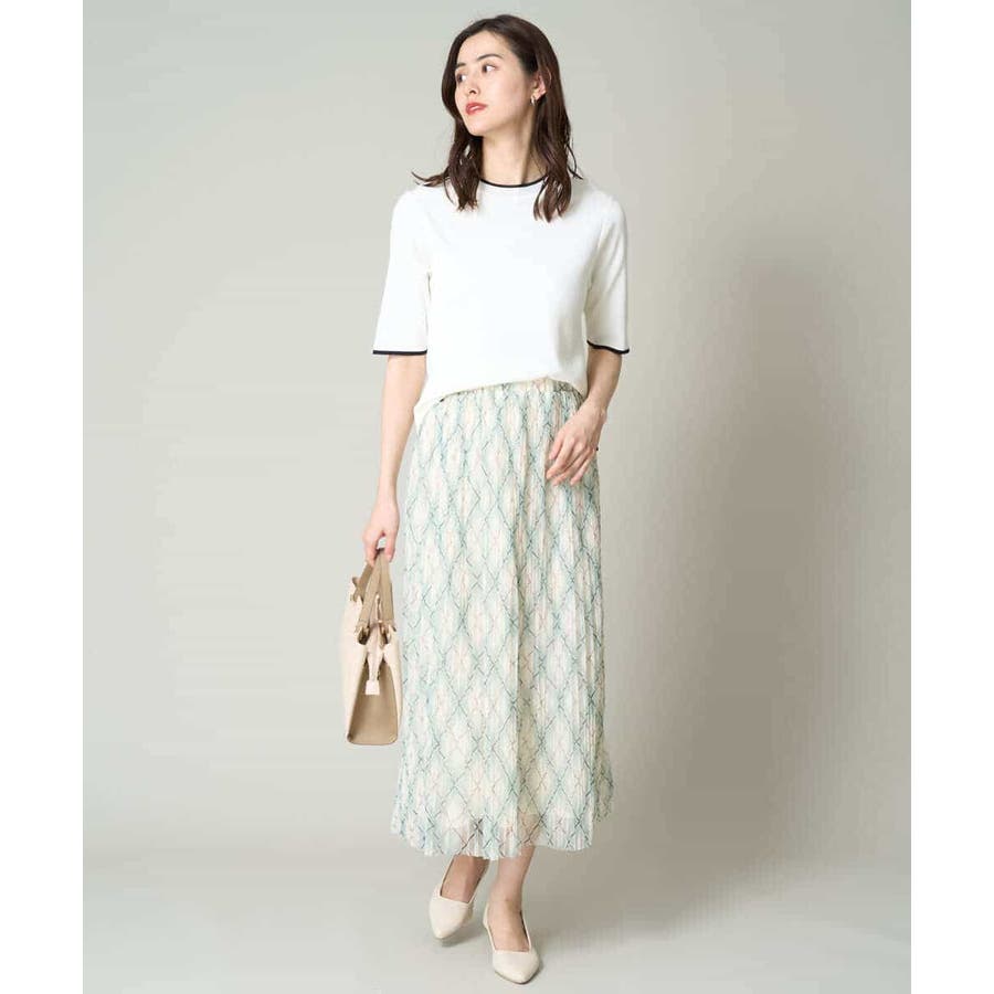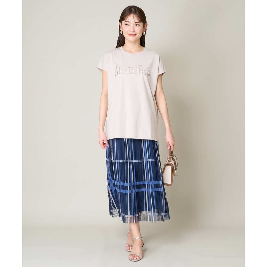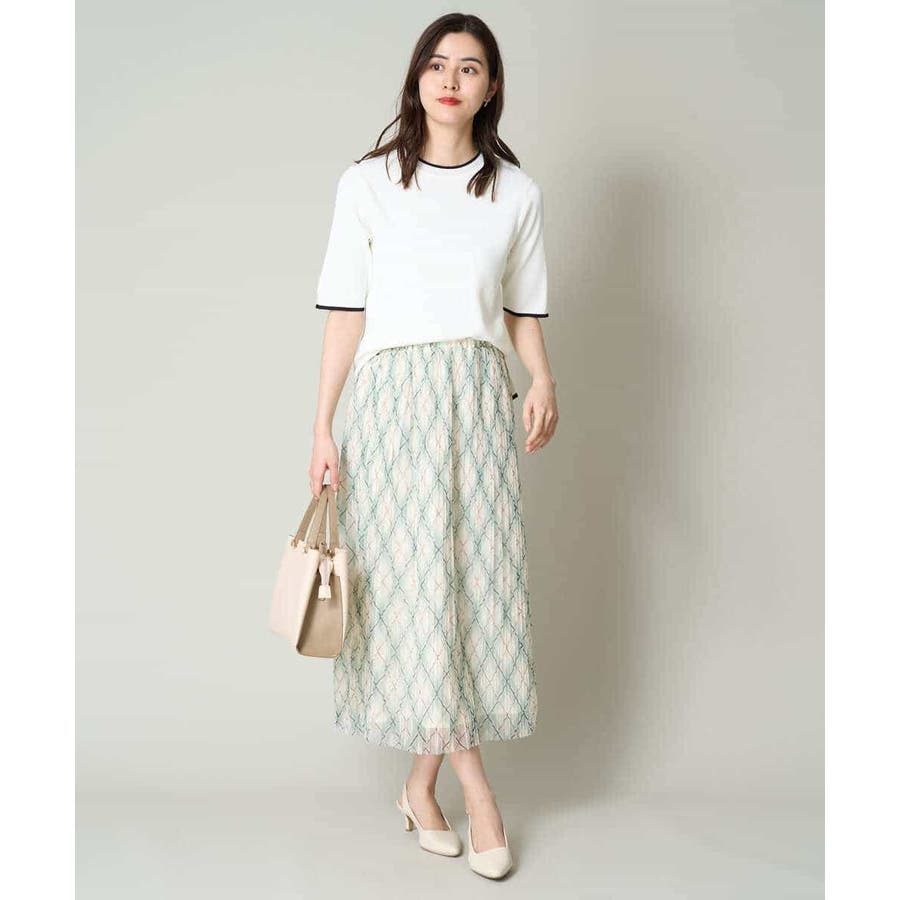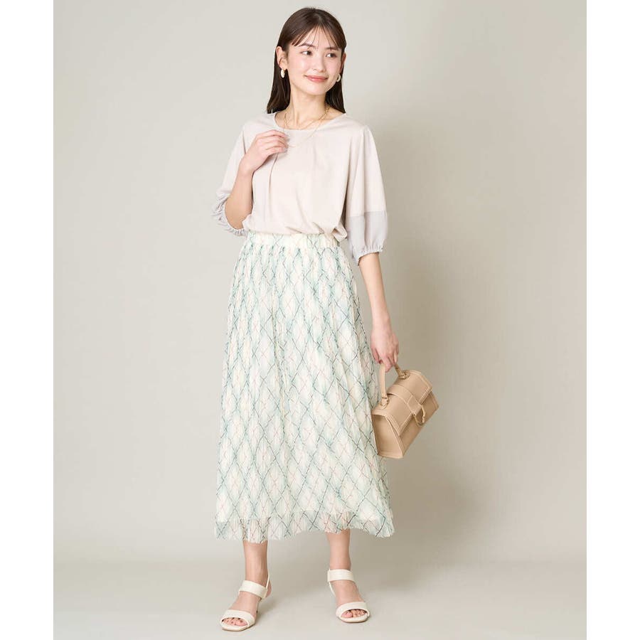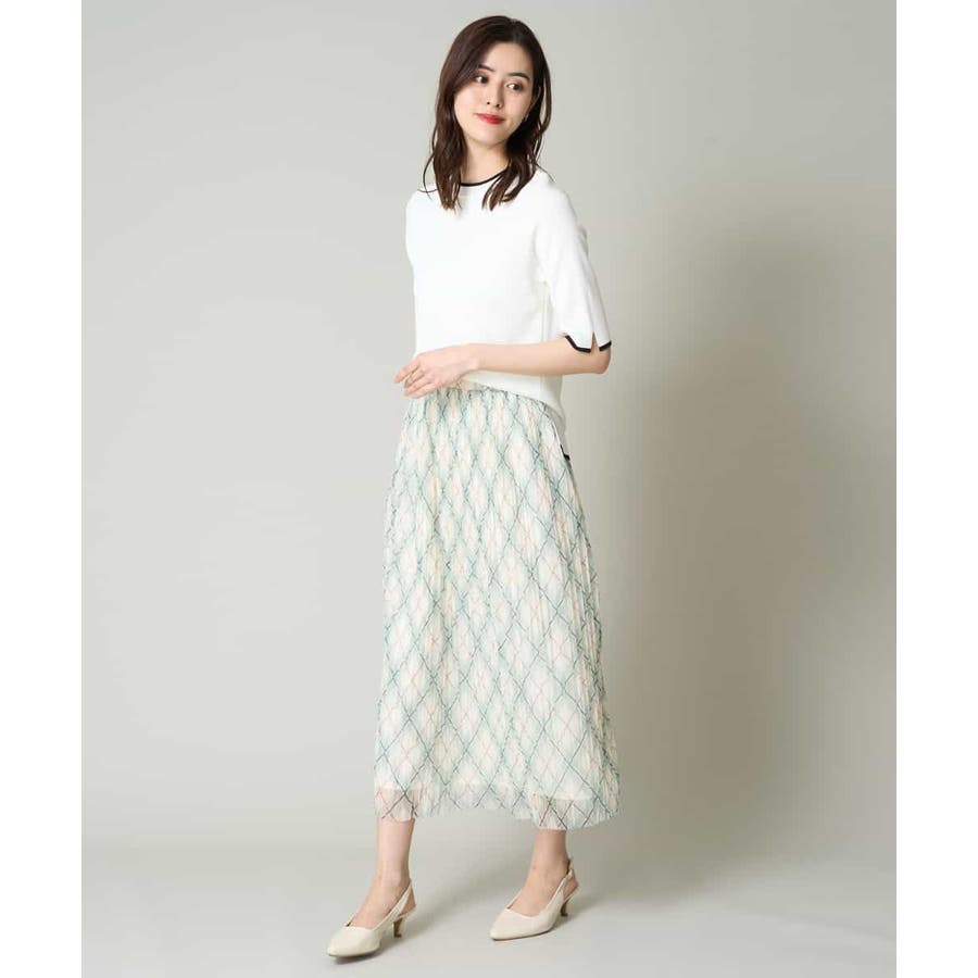 着るだけで華やかな印象のチェック柄チュールスカートは