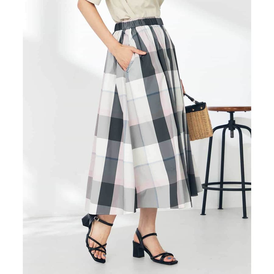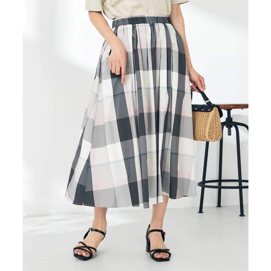 【接触冷感/洗える】ビックチェックタフタスカート