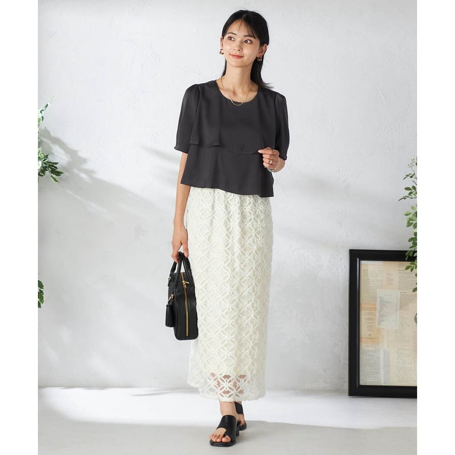 ・レースはテープ状の生地で花柄を刺繍し特別感ある一枚