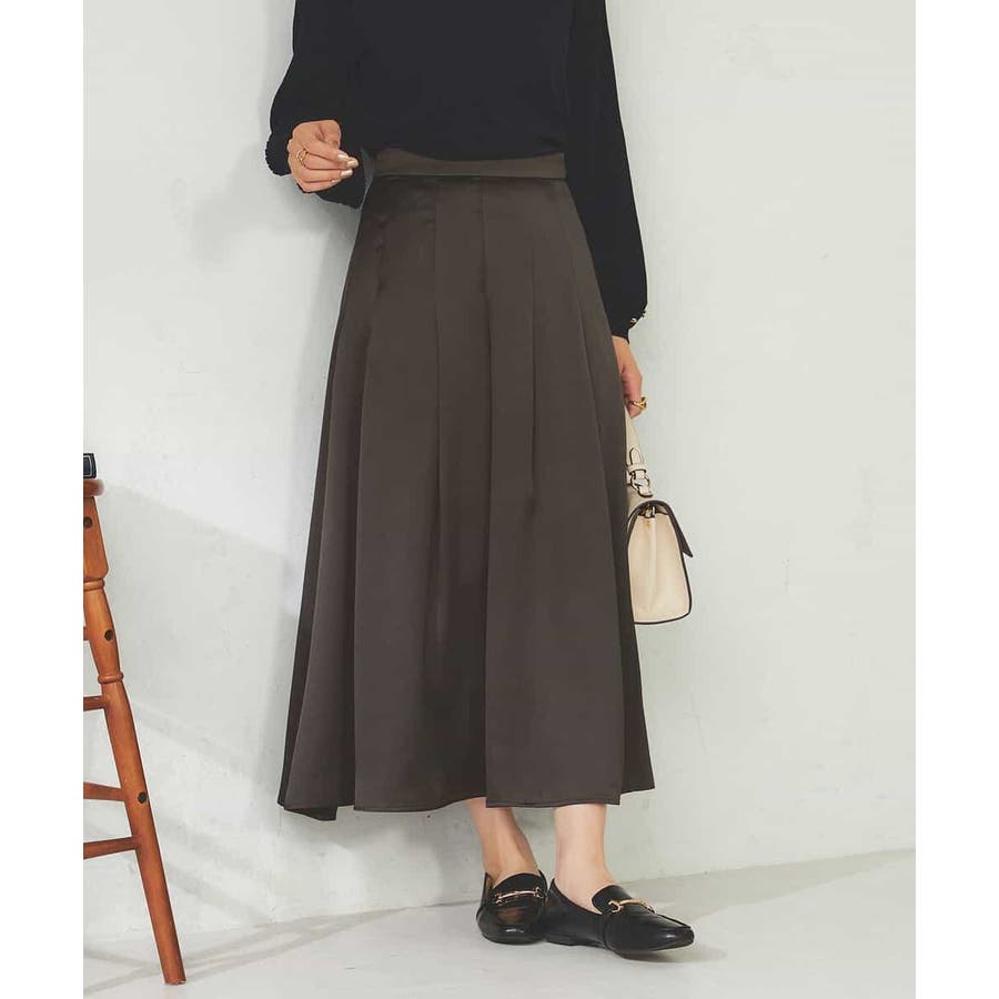 【マシンウォッシャブル】タックフレアサテンスカート