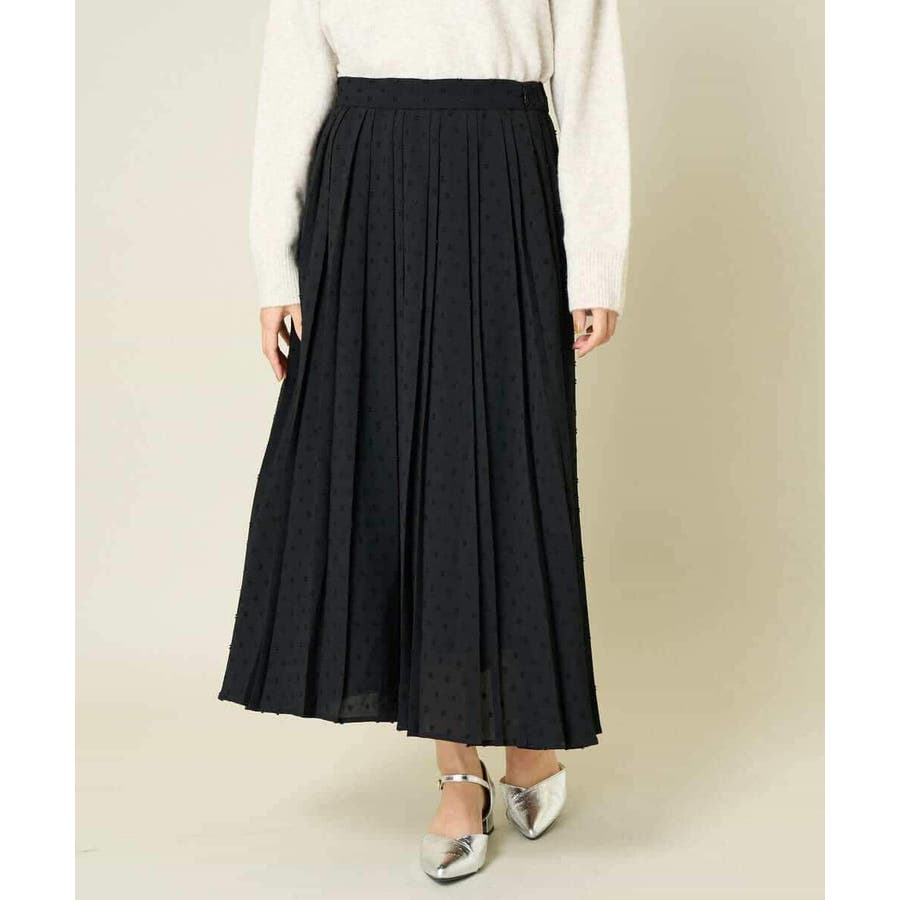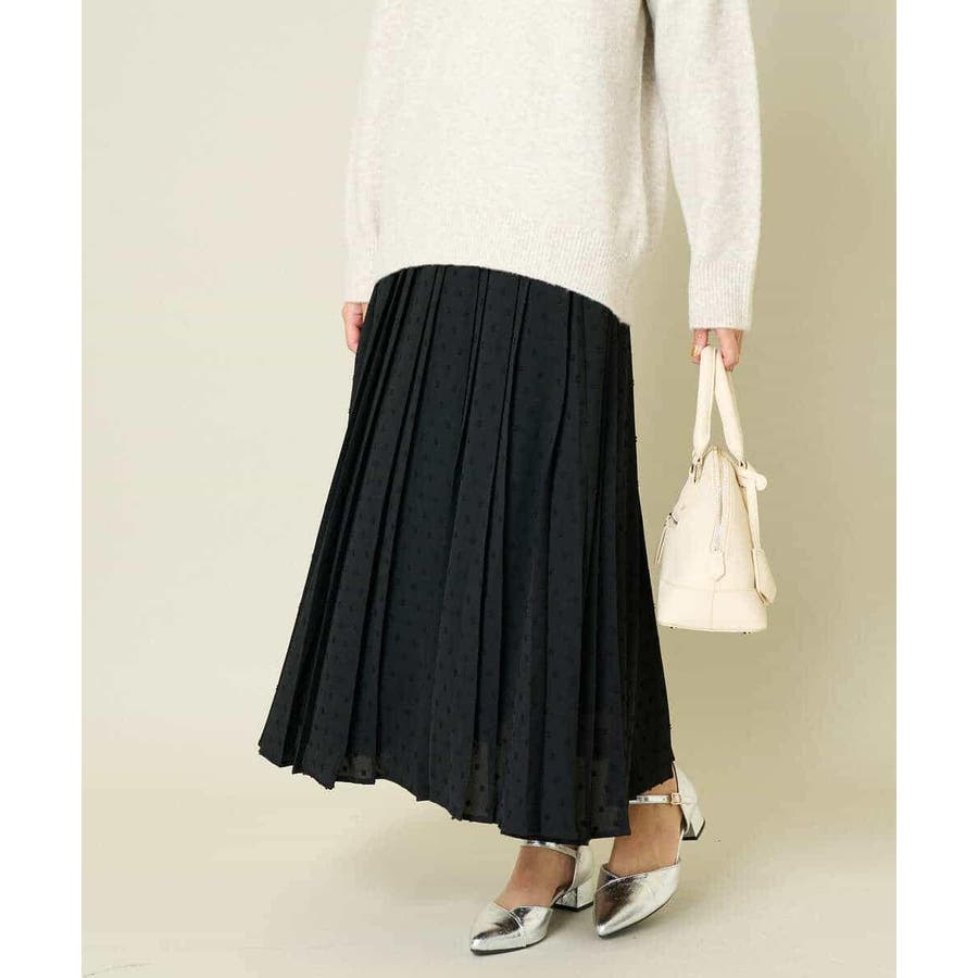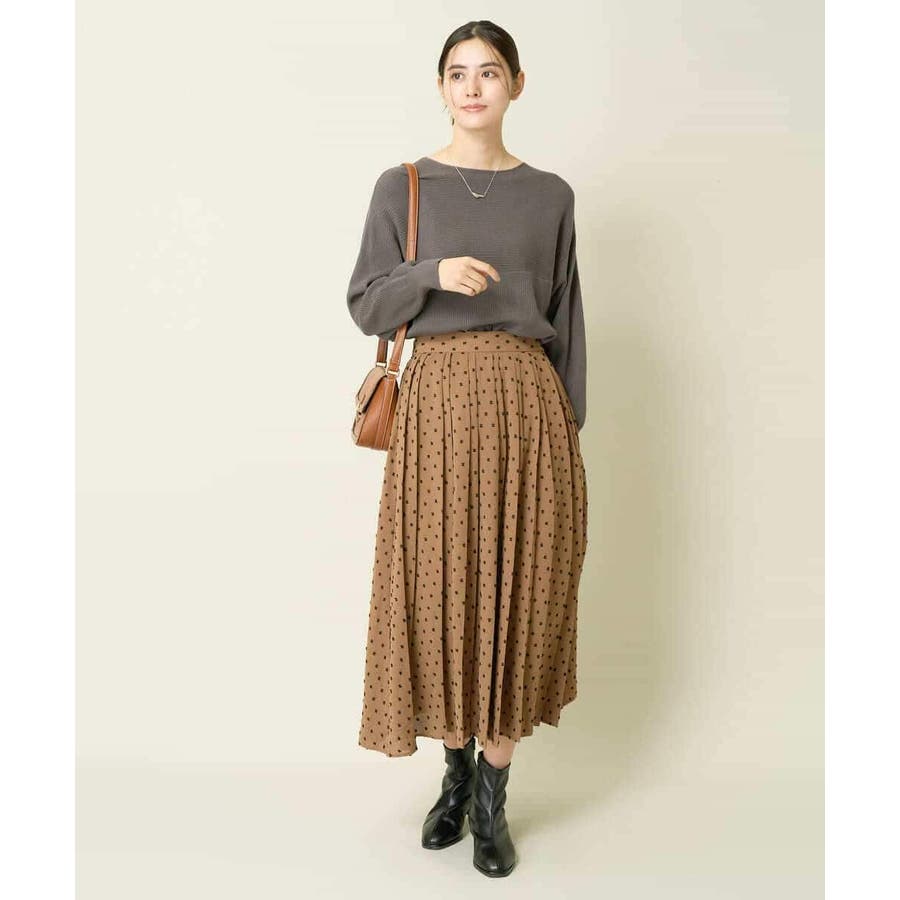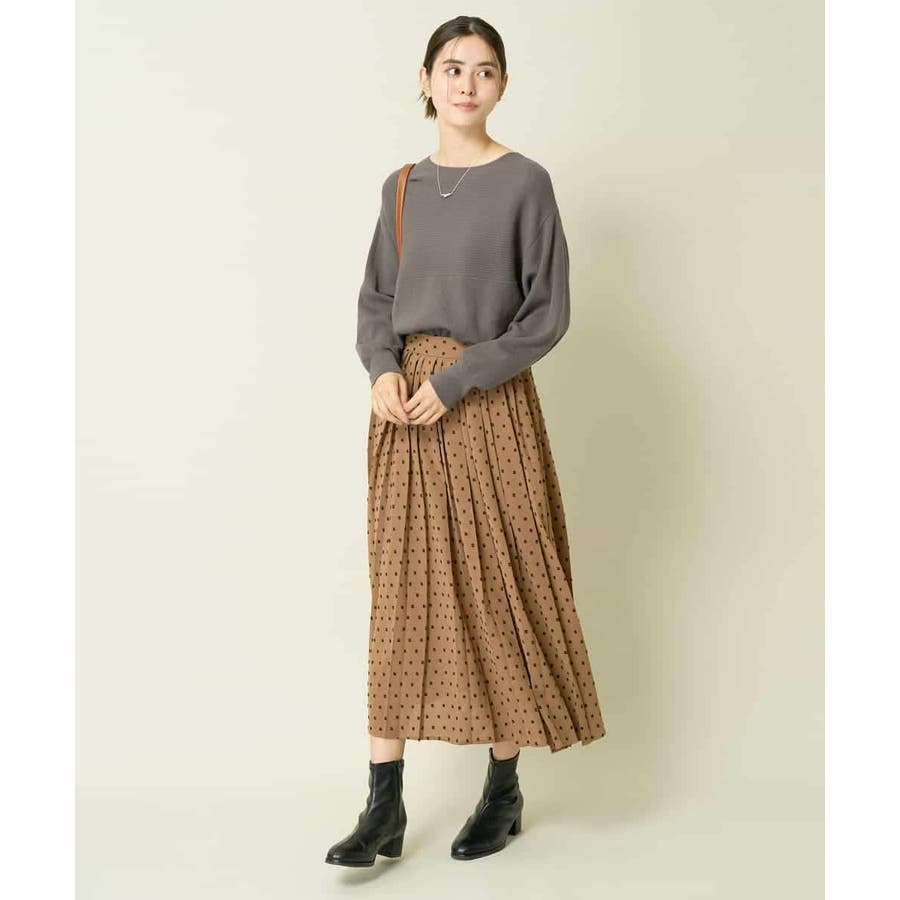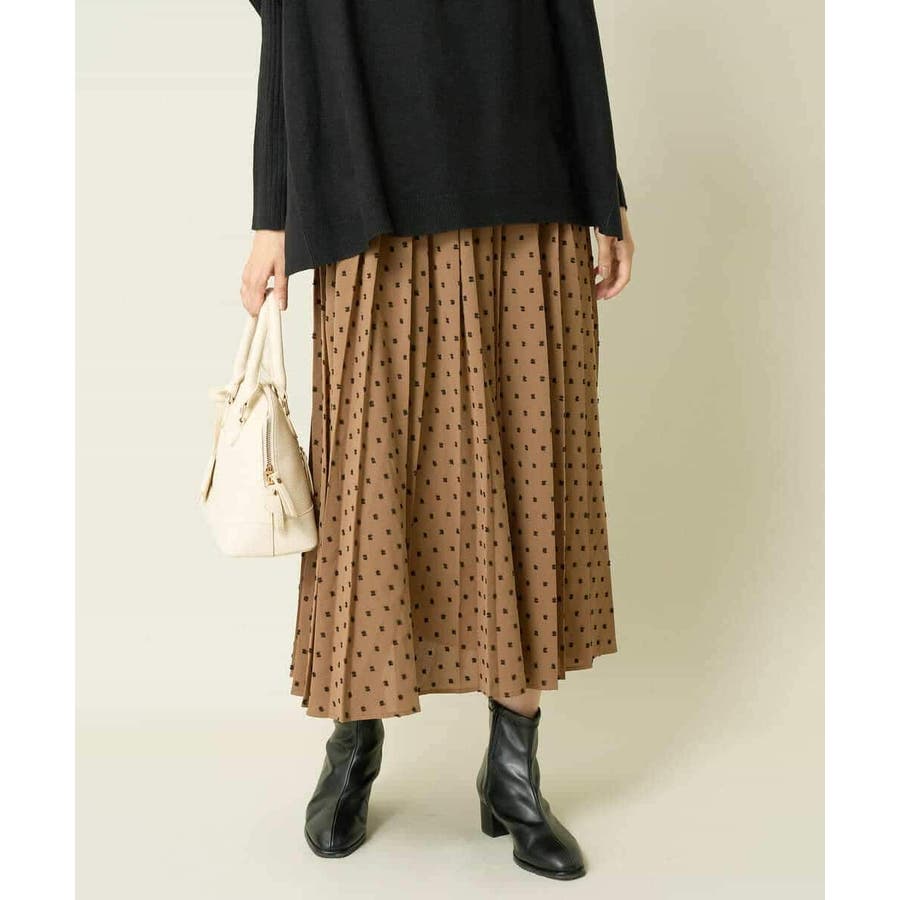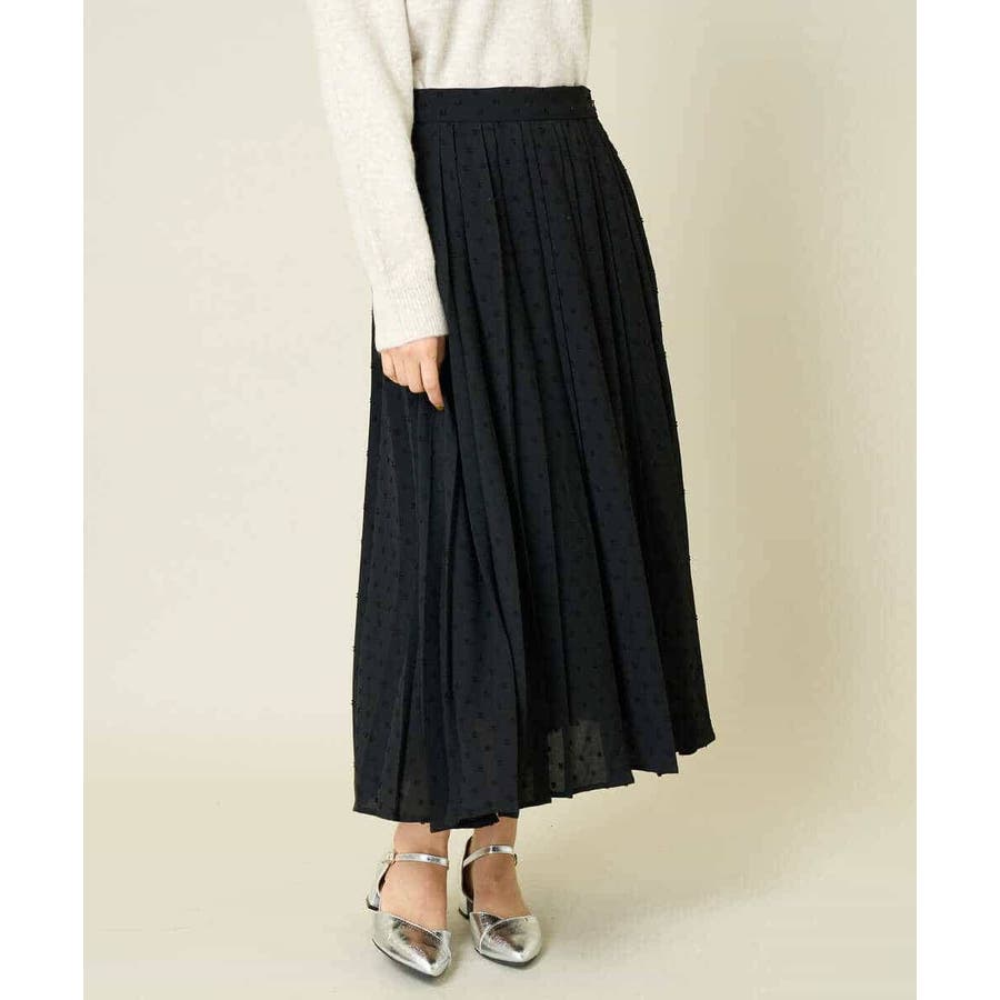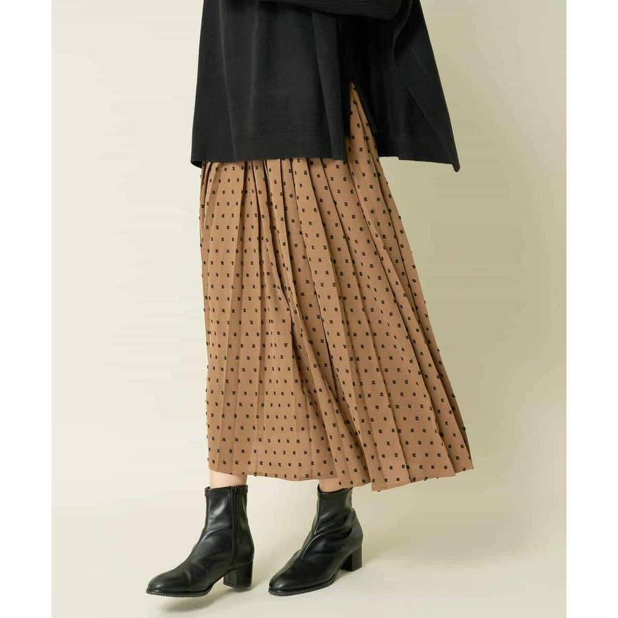 ・広がりすぎないボックスタックプリーツが特徴のドットスカート