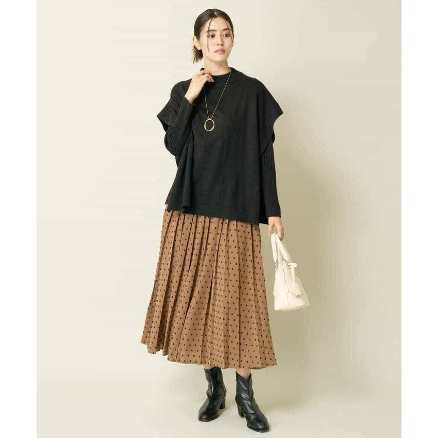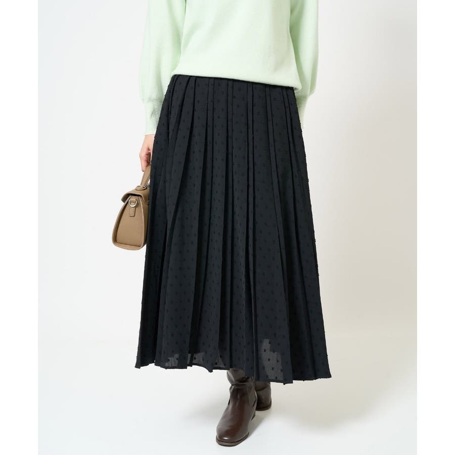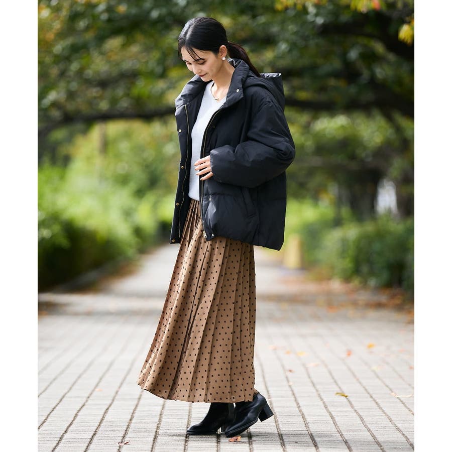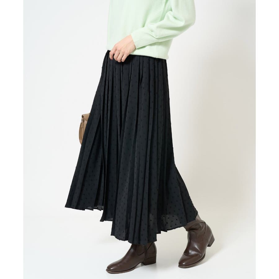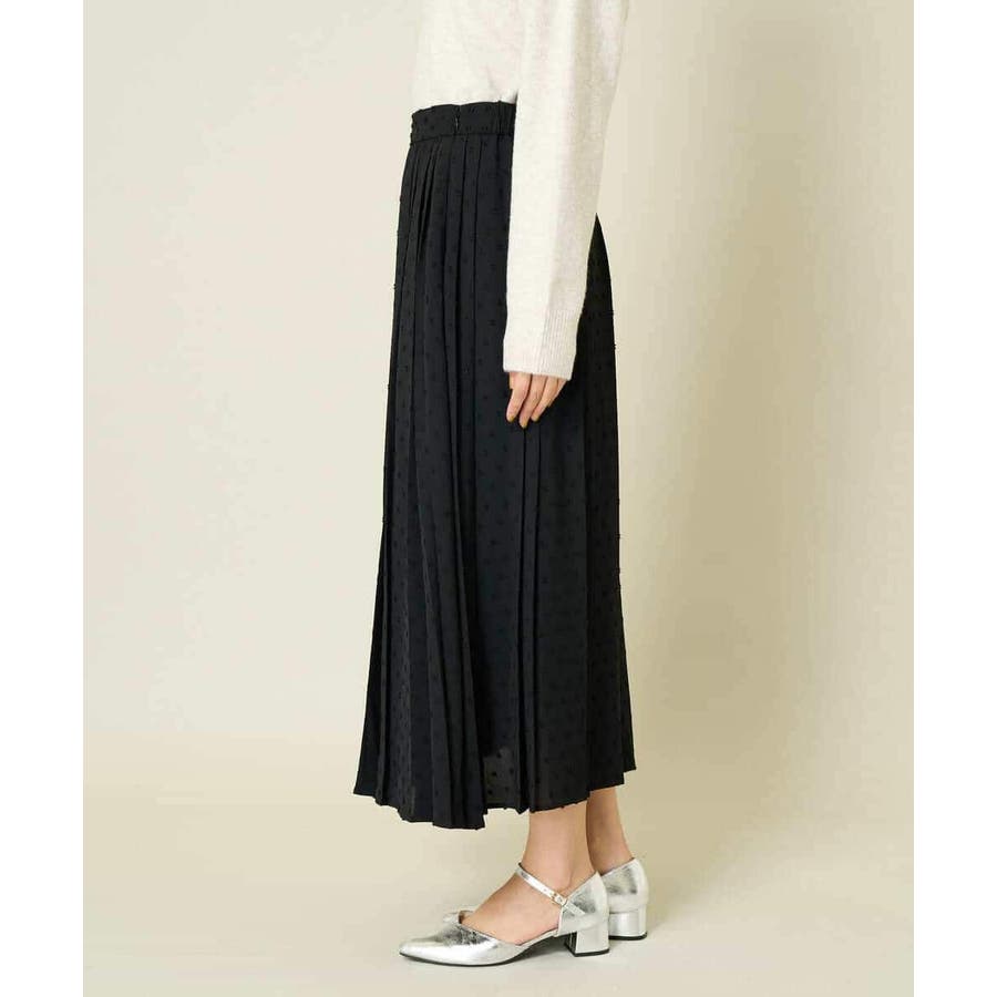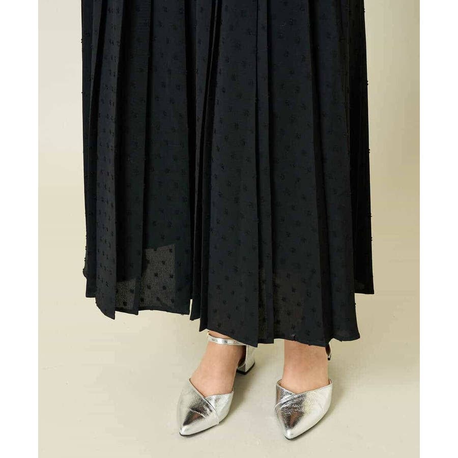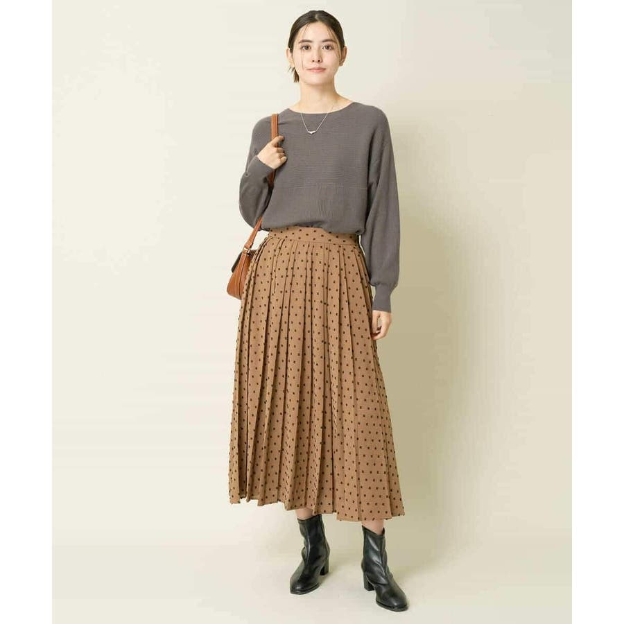・広がりすぎないボックスタックプリーツが特徴のドットスカート