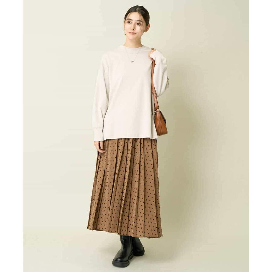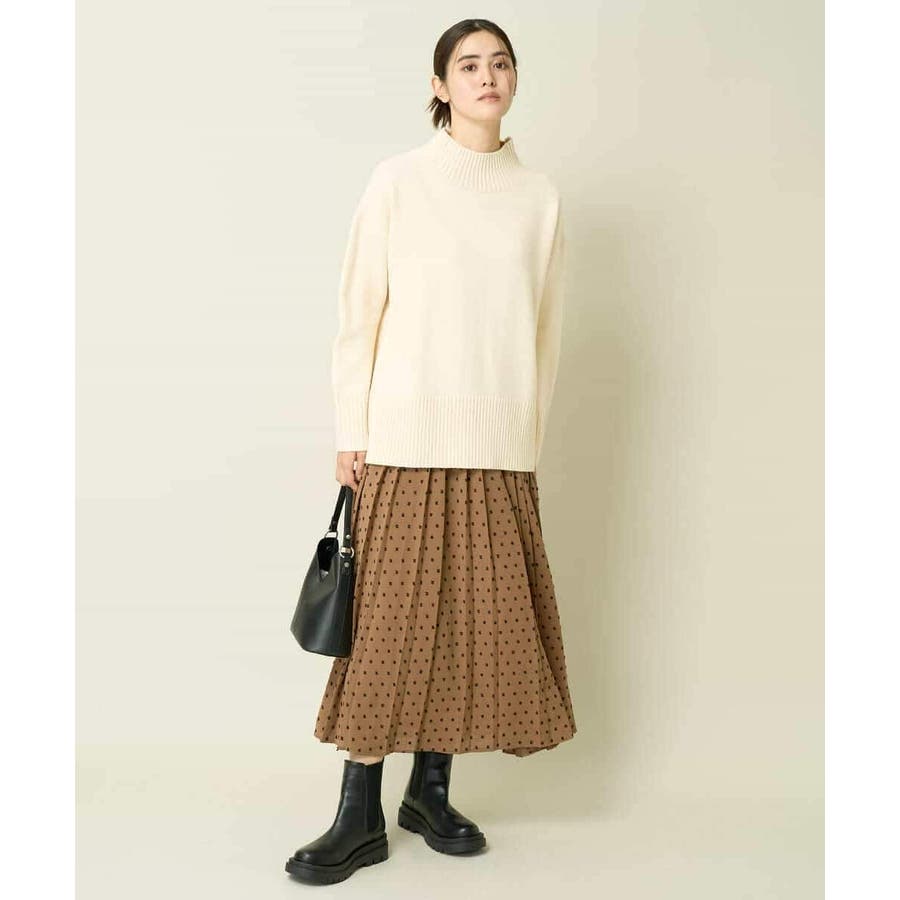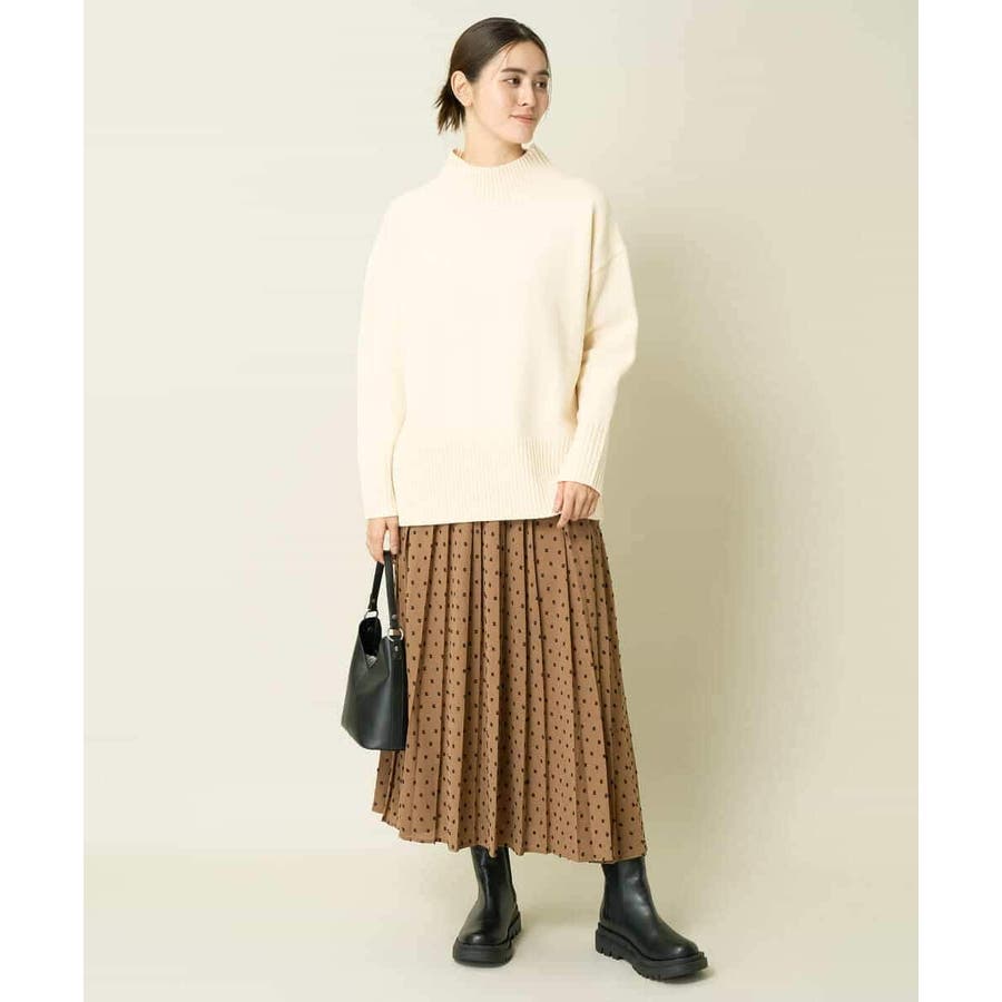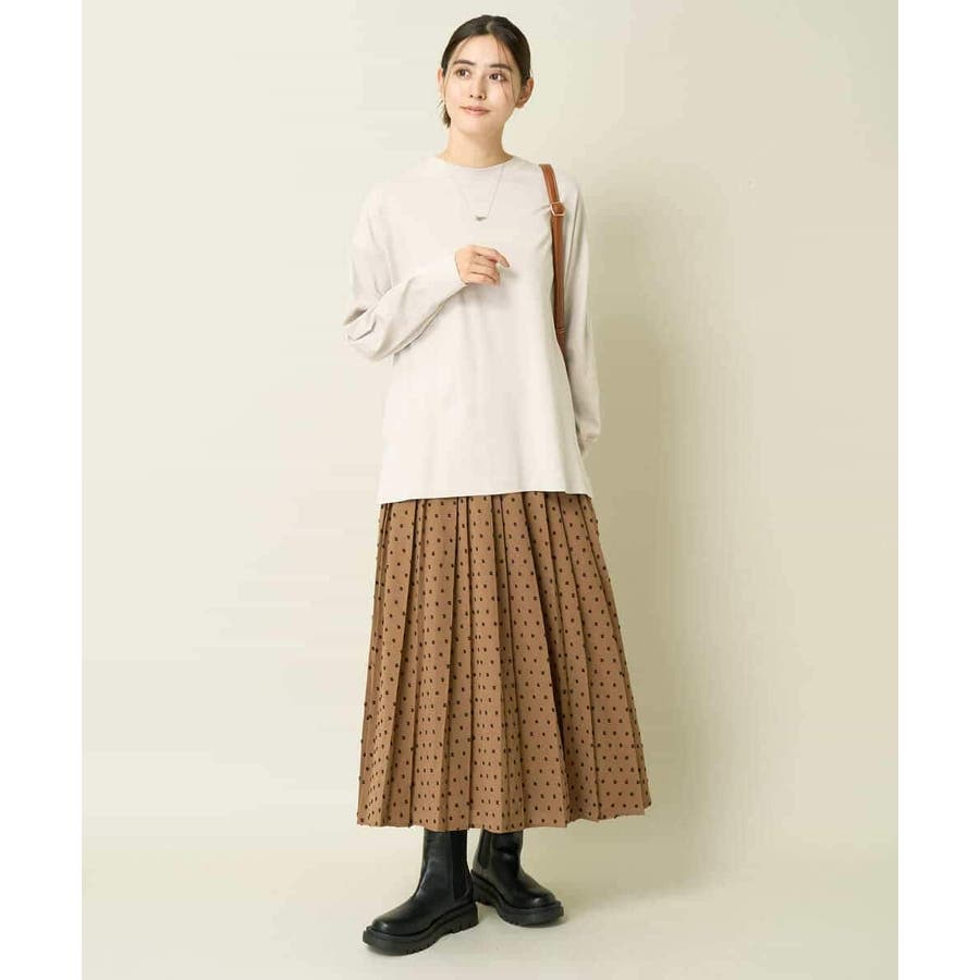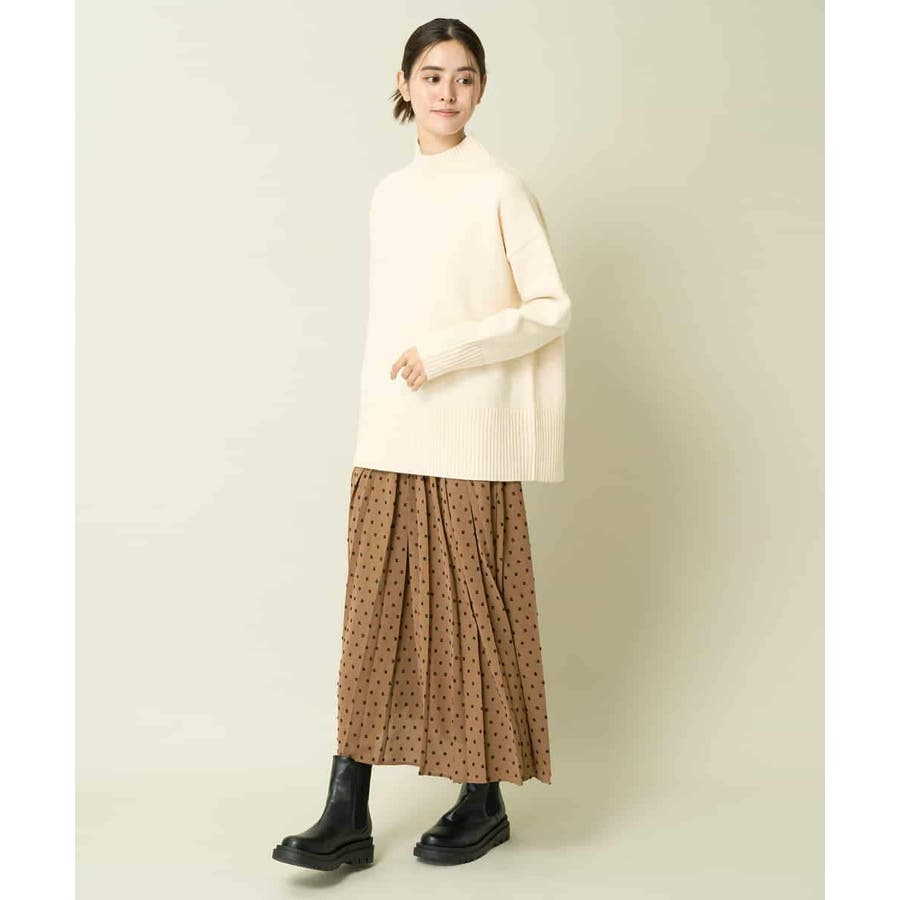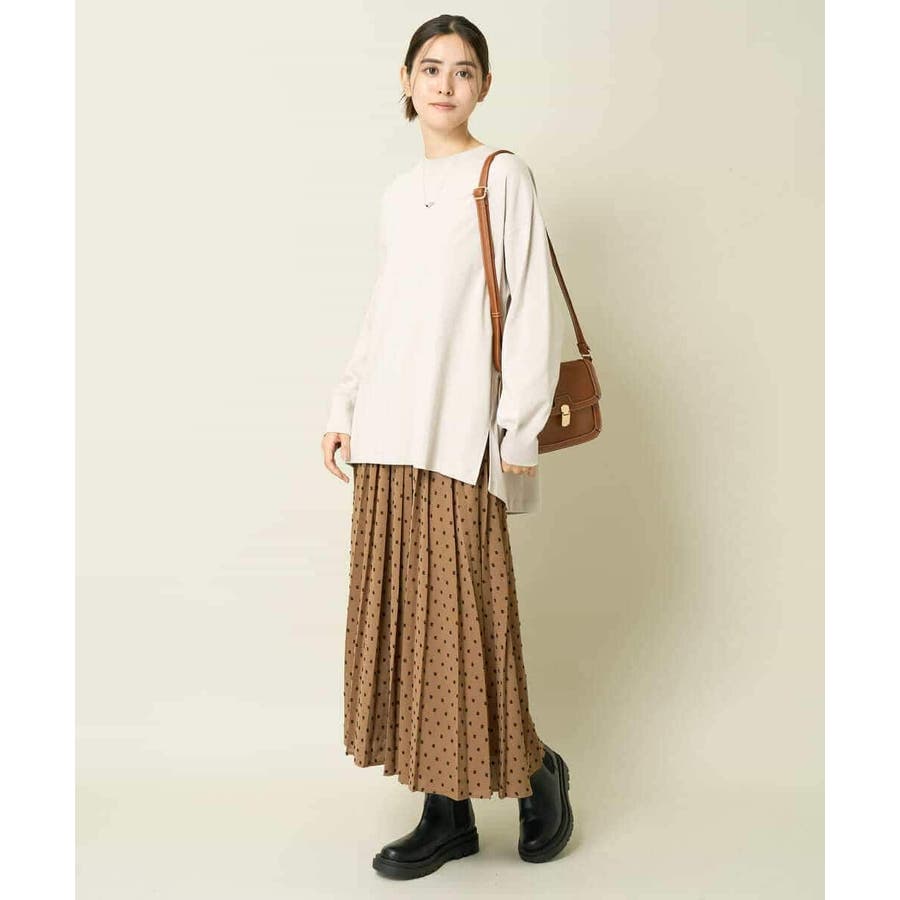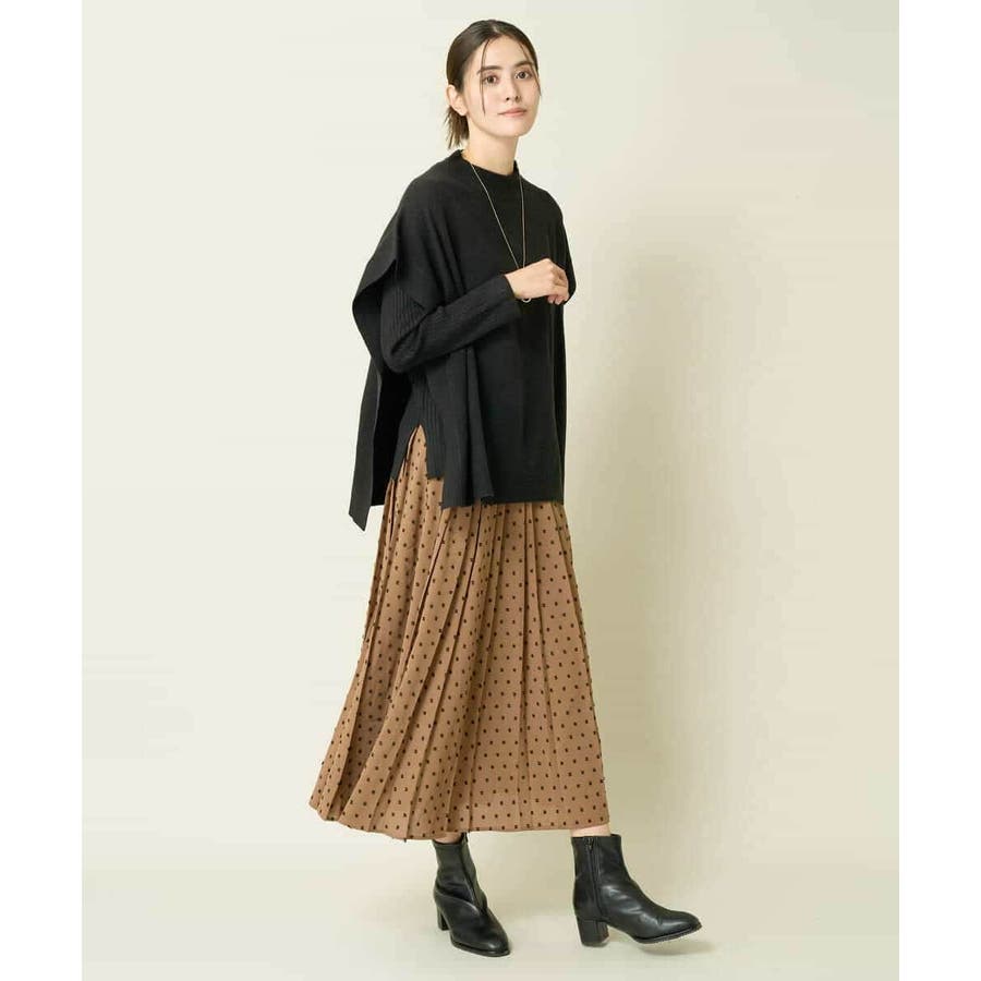 ・広がりすぎないボックスタックプリーツが特徴のドットスカート