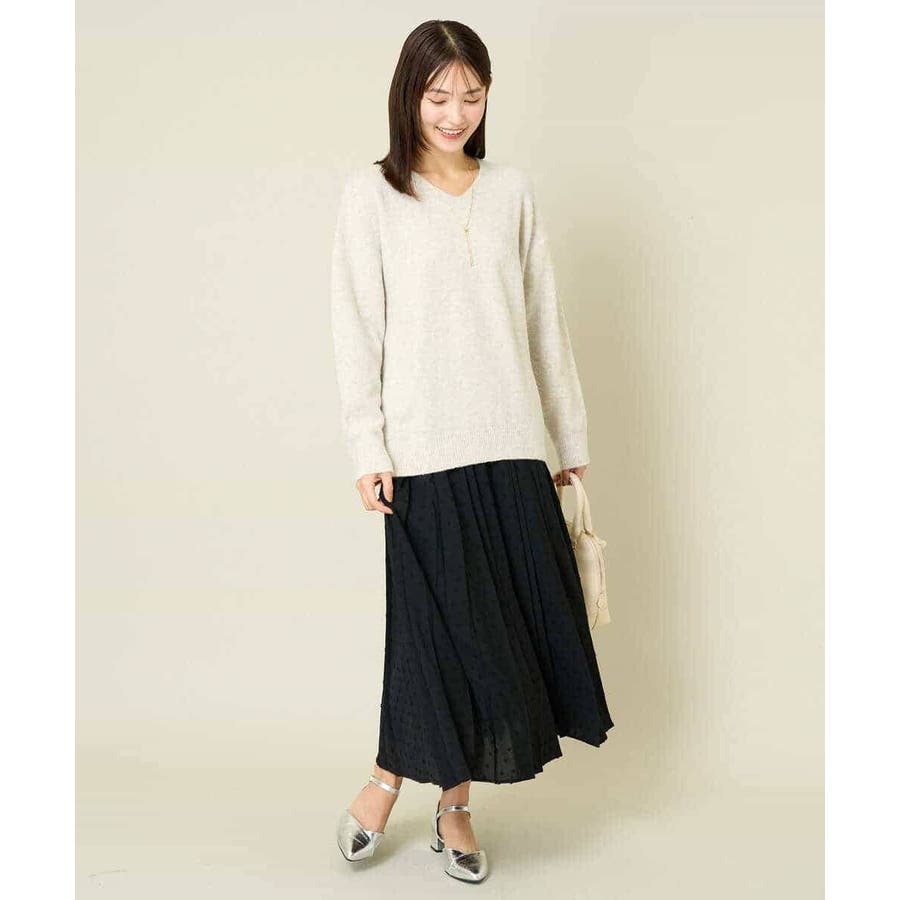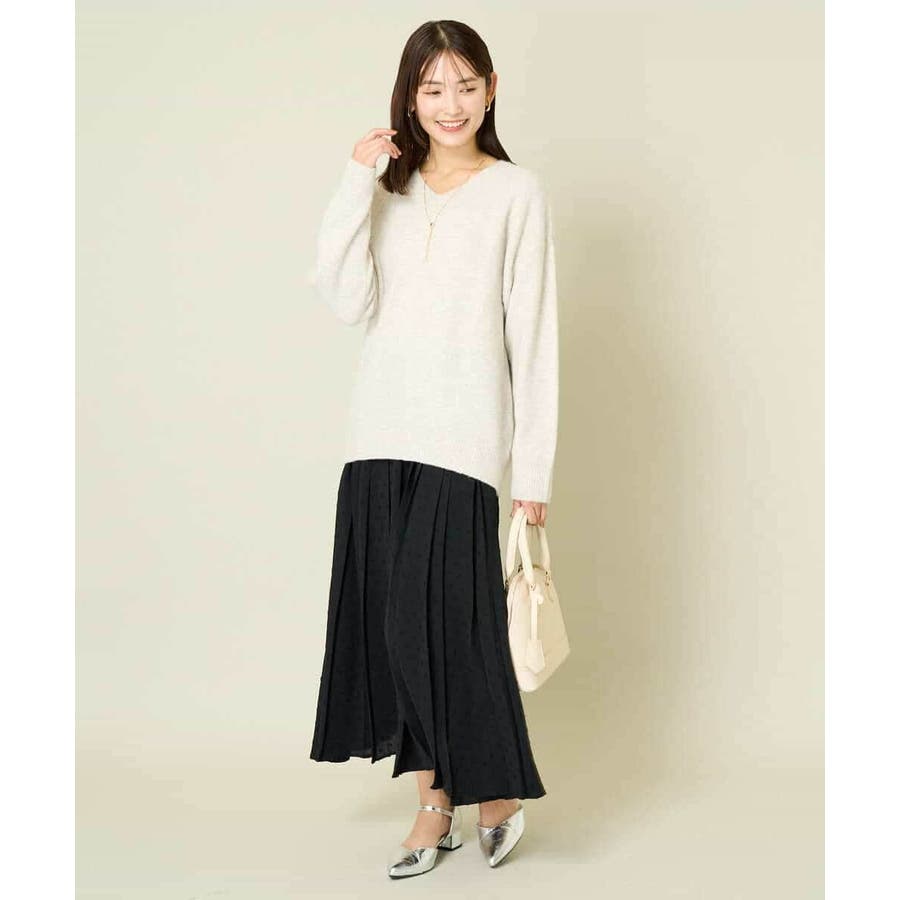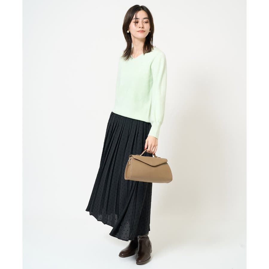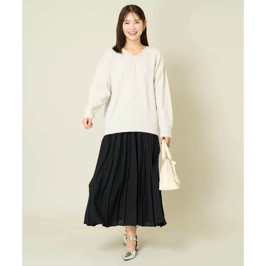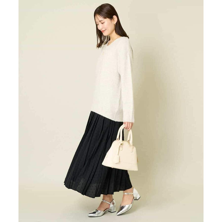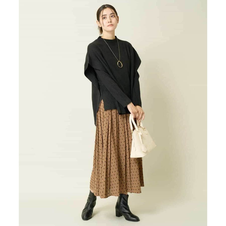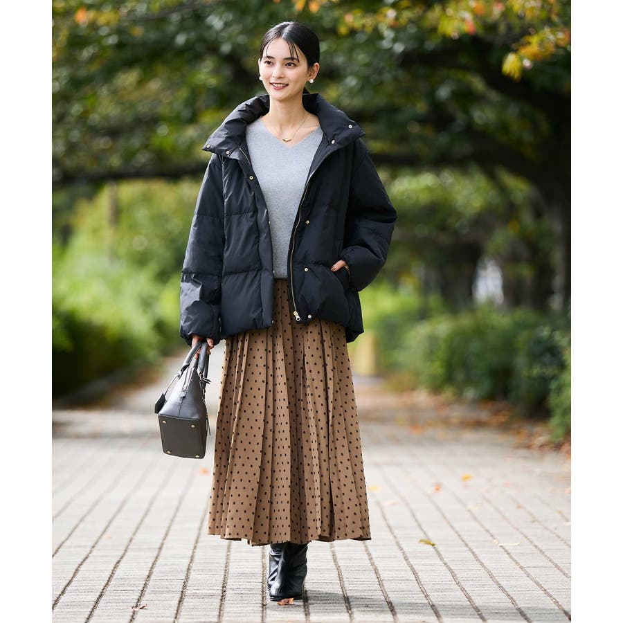 ・広がりすぎないボックスタックプリーツが特徴のドットスカート
