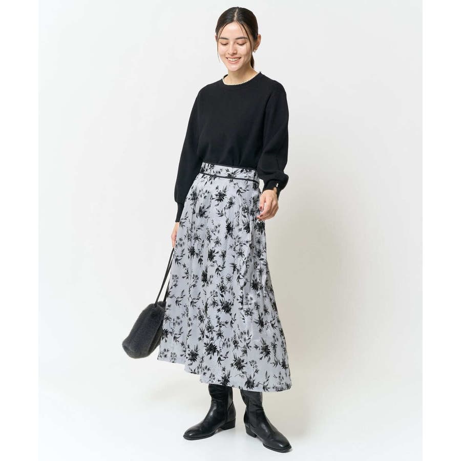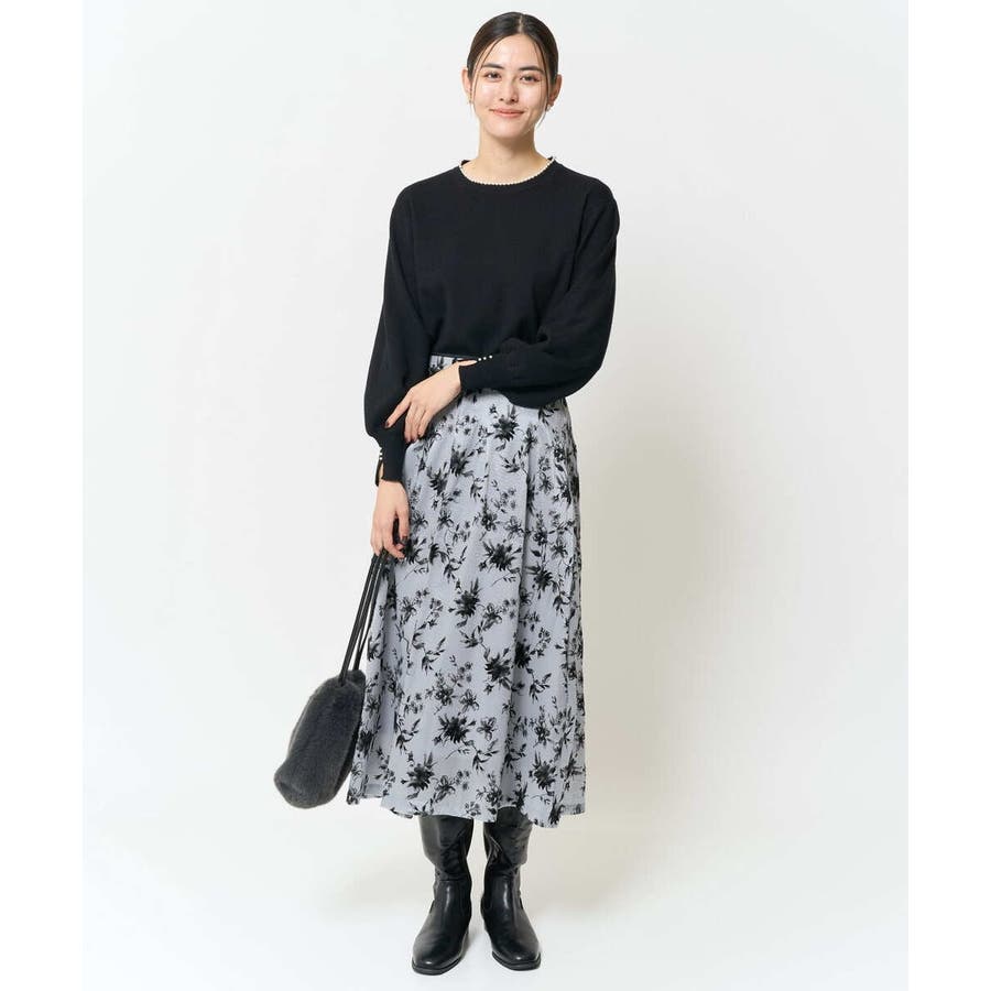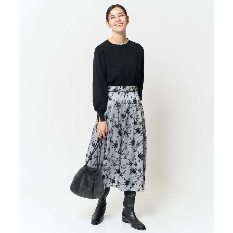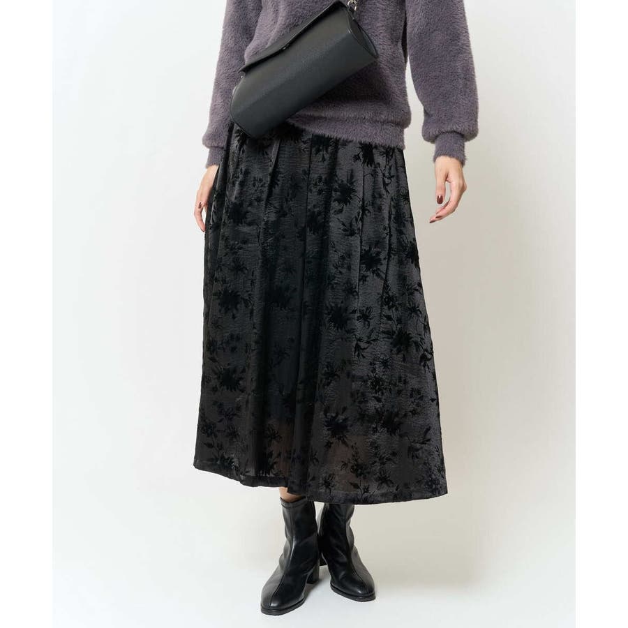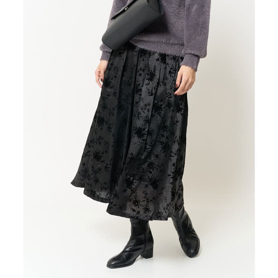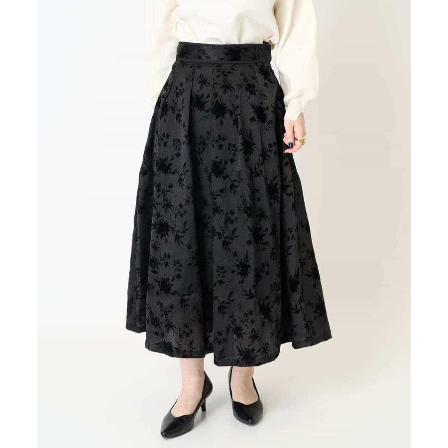・表面感のあるフロッキー素材が上品な印象のフレアスカート
