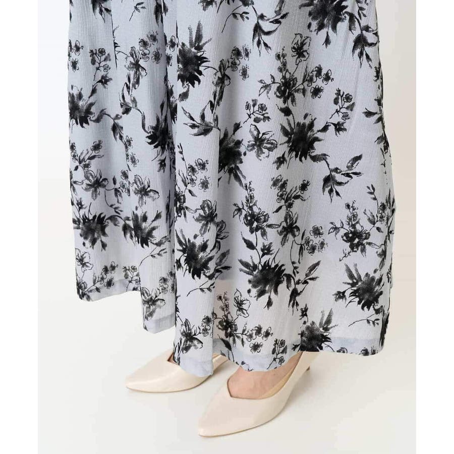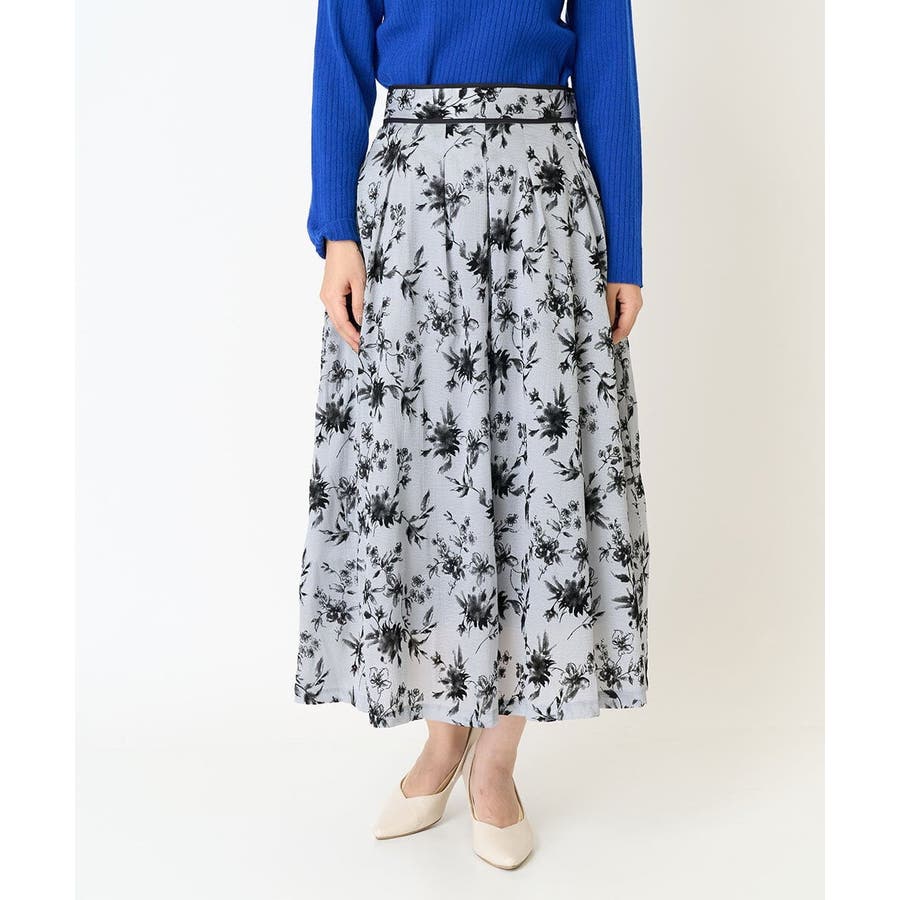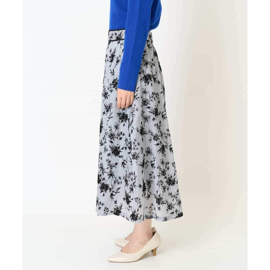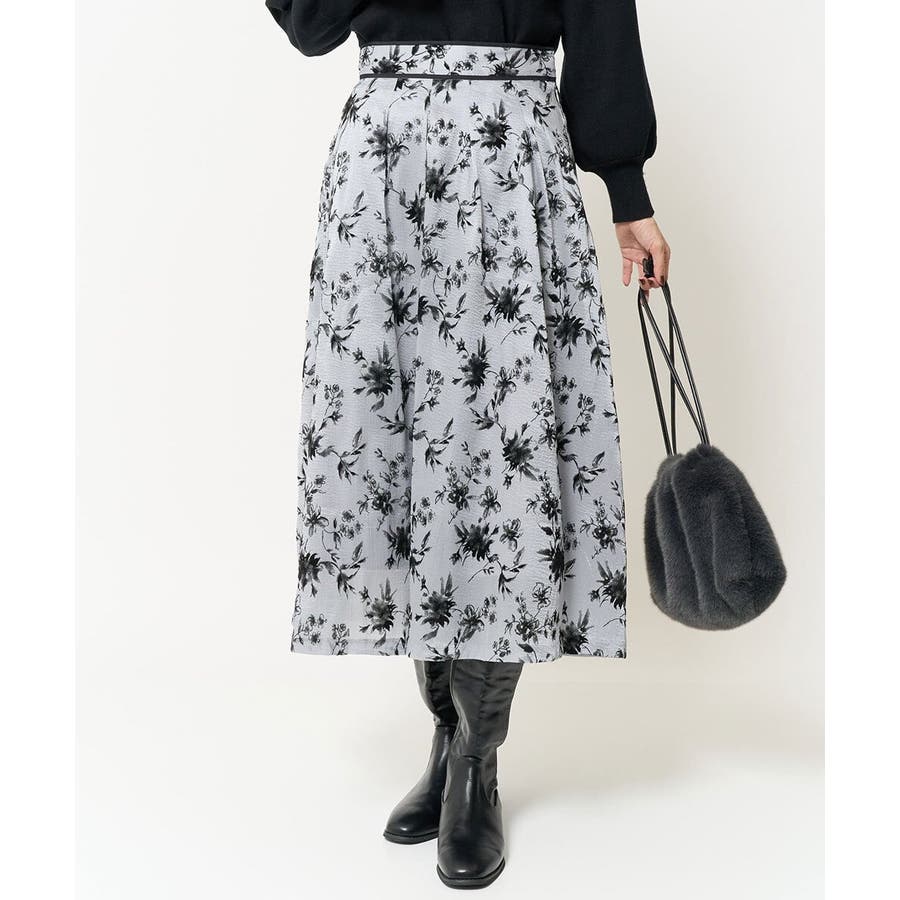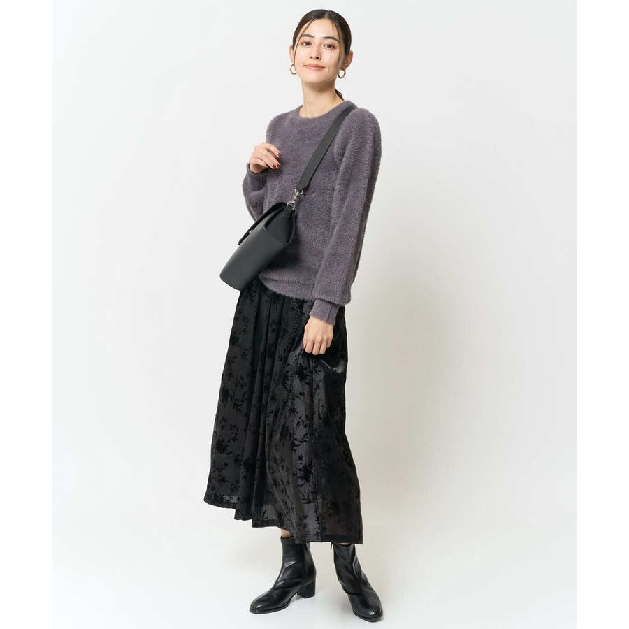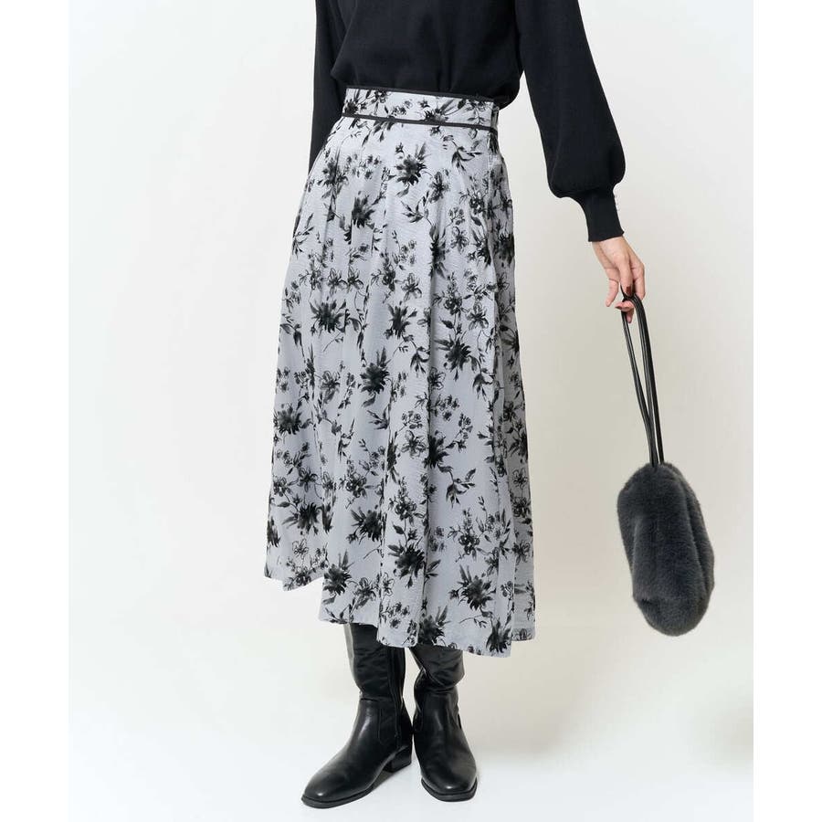 ・表面感のあるフロッキー素材が上品な印象のフレアスカート