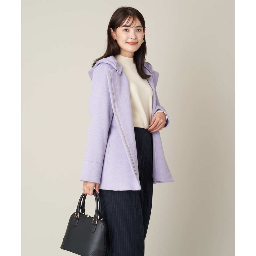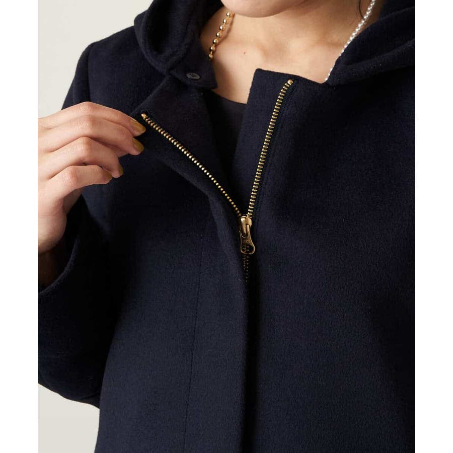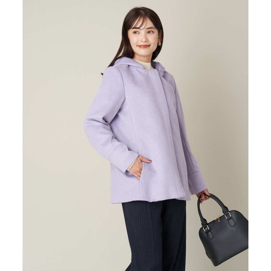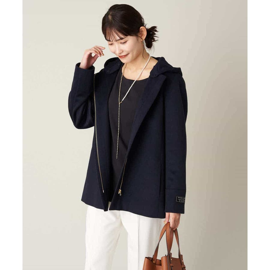 ・フードは取り外し可能な2WAY仕様でノーカラーショートコートとしても使えます。