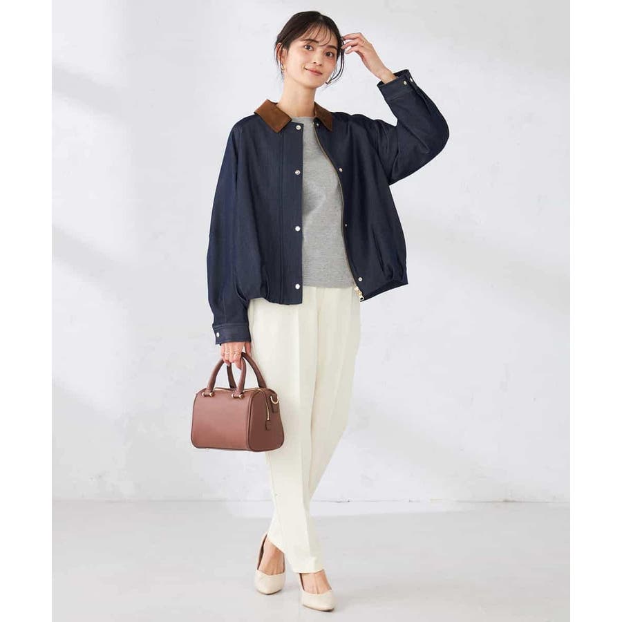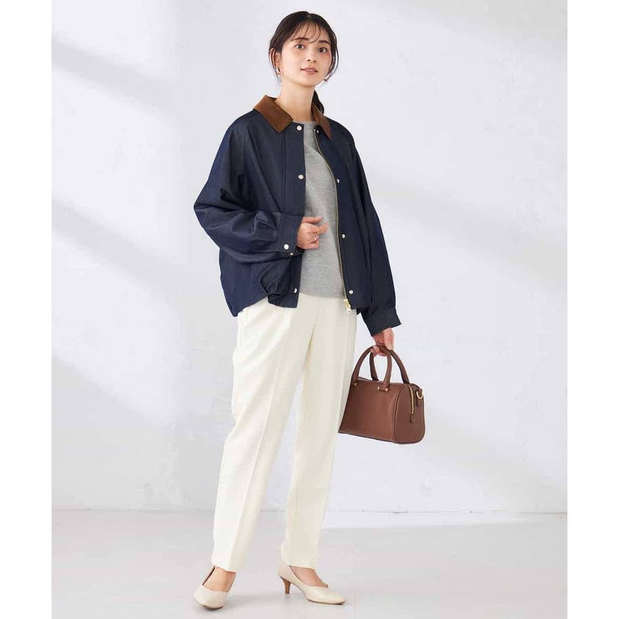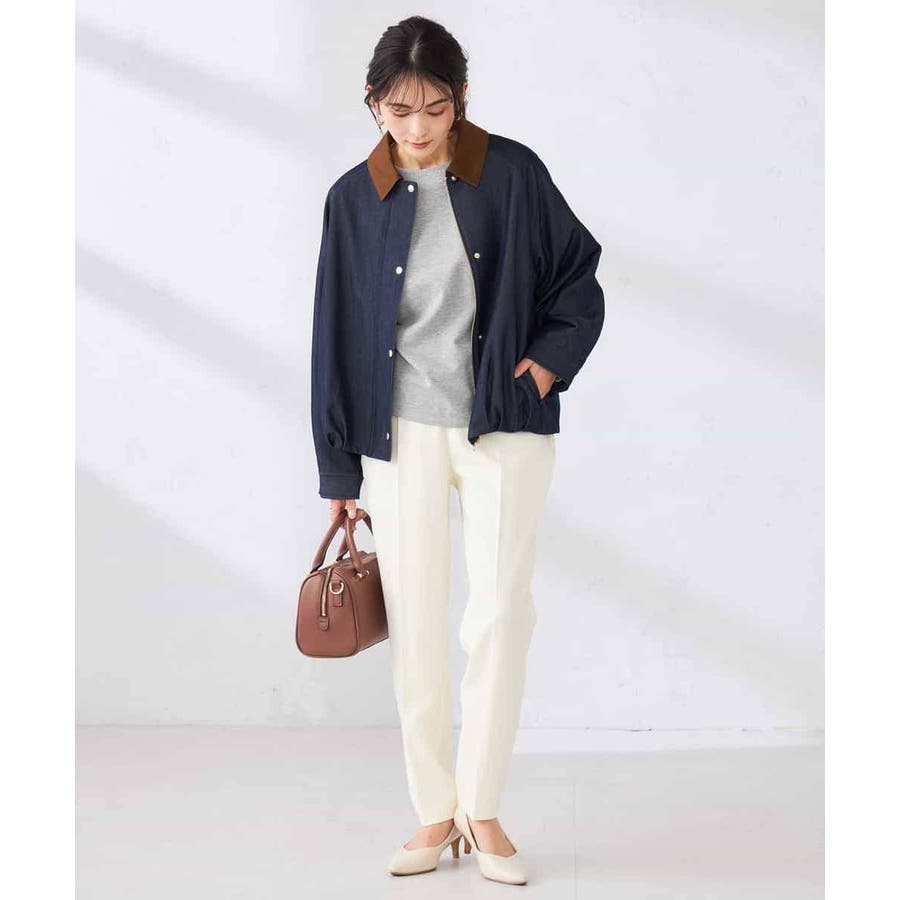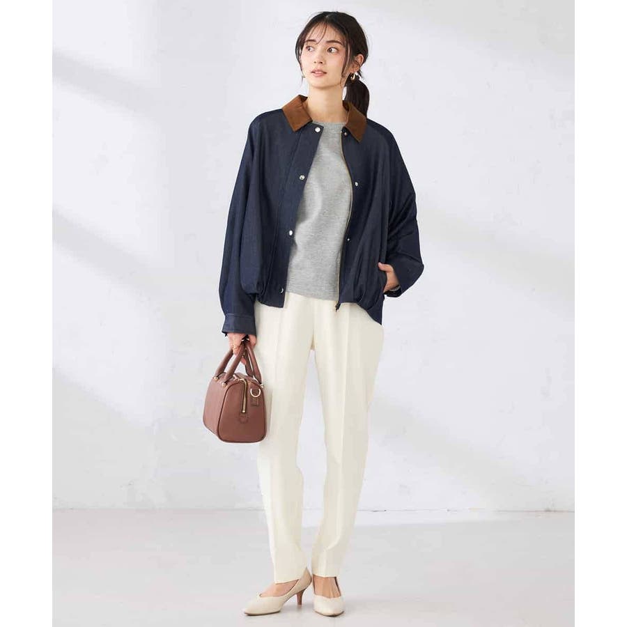 明るいカラーのパンツと合わせた春らしいスタイリングや