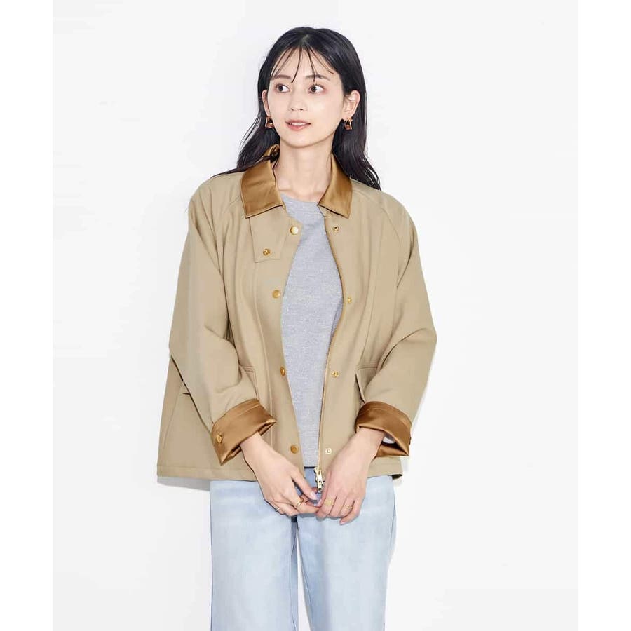 ・袖と衿のサテン生地使いがポイント。