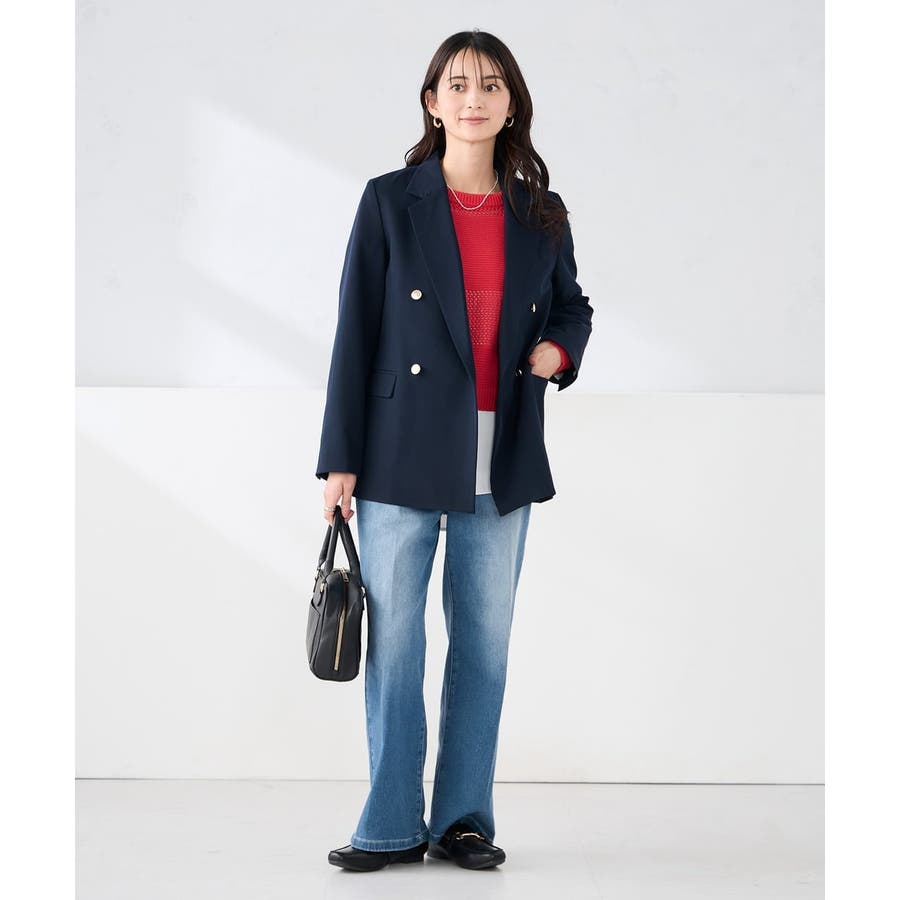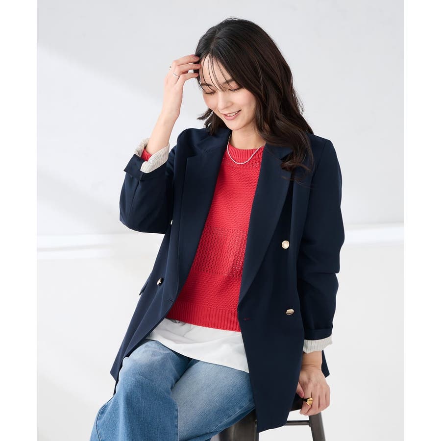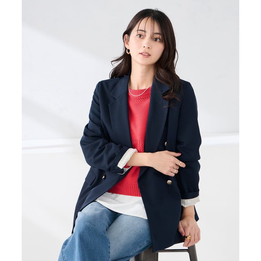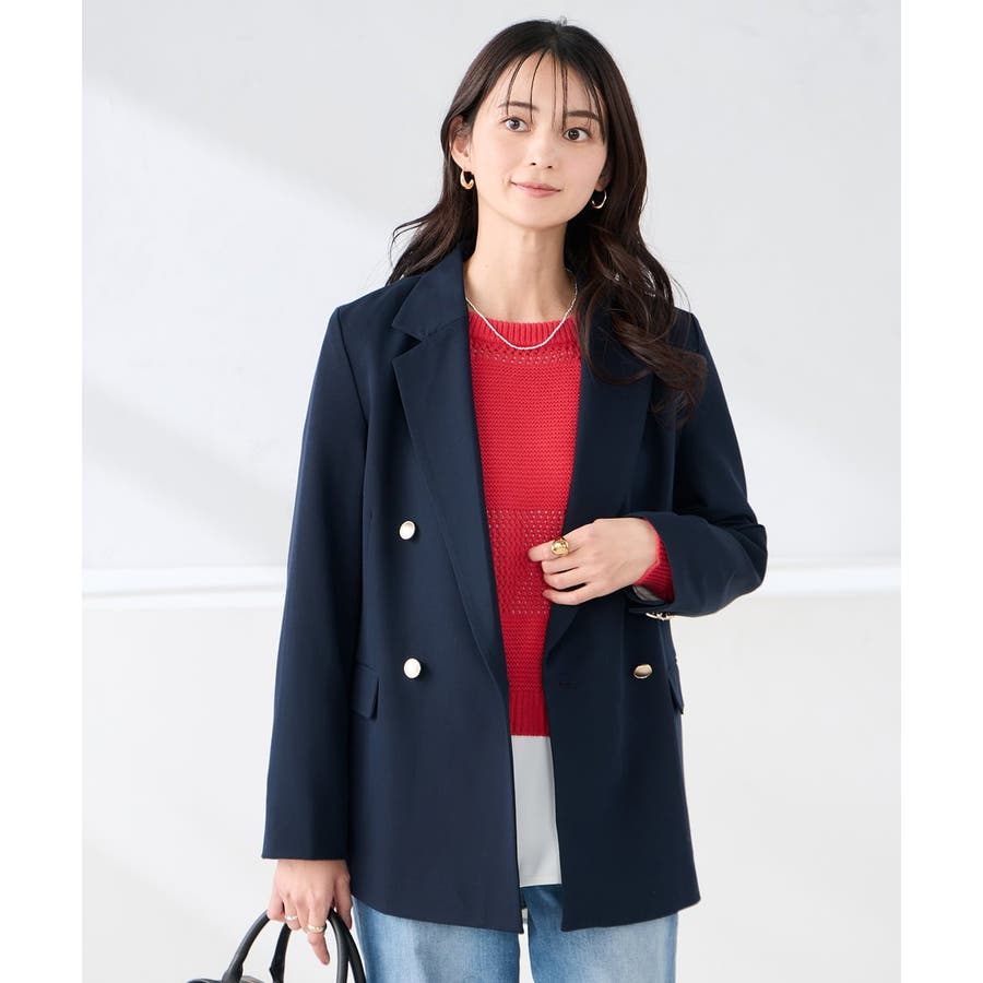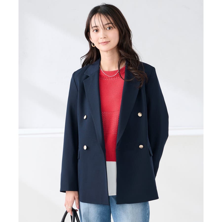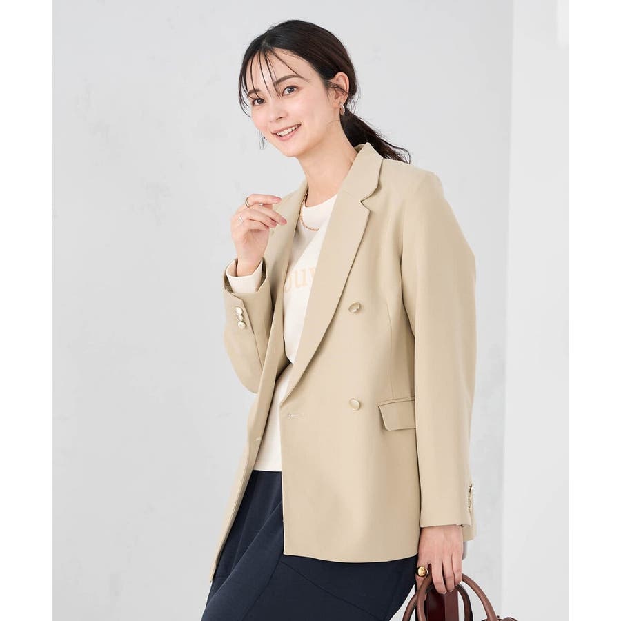 定番のダブルブレストジャケットは、ワンピース、パンツ、スカートも合わせやすい着丈で、カジュアルにもきれいめにも着こなせる1着です。