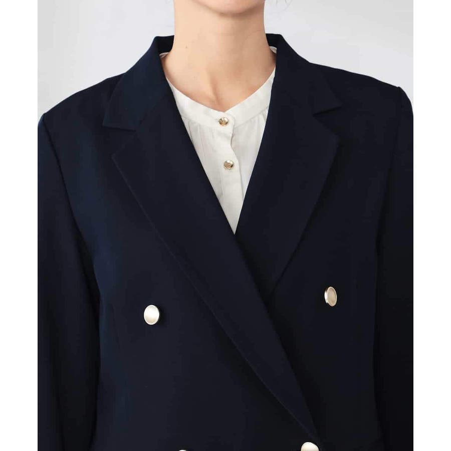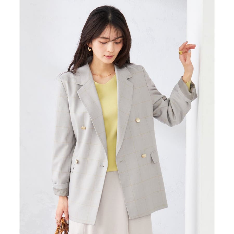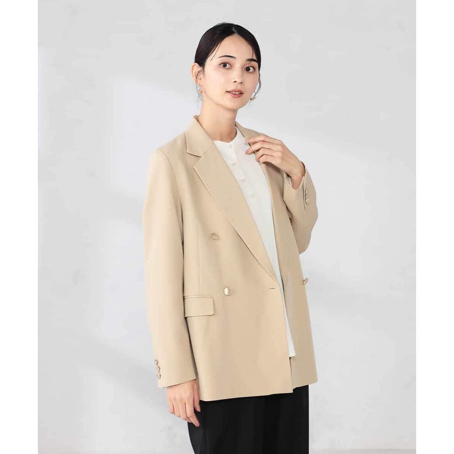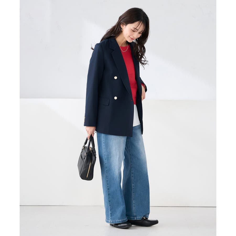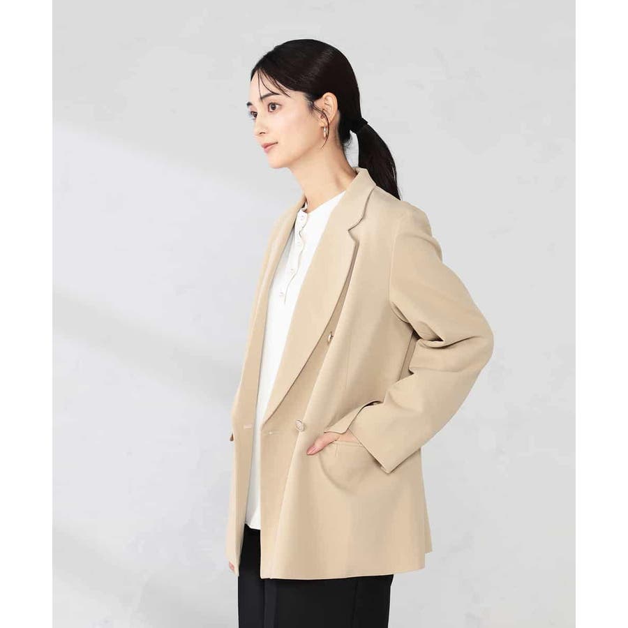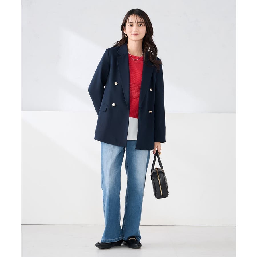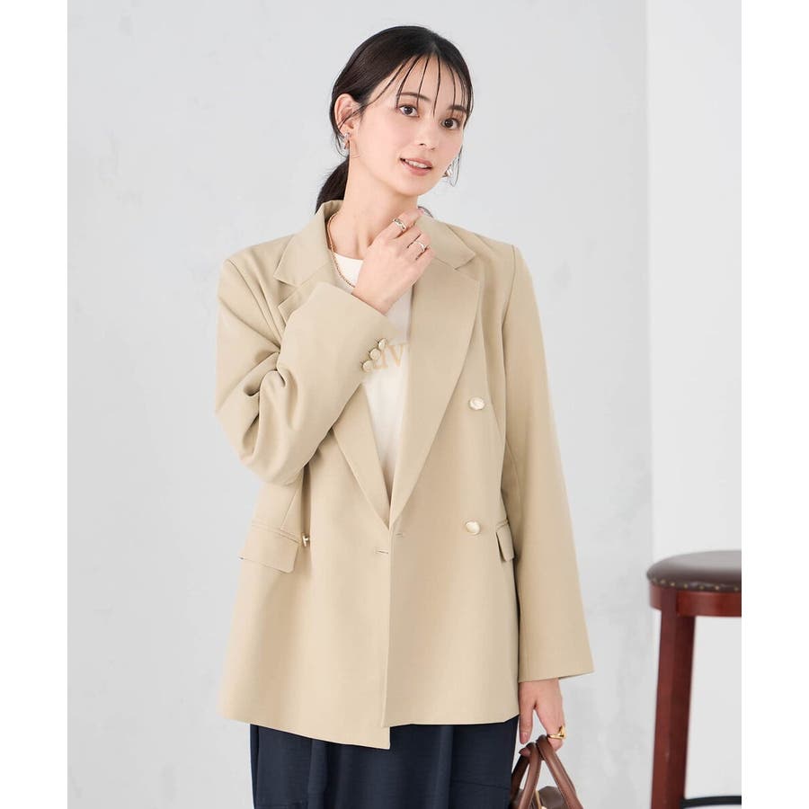 定番のダブルブレストジャケットは、ワンピース、パンツ、スカートも合わせやすい着丈で、カジュアルにもきれいめにも着こなせる1着です。