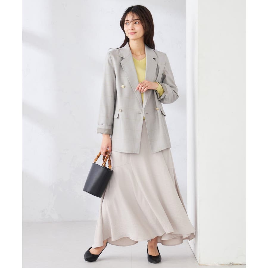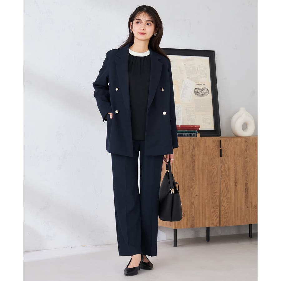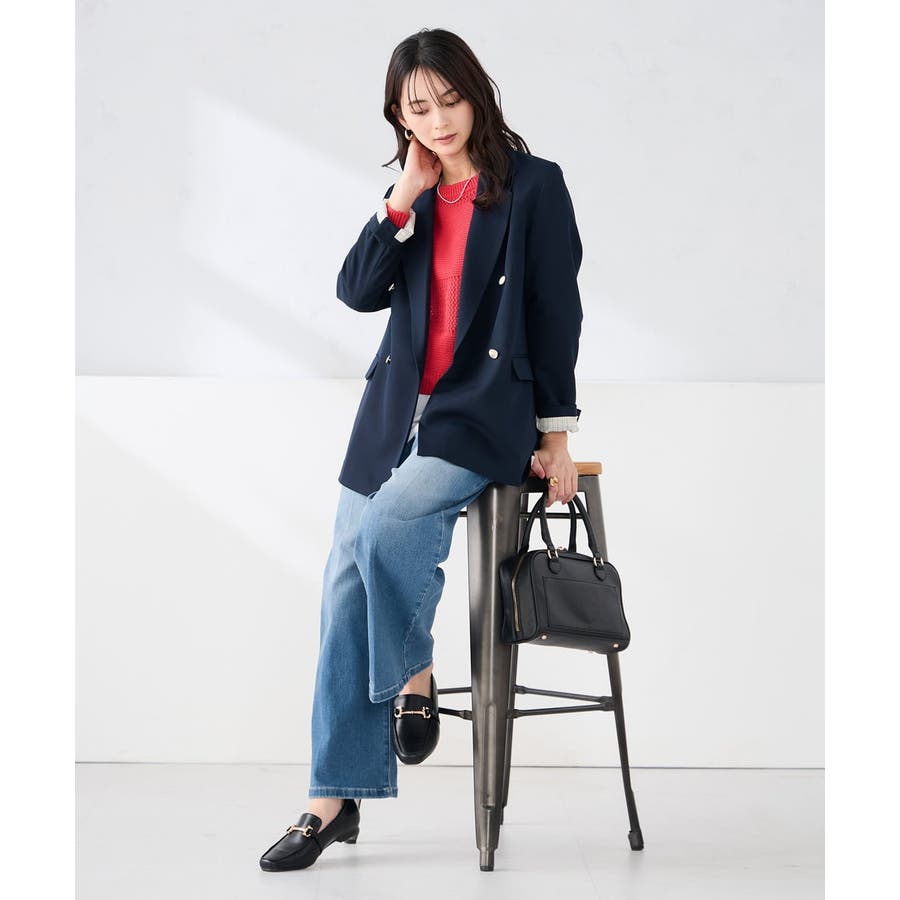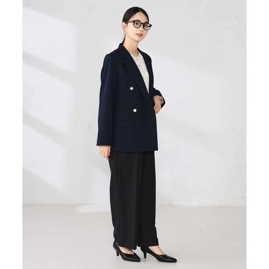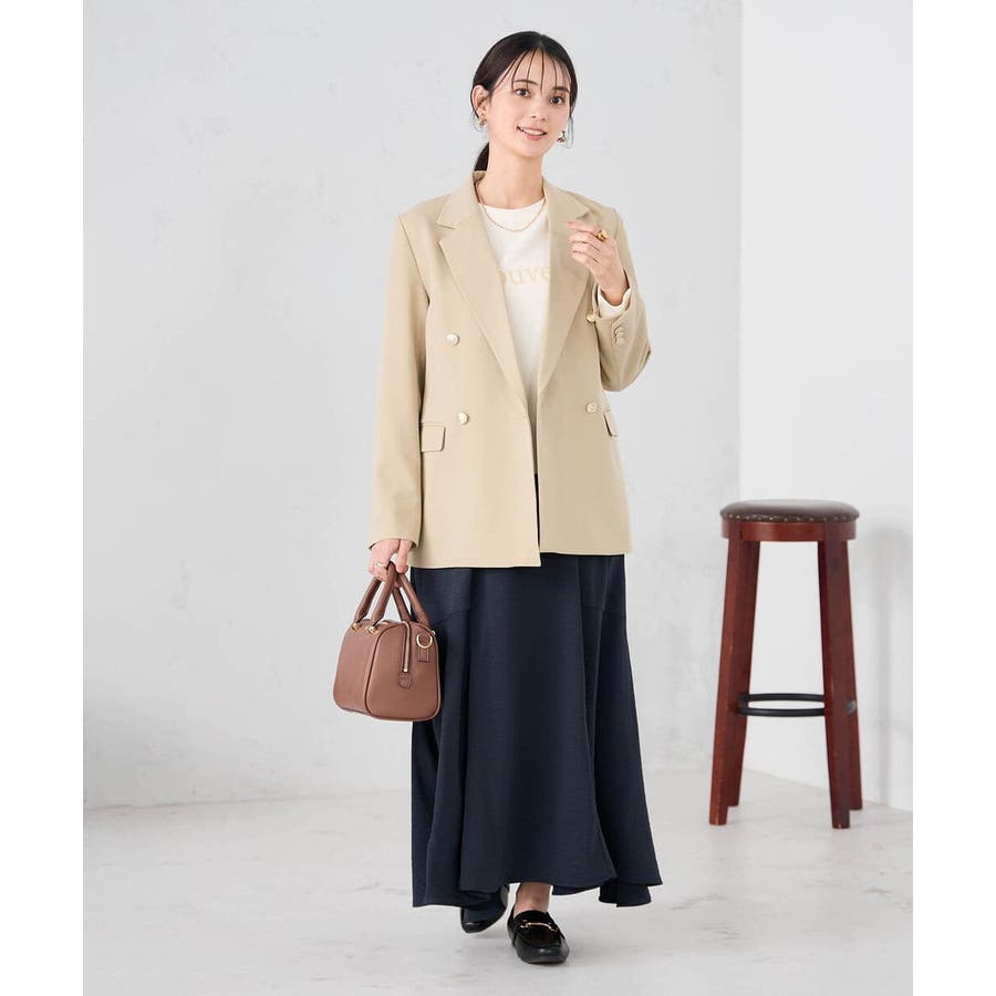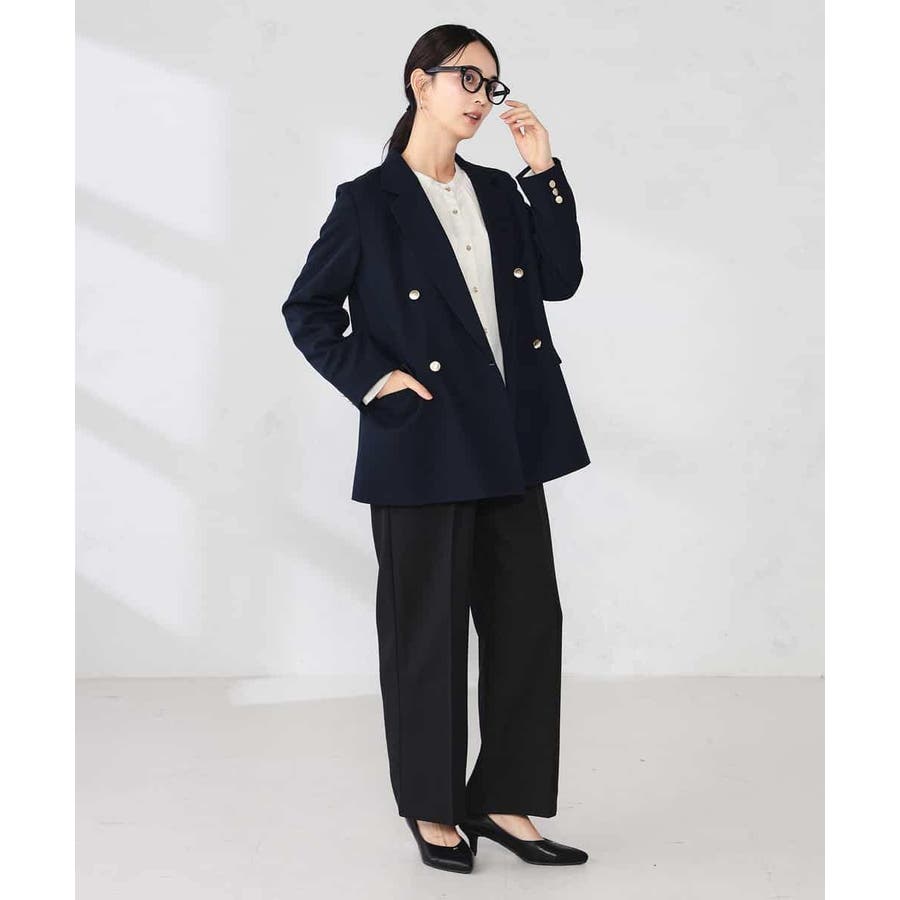 定番のダブルブレストジャケットは、ワンピース、パンツ、スカートも合わせやすい着丈で、カジュアルにもきれいめにも着こなせる1着です。